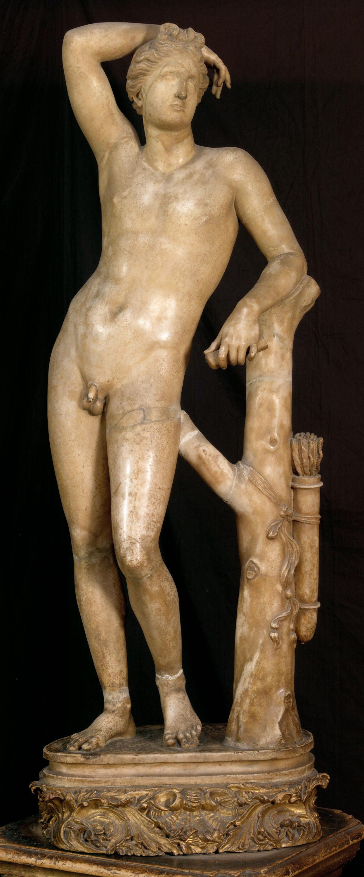 The sinuous pose of the figure has been recognised as a characteristic of Praxiteles’ work: and it is not by chance that it can be seen in another of his works, perhaps the most copied statue in the ancient world, the famous Aphrodite of Knidos, also in the Tribuna, in the famous variation known as the Medici Venus.