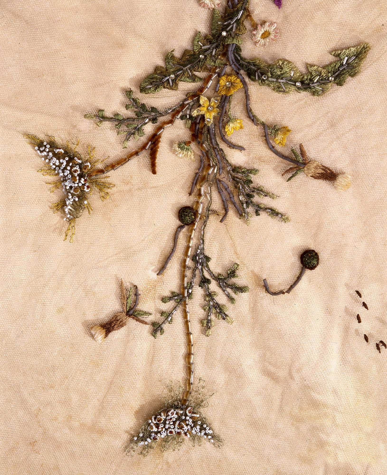 This sheath dress with trumpet bell skirt and draping of tulle embroidered with plant and floral designs is inspired by Flora’s dress in Botticelli’s famous “Allegory of Spring”. It was shown for the first time in 1906, at the International Exhibition in Milan and is an extraordinary example of the creative genius of Rosa Genoni, who is credited with founding Italian fashion. Her technical experimentation did in fact merge perfectly with the quest to create a style and shapes that could be defined as authentically Italian. Rosa Genoni’s ambitious project to redefine Italian costume finds its roots in Italian art history and especially in the Renaissance. The particular techniques used on this dress are clearly recorded on the patterns that can be viewed within the vast sample collection of embroidery, braiding and lace, some of which made by the students at the Professional School for Women at the Società Umanitaria in Milan, where she founded and directed the dressmaking department.