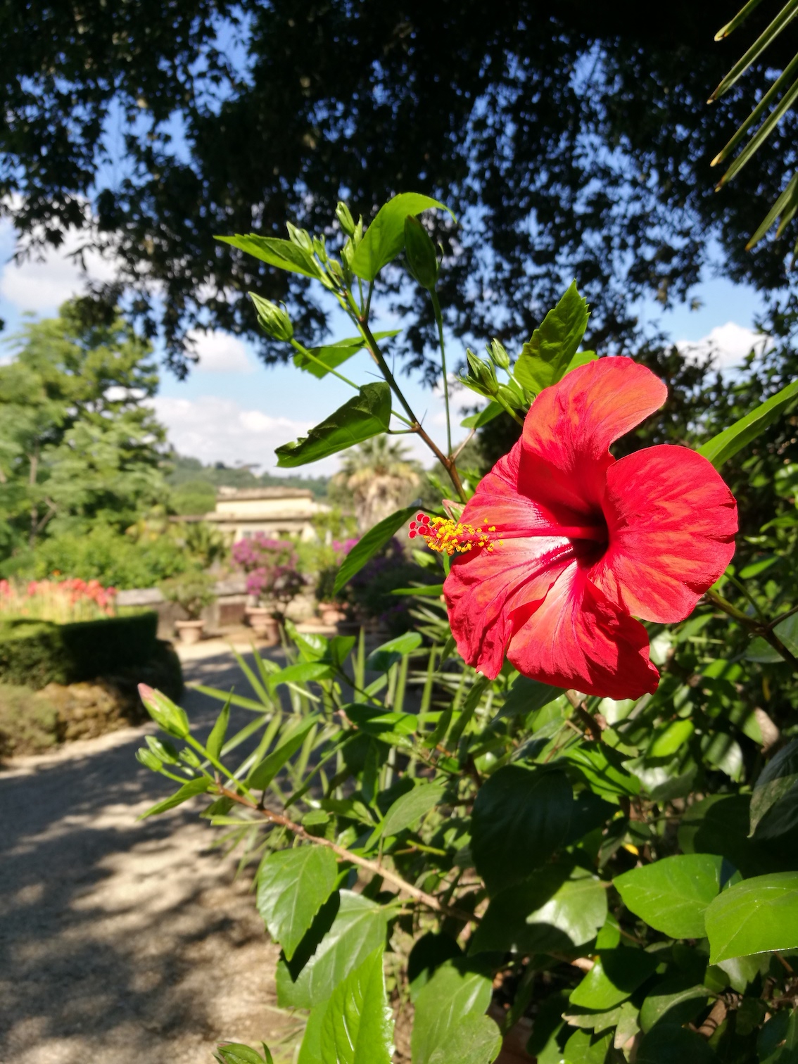 Between the evergreen hedges and in the geometric-shaped flowerbeds in the Upper Botanical Garden are the tropical plants, like this gorgeous specimen of Hibiscus rosa-synensis. Already in the 18th century, this sector of the Boboli Gardens was used as a Jardin Potager, that is, an area dedicated to the cultivation of exotic and rare plants.