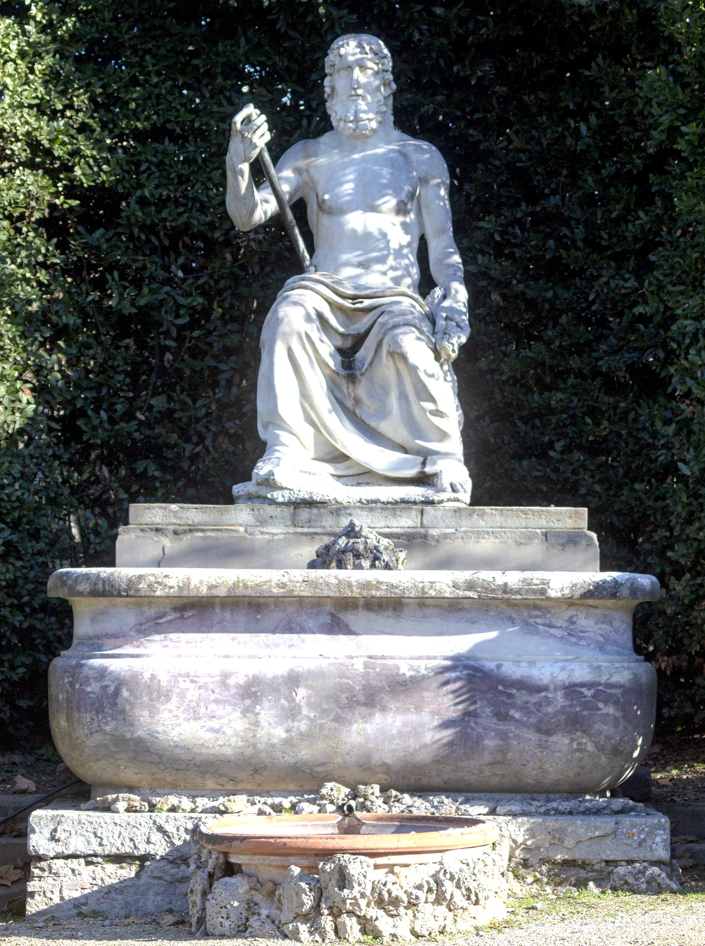 The sculpture was in the Pratolino Medici Villa until 1824 and until the early 20th century, it was thought to be an ancient Greek statue. The work, even with the various interventions undertaken over time, conveys Baccio Bandinelli’s great passion for the ancient world developed during his stays in Rome. Initially it represented God the Father and was made for the choir in Santa Maria del Fiore; in 1587 it had already been reused as an element of a fountain and reworked as Jupiter, with the addition of bunch of lightning bolts in his left hand and a black marble eagle, which is no longer there. A furrow between the lower back and the right shoulder, which was intended for the insertion of a water pipe, is still visible.