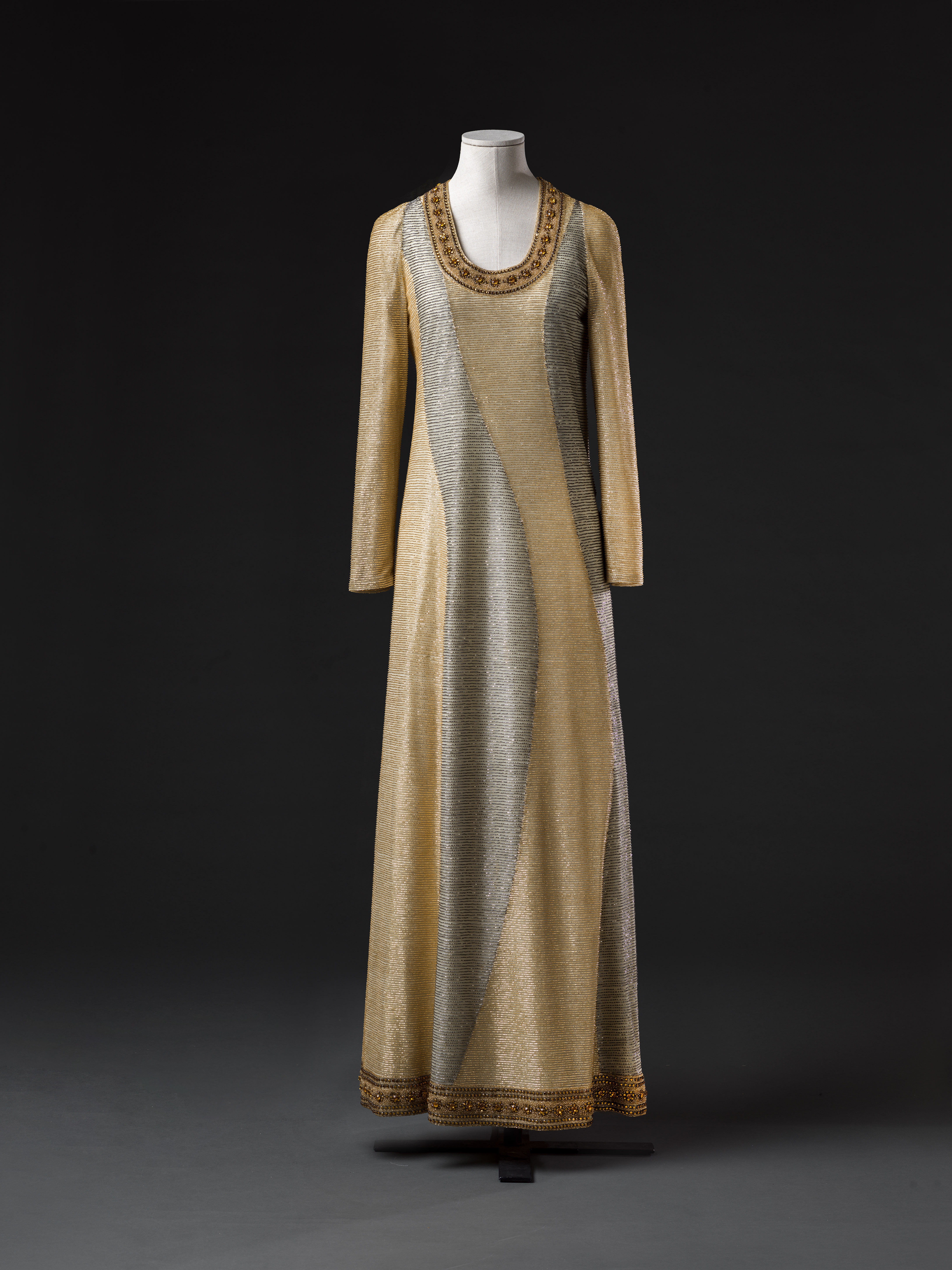 The dress belonged to Gioia Marchi Falck. Mila Schön was one of the 20th century’s leading Italian stylists. A number of her creations were influenced by her interest in the figurative arts. She drew her inspiration for several iconic garments from the work of Lucio Fontana (1899-1968) and Alexander Calder (1898-1976). Her creations were shown at the "Cubism and Fashion" exhibition at the Metropolitan Museum in New York in 1998-1999.