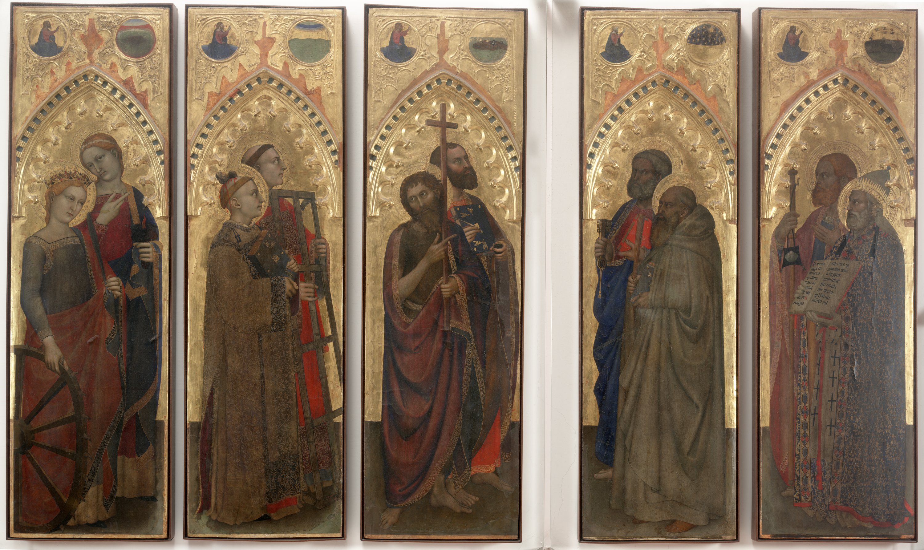 This series of compartments formed part of an enormous polyptych painted by Giovanni da Milano, for the main altar of the church of Ognissanti around 1360. The painter had been born in Caversaccio in the province of Como, but we have evidence of him staying in Florence as early as in 1346.