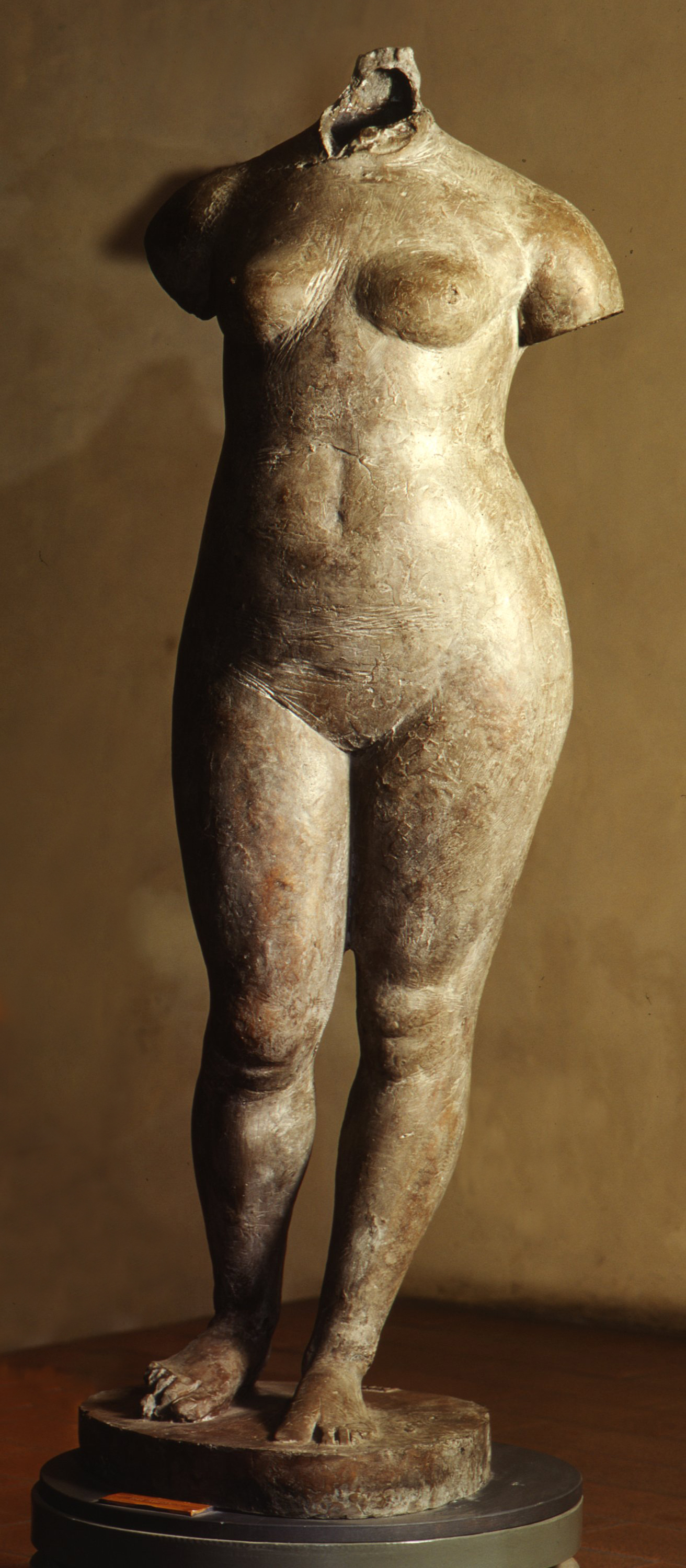 This female nude bronze in the round, with neither arms nor head and with slightly pronounced breasts, the body's weight supported on the right leg with the left leg extended slightly, represents the ancient goddess Pomona. The Etruscan god of fertility, in Ancient Rome Pomona became the god of fruitful abundance and in traditional iconography was represented holding an apple.