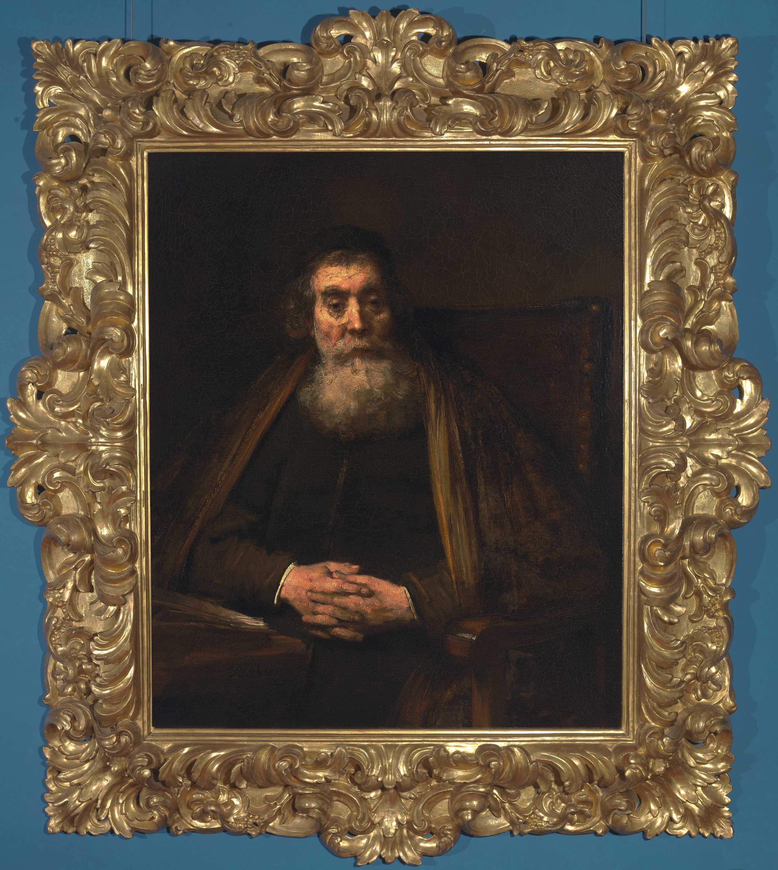 Signed and dated in 1665, this portrait was created towards the end of Rembrandt's prolific artistic career, much of which was devoted to portrait painting. Indeed, it was as a portrait artist that Rembrandt became known in the 1630s in Amsterdam, where he lived for a long time in the Jewish quarter and often used neighbors and acquaintances as models for his paintings. The face of the old man in the portrait has been identified as that of a Rabbi; indeed, it has been suggested that the portrait can be attributed to a precise figure, Rabi Haham Saul Levy Morteira, but documents do not yet confirm this. In the portrait, Rembrandt studies the psychology of the elder man, emphasizing the detached pensiveness of his expression and the impression of being lost in thoughts, which seem engulfed by the painting's dark background. This tone is emphasized by the artist’s technique, characterized by the use of textured colors spread thickly onto the canvas.