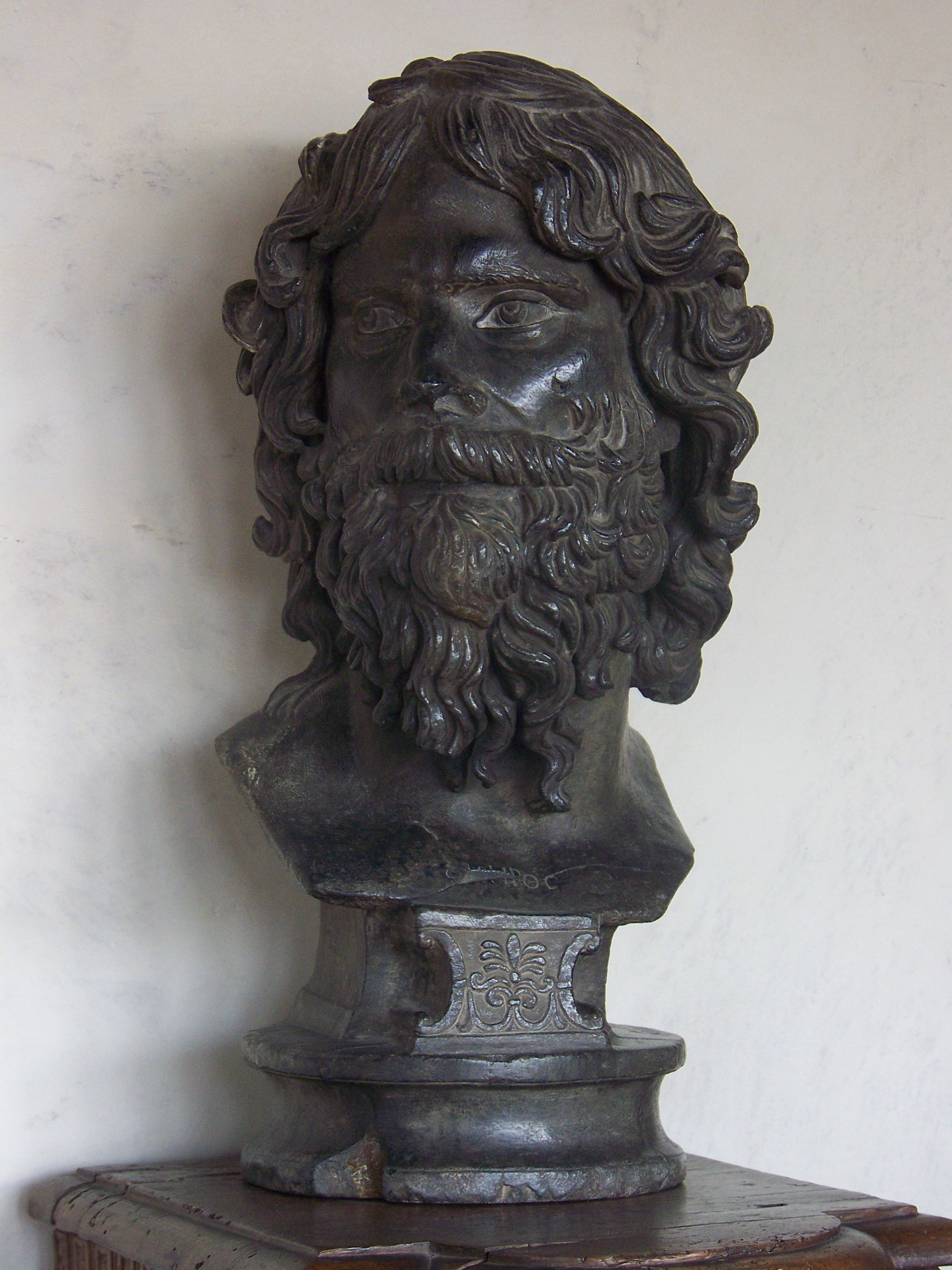 The manufacture is Renaissance while taking up while taking up the features of the character exhibited by ancient portraiture. The mixture of styles does not make his identification clear but we commonly recognize the face of Homer, the blind cantor to whom the Iliad and the Odyssey are attributed.