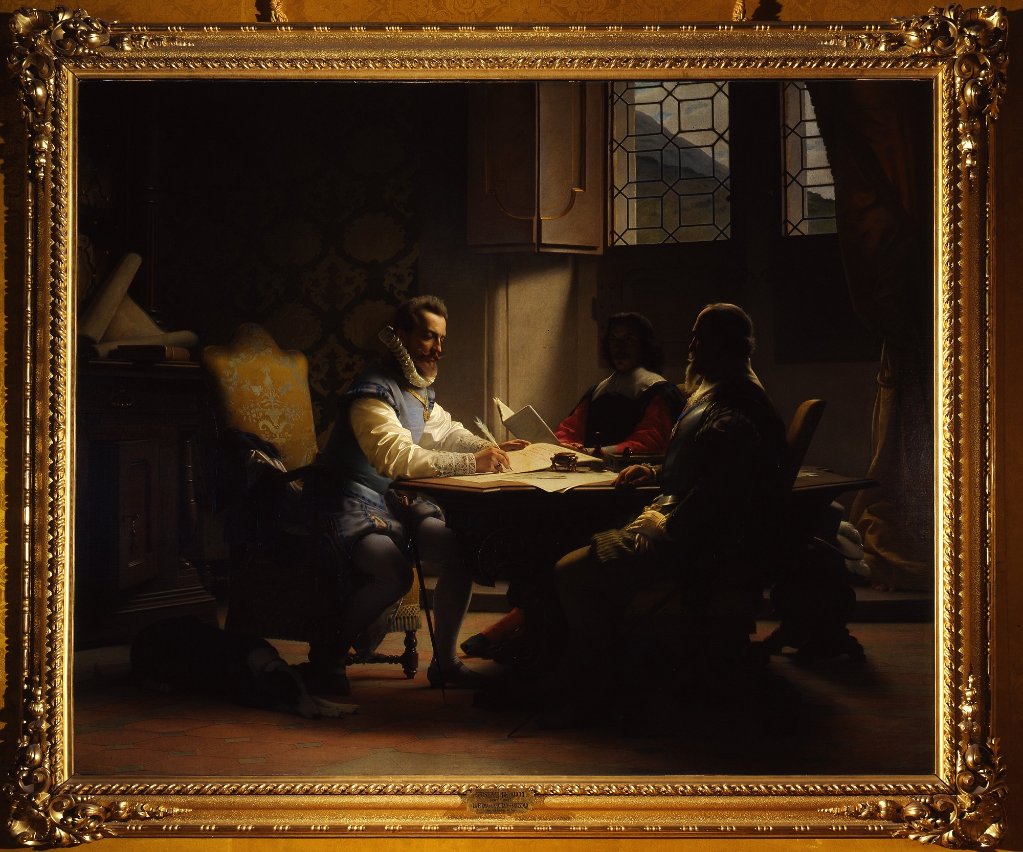 The rest of the furnishings date, for the most part, to the Savoy era. The mirrors and consoles inserted in the room at the time of Queen Margherita date back to 1884. On the left side there are paintings bought in 1870 by will of Victor Emannuel II directly from the artists, solemn examples of that history painting which was a test of ability for the graduates of the Academy of Fine Arts. These are canvases depicting "Simon Memmi who on Petrarch's Commission Portrays Madonna Laura" and "The Signing of the Treaty of Bruzzolo" respectively by Pietro Saltini and Giuseppe Bellucci, the first in homage to the noble literary tradition of Florence and the second linked to the celebration of a crucial episode in the affirmation of the power of the Savoy family.