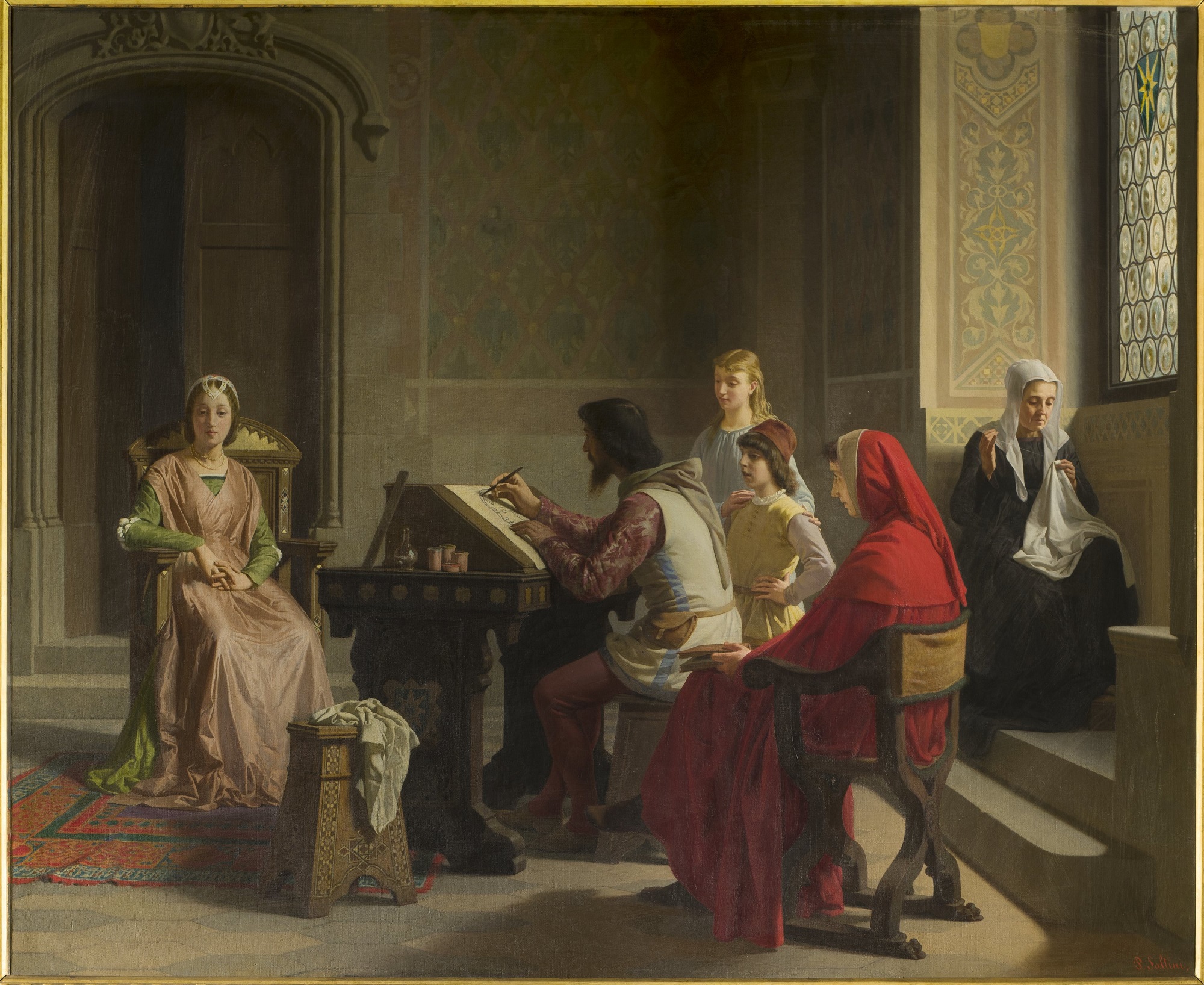 The oil painting of "Lady with Children and Nanny" and two other small canvases en pendant, depicting intimate or gallant episodes in 18th-century costumes, belong to an entirely different thematic strand and testify to the success in the 19th century of a genre with more frivolous and bourgeois accents.