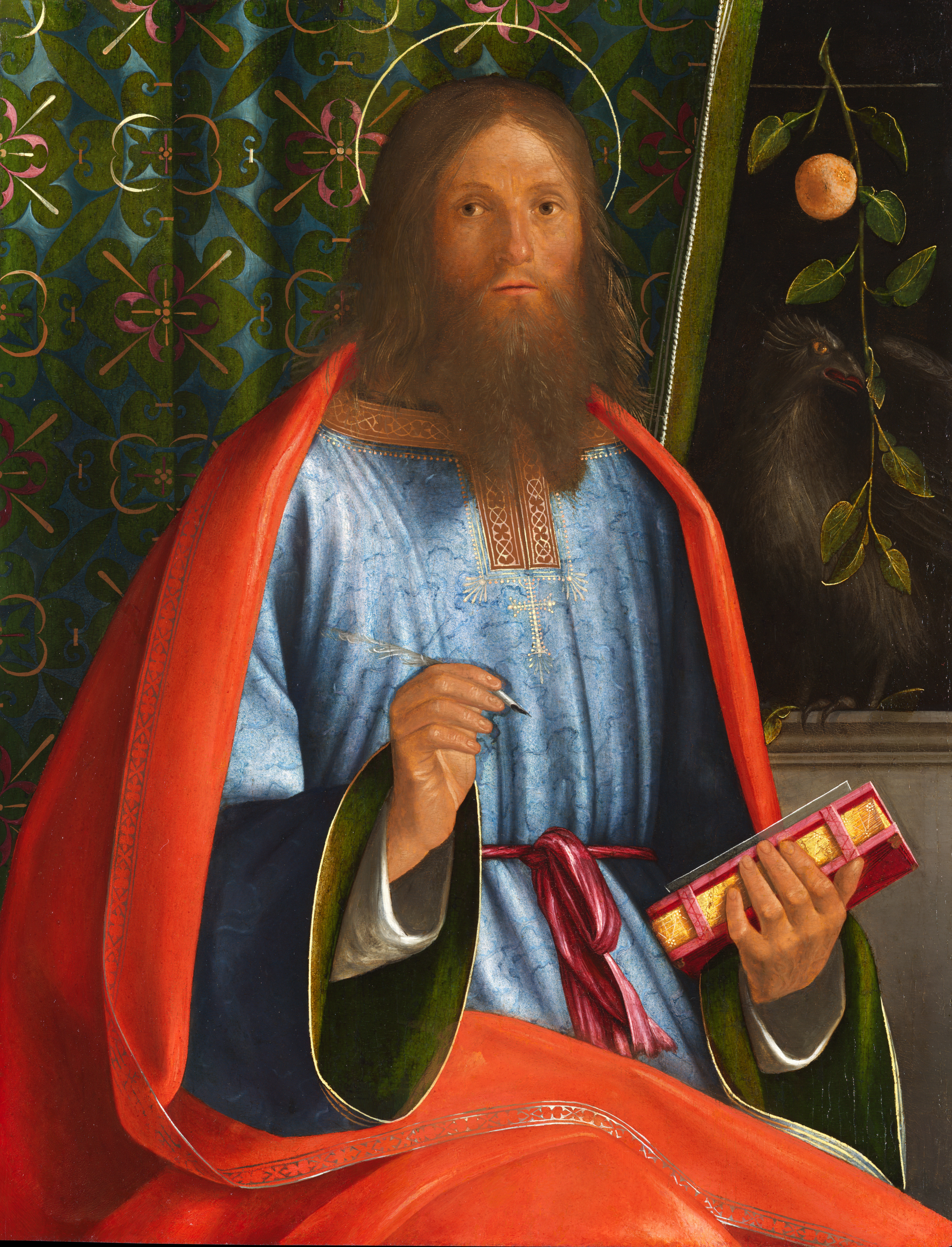 Together with the painting of St Matthew (Contini Bonacossi Inventory no. 13), it was perhaps part of an altar piece, even if past tampering with the wooden support does not permit a more detailed hypothesis. As usual, St John is wearing a red cloak over a blue robe and he is holding the book and goose quill that refer to the Gospel and the Book of Revelations, both of which he wrote. Alongside him is an eagle, symbol of the tetramorph usually connected with the saint, according to Ezekiel’s inaugural vision (1, 1-10) and to Revelations (4, 7).