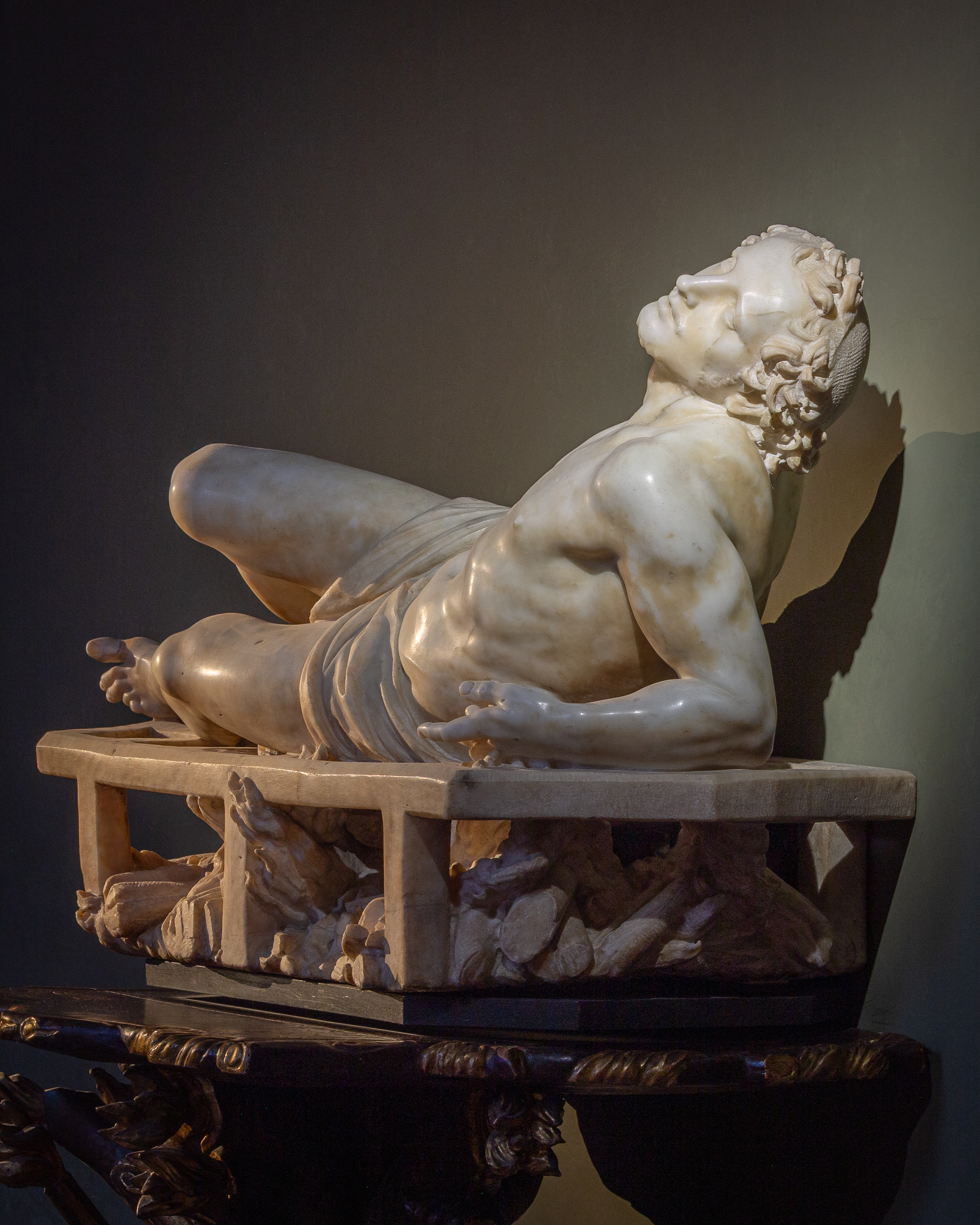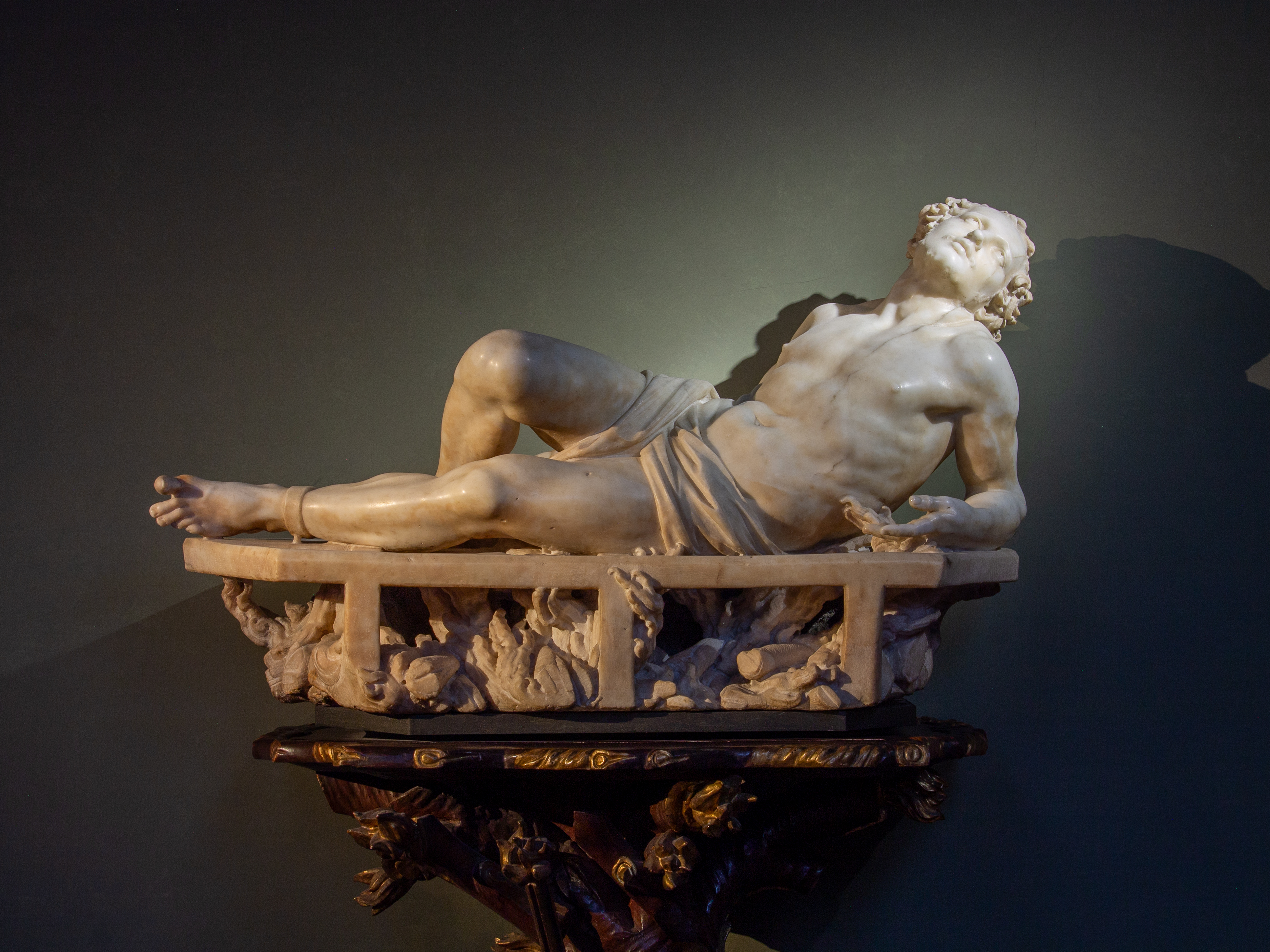 The Saint Lawrence of the Contini Bonacossi Collection is a work by the young Gian Lorenzo Bernini, in which it is possible to glimpse his mature style. It was completed in the same period as the Saint Sebastian of the Thyssen-Bornemisza Collection and the influence of Michelangelo’s work is evident in both sculptures. In particular, in Saint Lawrence Bernini reinterprets the male nudes of the dead Christ in the Pietà in Saint Peter’s Basilica and the River God of Casa Buonarroti in Florence, combining the state of abandonment of the first with the exasperated torsion of the other. Another undeniable model is the figure of Adam in the Creation of Man, on the vault of the Sistine Chapel.