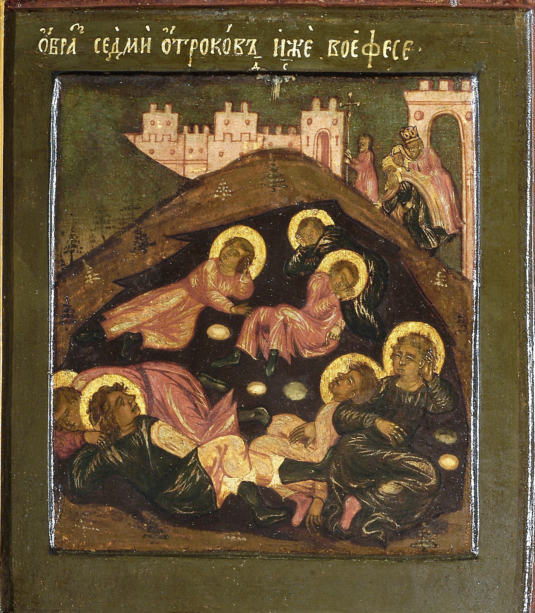 The story goes that in the mid-3rd century, seven young soldiers of the Christian faith from the city of Ephesus in Asia Minor were stripped of their ranks when Emperor Decius, a persecutor of Christians, learned of their faith. Taking refuge praying in a grotto on Mount Coelian, they were imprisoned in a cave and condemned to starve to death there. Instead, the young men fell into a prodigious sleep and did not awaken until two centuries later, during the reign of the Christian emperor Theodosius (408-450).
