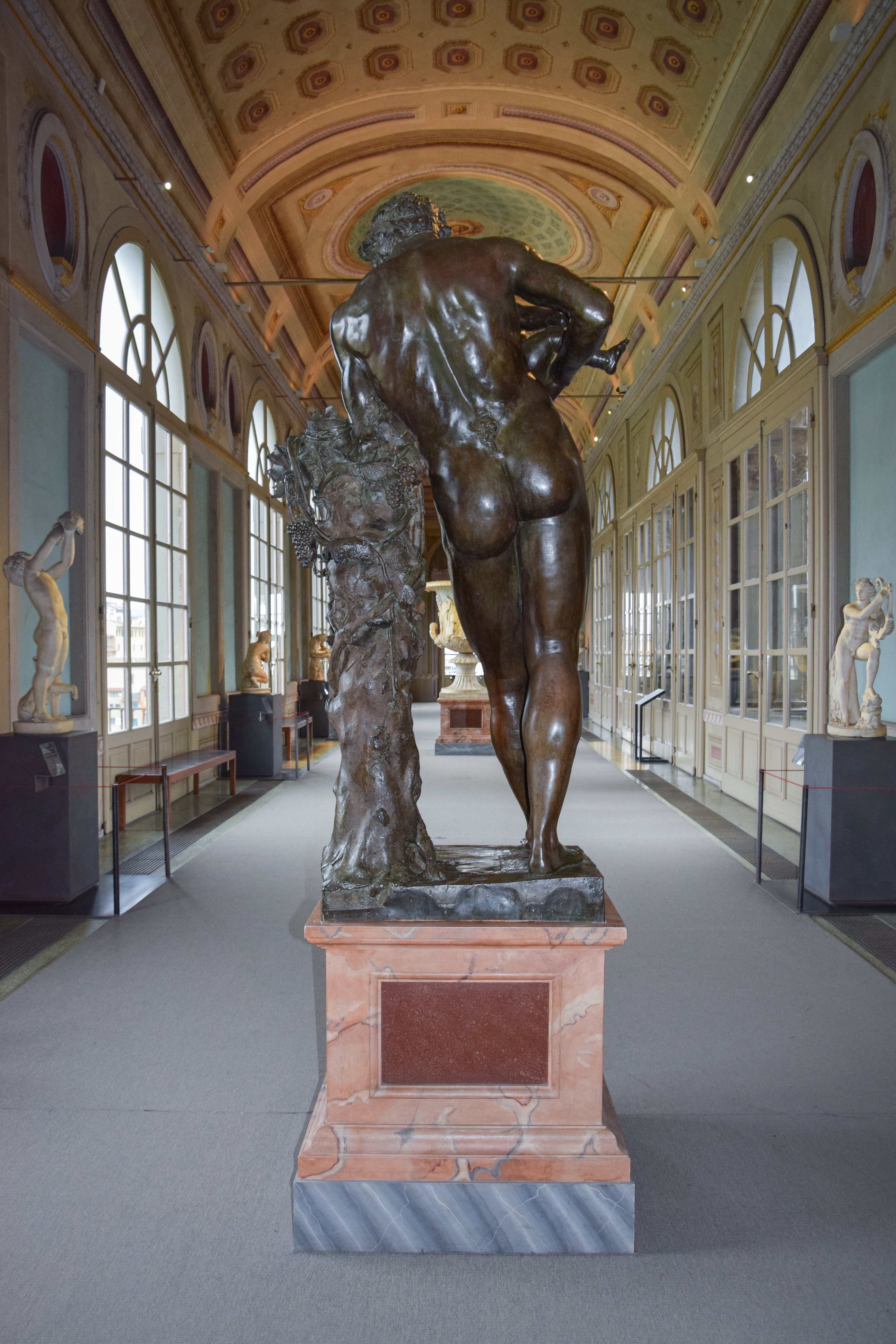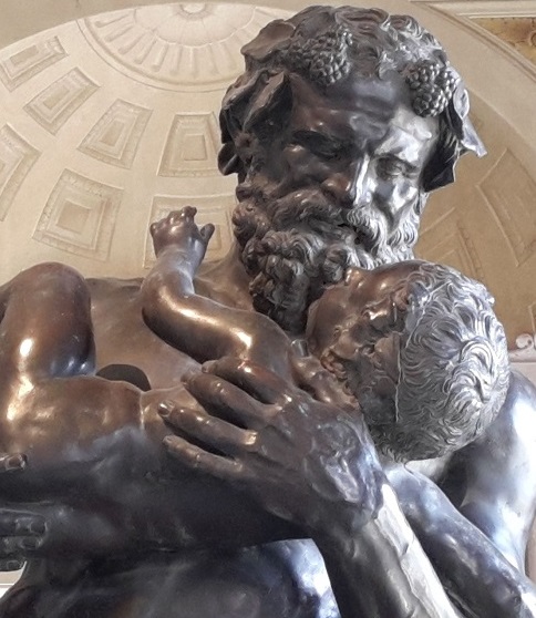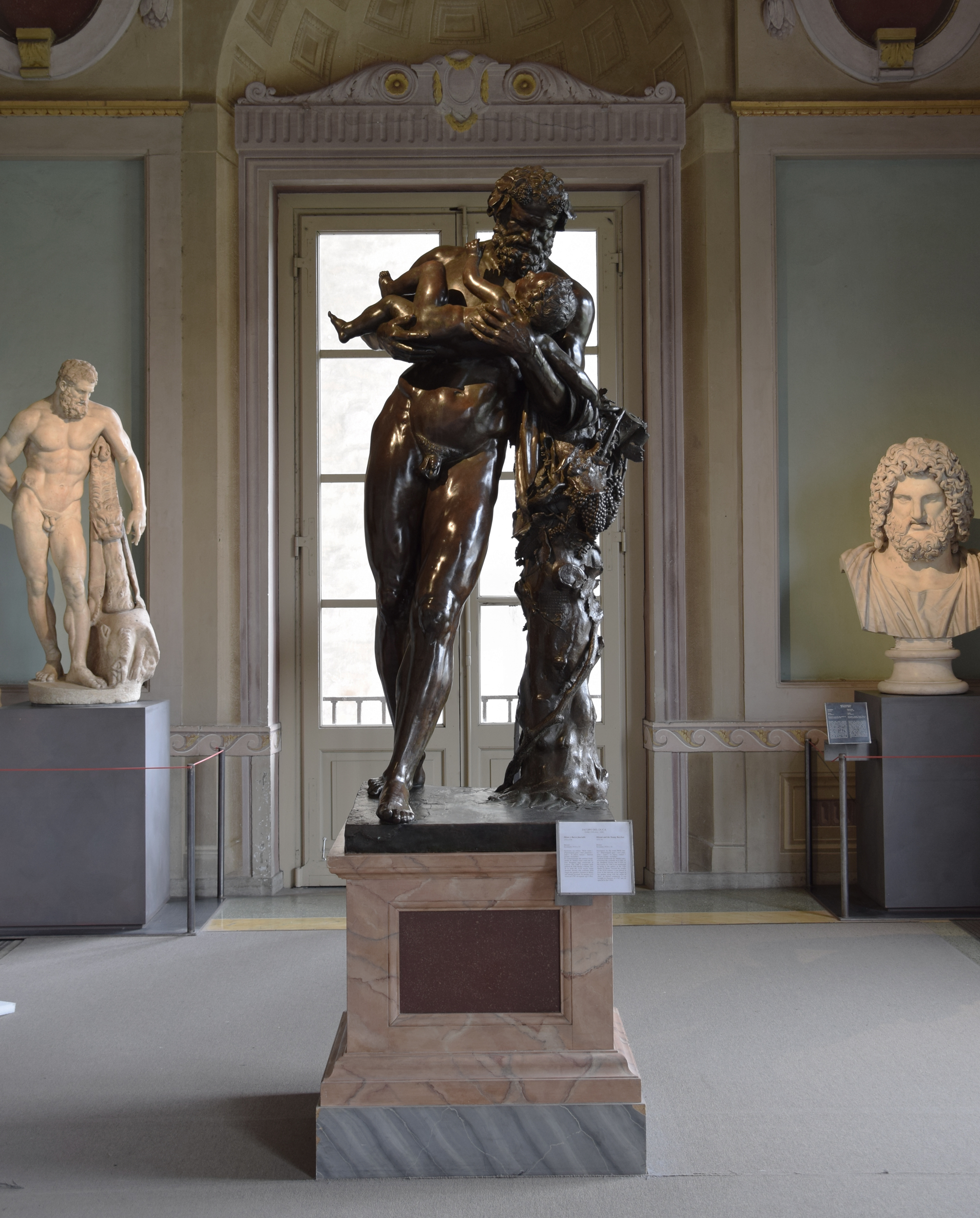 Ferdinando de’Medici, still a cardinal at the time, obtained permission from the owner of the marble work to make a cast with which, according to the documentary evidence, Jacopo del Duca would have created the model for a fusion in bronze. Compared with the ancient version, the modern sculpture appears animated by an all-new naturalism: the facial features and body muscles seem brighter, the beard and hair are more accurately defined. The tree trunk on which Silenus is leaning is enriched by the addition of a vine creeping up it in a luxuriance of bunches of grapes, leaves and tendrils. The commissioner also had a scroll added, bearing an inscription taken from the Aeneid: “Wars, peace are my trade: so, under your far-sighted leadership, I will reveal the mysteries of destiny set to come in the future.” This quotation, which refers to Silenus’s gift of divination, could be interpreted as a tribute by Ferdinando de’Medici to his father Cosimo, Grand Duke of Tuscany. The original idea of using the statue as a fountain had in fact been abandoned even before the fusion was completed, and it is reasonable to presume that Ferdinando had decided to give it to the Grand Duke as a gift, perhaps because the group was a rare portrayal of a father and son, even if the roles of the protagonist were only presumed. But Cosimo’s death in 1574, the period in which Jacopo del Duca completed the sculpture, meant that this was not possible, and the work was located in Ferdinando’s villa on the Pincian Hill, where it remained until its move to the Uffizi.