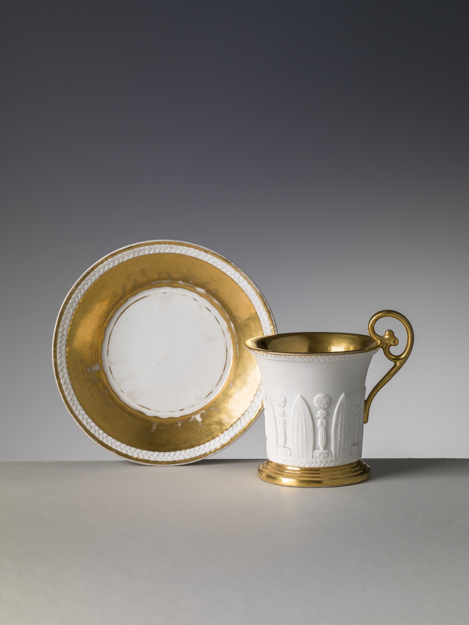 In red, on the saucer: Manufacture / de S.M. l’Impératrice / P.L. Dagoty / A PARIS