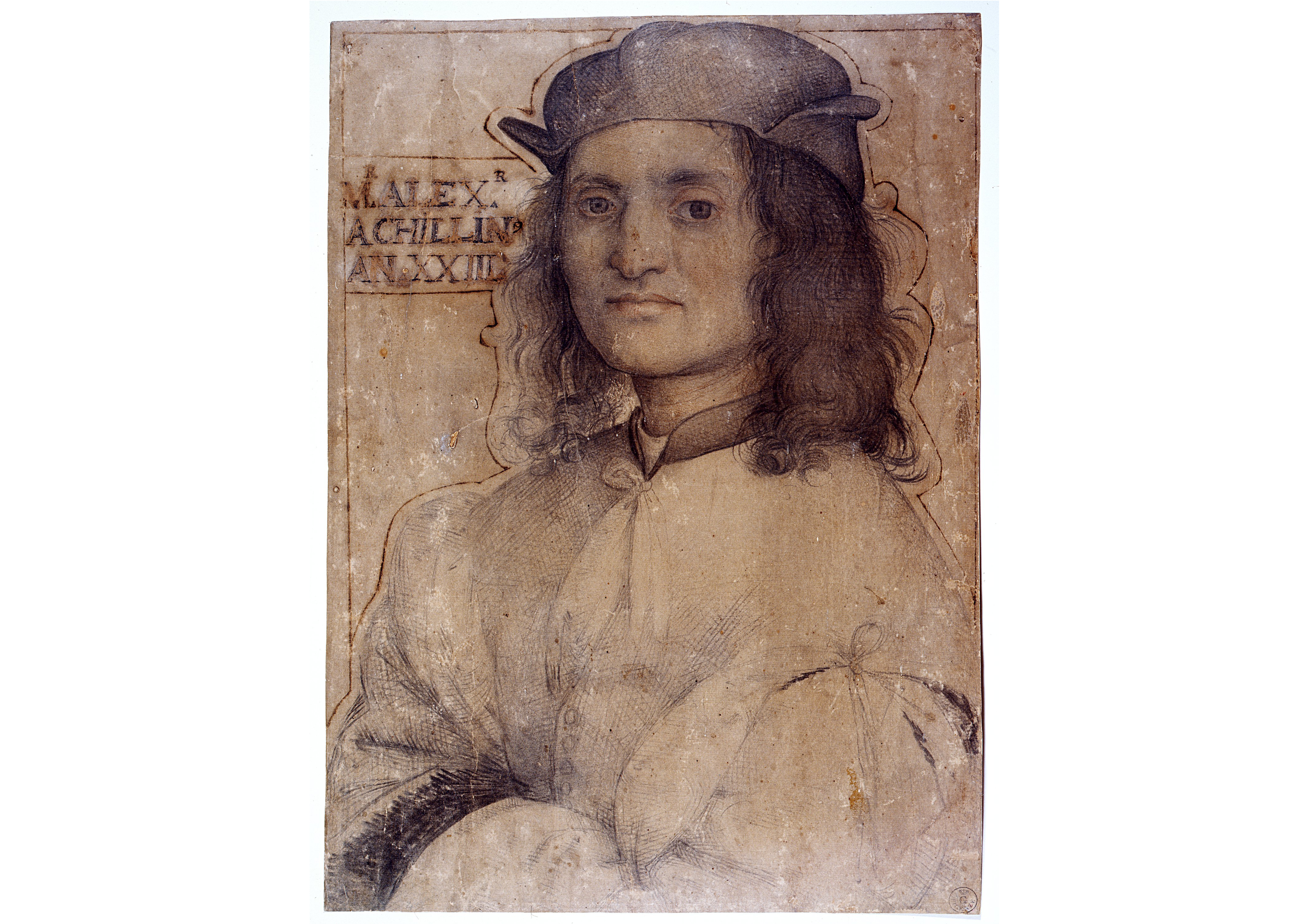 Inv. 1445 FThe inscription on this work, which is old but not authentic, led to the erroneous identification of the figure portrayed as Alessandro Achillini (Bologna, 1461/1463 - 1512) in the past. The person depicted is actually Alessandro's brother Giovanni, known as Filoteo (Bologna, 1466 - 1538), a well-read scholar of classics and literature who studied the Etruscan language and was familiar with Greek and Latin. Similarly to Alessandro, there is documented evidence of contact between him and Amico Aspertini. Towards the end of the first decade of the 16th century and during the second decade, Aspertini's independence from accepted standards of beauty, and his interest in psychological introspection, gave rise to a small number of portraits that were nonetheless incisive. The execution of this drawing dates it to the start of his mature period, probably the end of the first decade. The subtly naturalistic style is combined with a certain idealization of the subject, while the muted expressive tension is intended to depict the poet's moral gravitas and inner refinement.