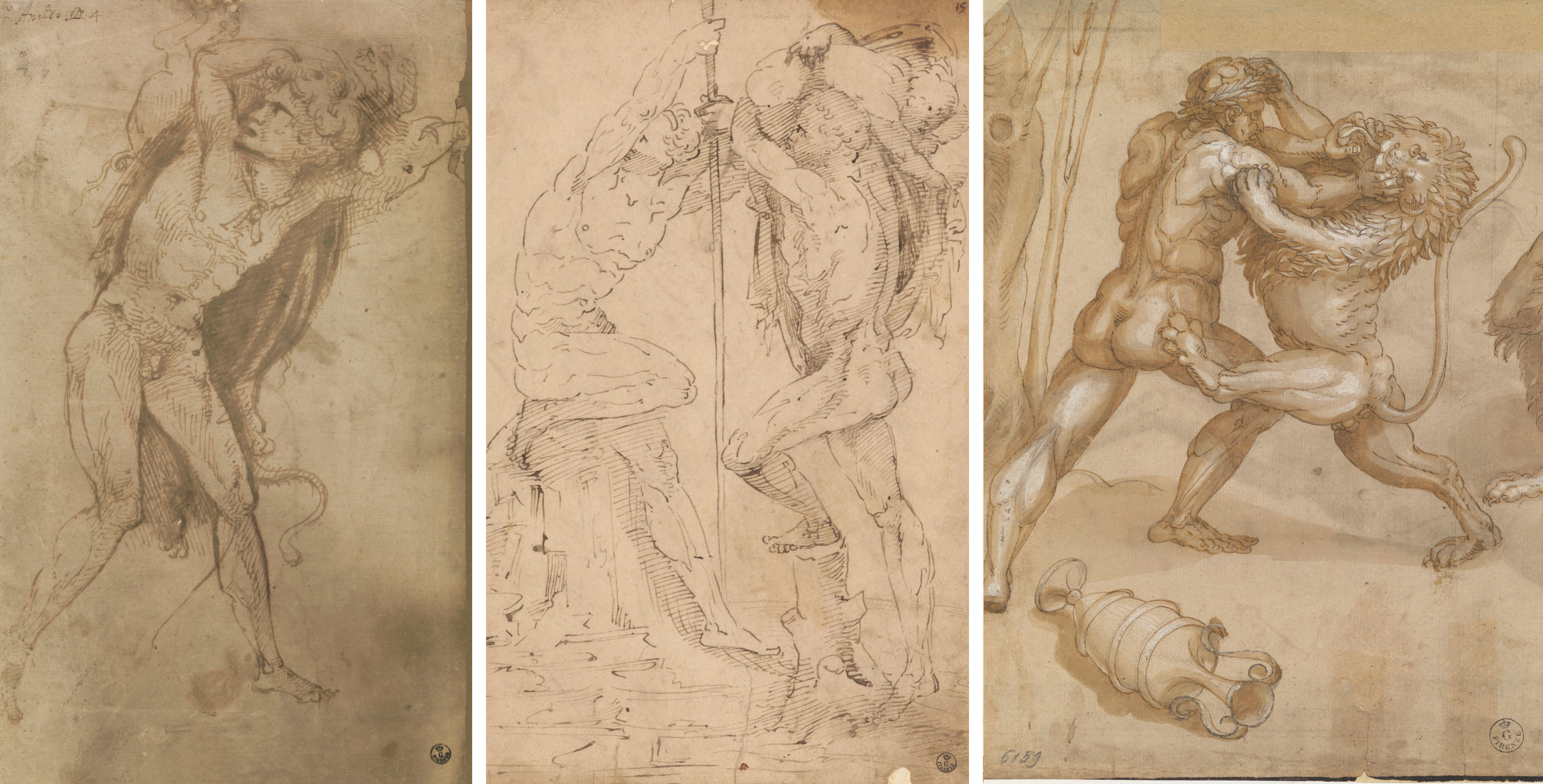 Inv. 12272 F3. Amico Aspertini, Two Studies for Hercules and the Nemean Lion