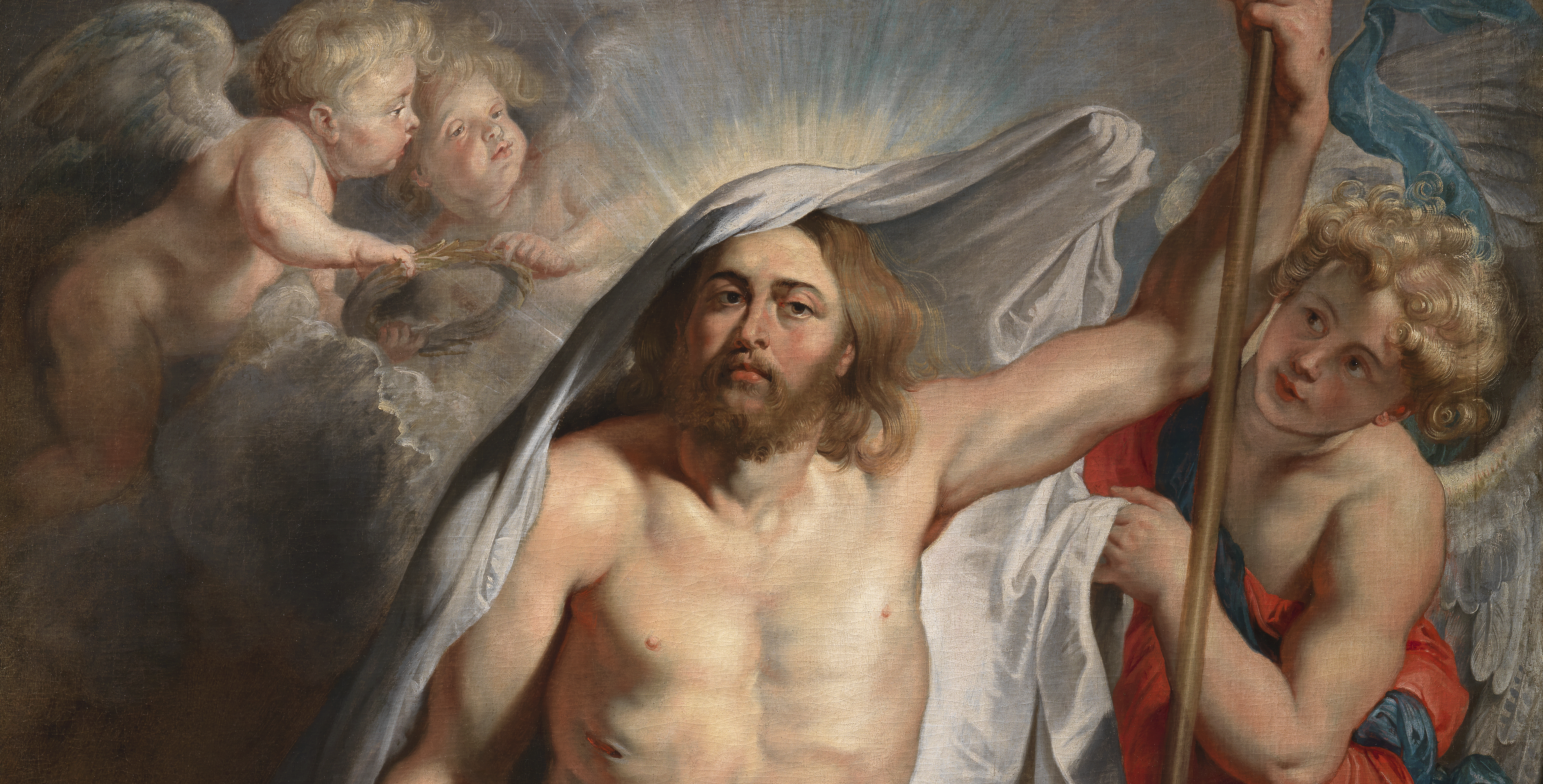 Rubens’ canvas, exhibited in the Palatine Gallery, is one of the most original and spectacular interpretations of this theme. It does not faithfully follow the evangelical narrative, but points the attention to a single, iconic moment: the rising of Jesus, taking the banner of the cross and revealing himself in all his formidable physical power.