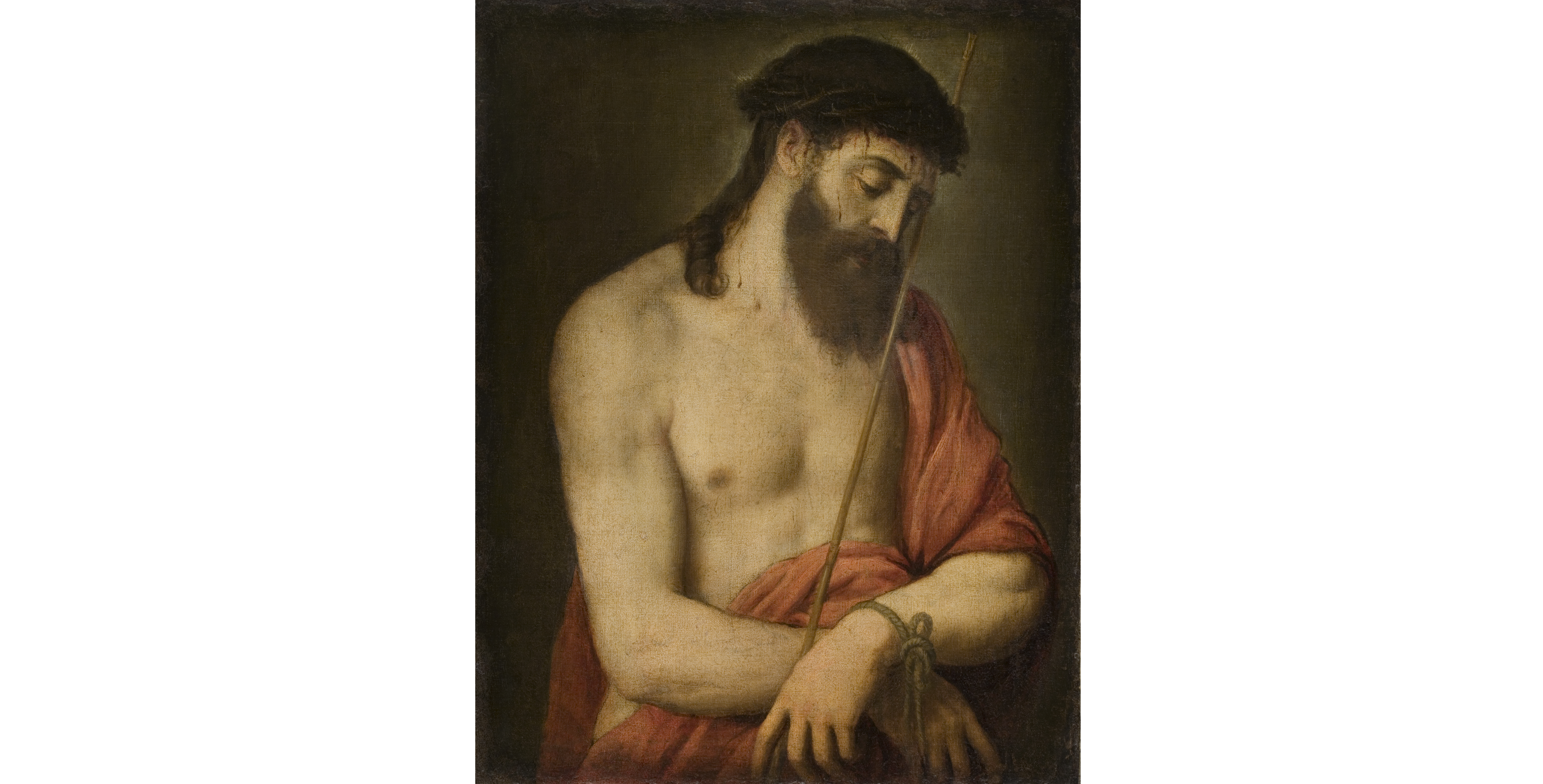 It is precisely in this way that Titian represents him in the canvas located in the Palatine Gallery, which for a long time was considered a workshop copy, and has only recently been directly attributed to the Venetian painter. The most convincing characteristic was the remarkable executive quality of the figure that emerges from a dark background in all its humble and silent acceptance of suffering. Titian shows us a "living and true” Christ (to use the same words with which Pietro Aretino describes this subject in a famous letter from January 1548), in which realism is explicitly manifested in the bruises left by the beatings on the half-naked body and in the drops of blood coming down from the forehead. Compared to the more traditional iconographies, which present Jesus in a frontal position with his eyes turned towards the viewer, the artist chooses a three-quarter position with his head reclining on his shoulder (almost resting on the cane) and his eyes lowered. This Christ does not look at us directly, yet possesses an exceptional expressive force: he manages to communicate to us a mute plea to tolerate the sufferings that also strongly affected Aretino himself. In fact, he wrote that the presence of this subject in his room had transformed it from a place of pleasure and lust into a "sacred temple and of God", pervaded by prayer and Christian honesty.