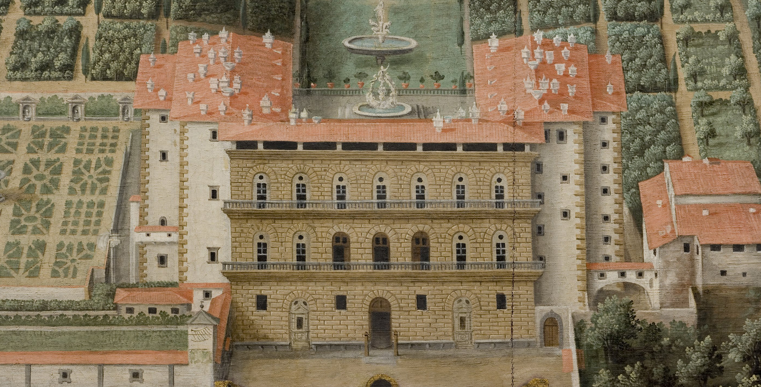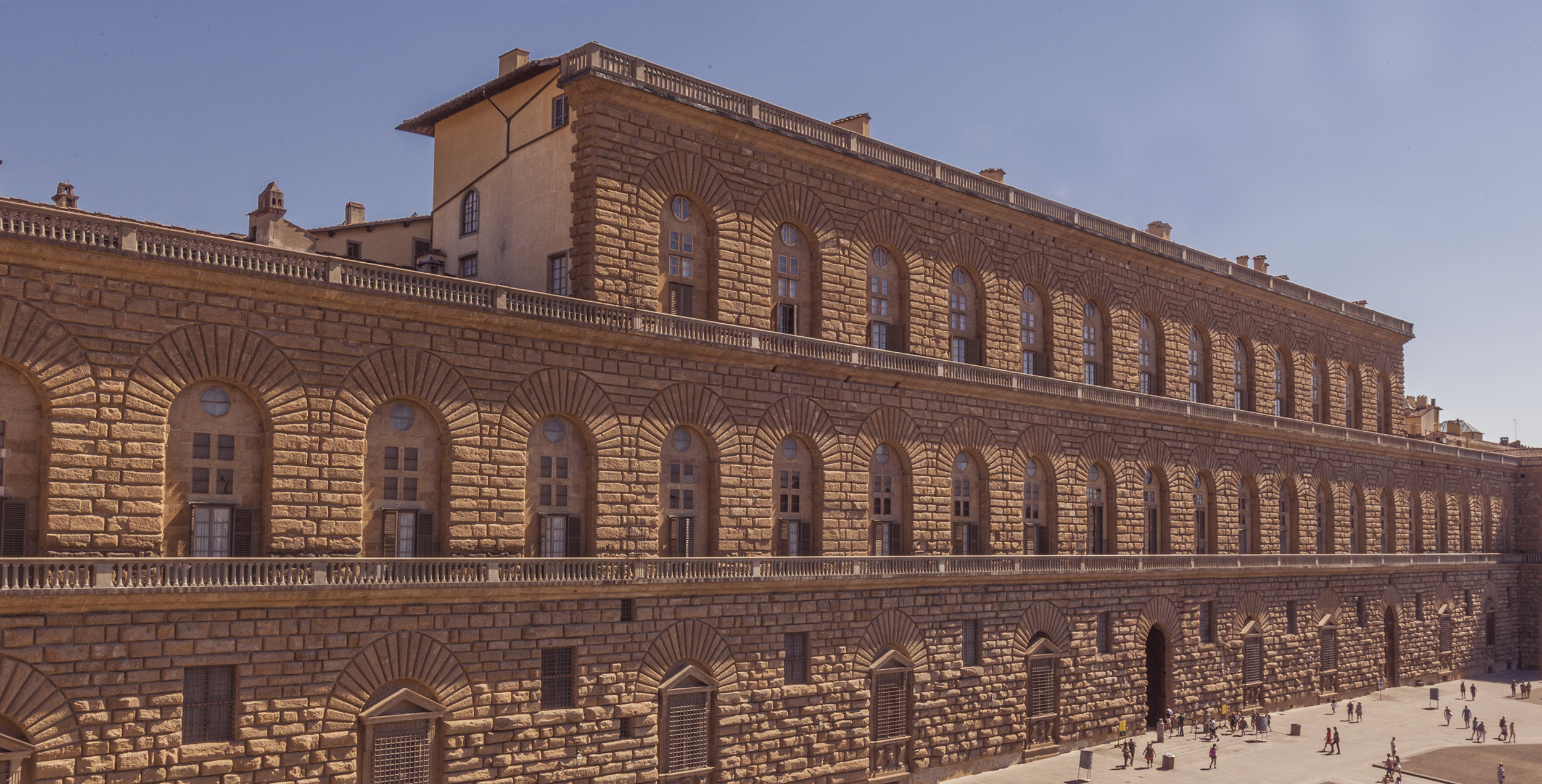 Pitti Palace is the result of no less than three centuries of transformations and expansions, brought together to form the spectacularly stunning facade that welcomes visitors, making them feel as though they were at the centre of an enormous theatrical scene as soon as they enter the square from the side streets or alleys called “sdruccioli” in front of it. But how was Pitti Palace at the start? We can find out by looking at this view by Giusto Utens, painted in the late 16th century and one of a series of 17 canvases that recorded, like a map, the magnificence of the grand duchy’s estates. In this painting, we can see a view of the old 15th-century palace that belonged to the rich Florentine banker, Luca Pitti, its first owner. Wishing to have a new building that would stand out within the Florence’s urban setting, he ordered the building of a monumental facade in rustic ashlar stone, set out on three perfectly equal floors: the bottom floor had three large doors - two of which would then be closed and reduced to the windows we see today- and there were perfectly symmetrical first and second floors, each with seven large windows. The style of Luca Pitti’s palace was thus not unlike those of the typical Florentine models of the 15th century, such as the Medici, Strozzi or Rucellai Palaces.