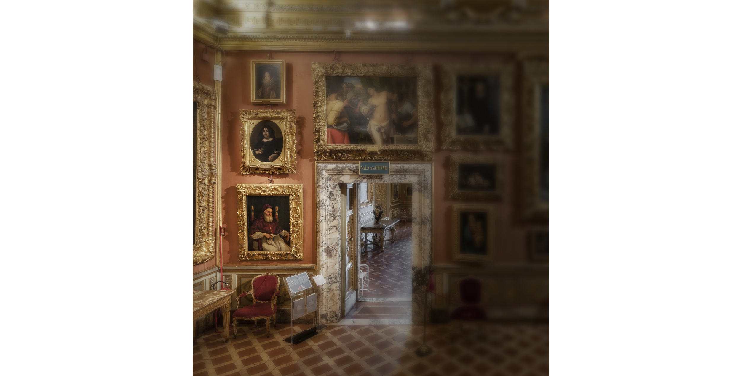 With this recent transfer, the Room of Saturn now contains nine paintings by Raphael. We can see the new arrangement, with the arrival of the two Portraits of Men by Raphael from the Uffizi, together with the Magdalene by Perugino, which has been returned to the position it had in the early 20th century.