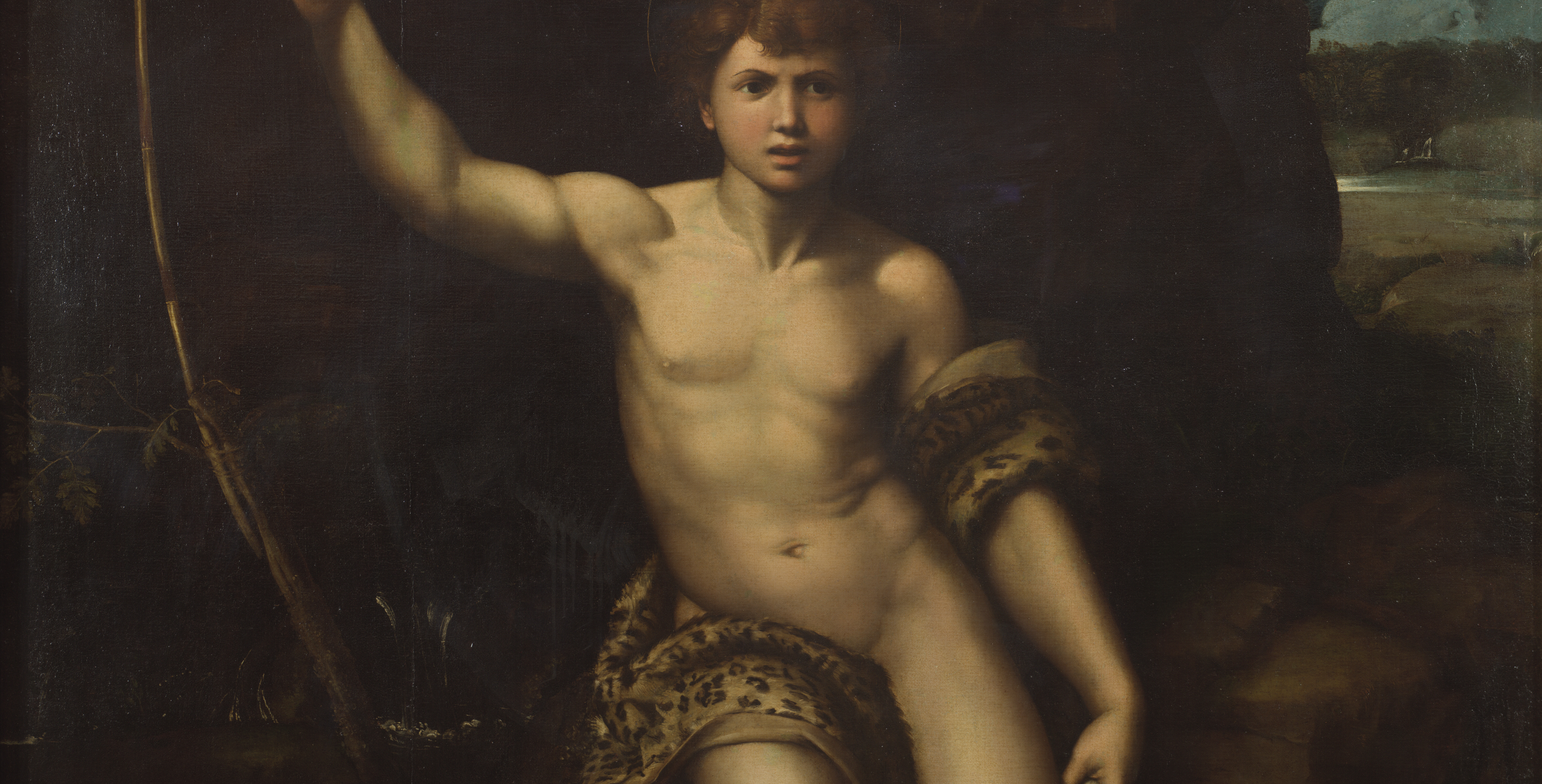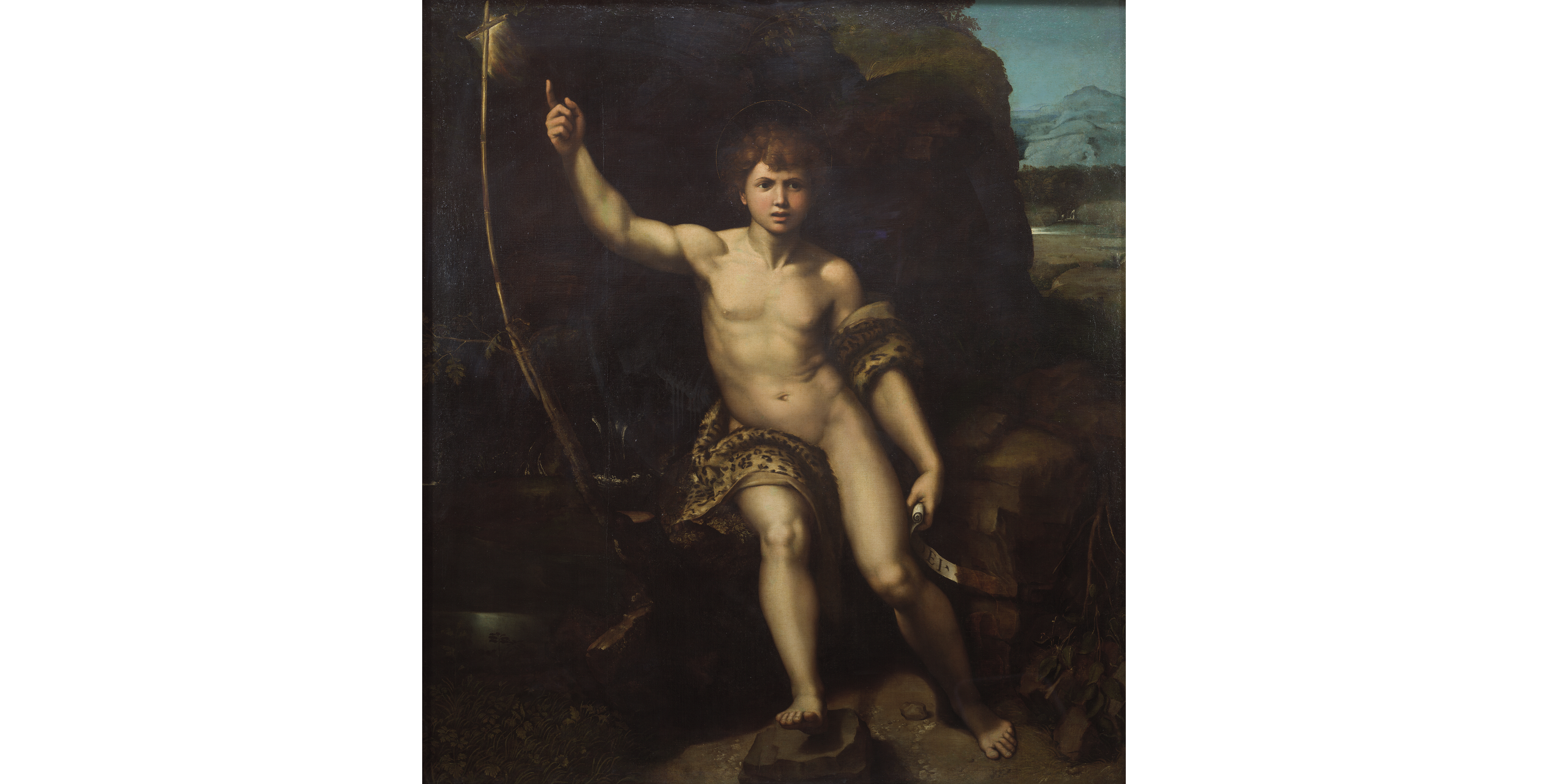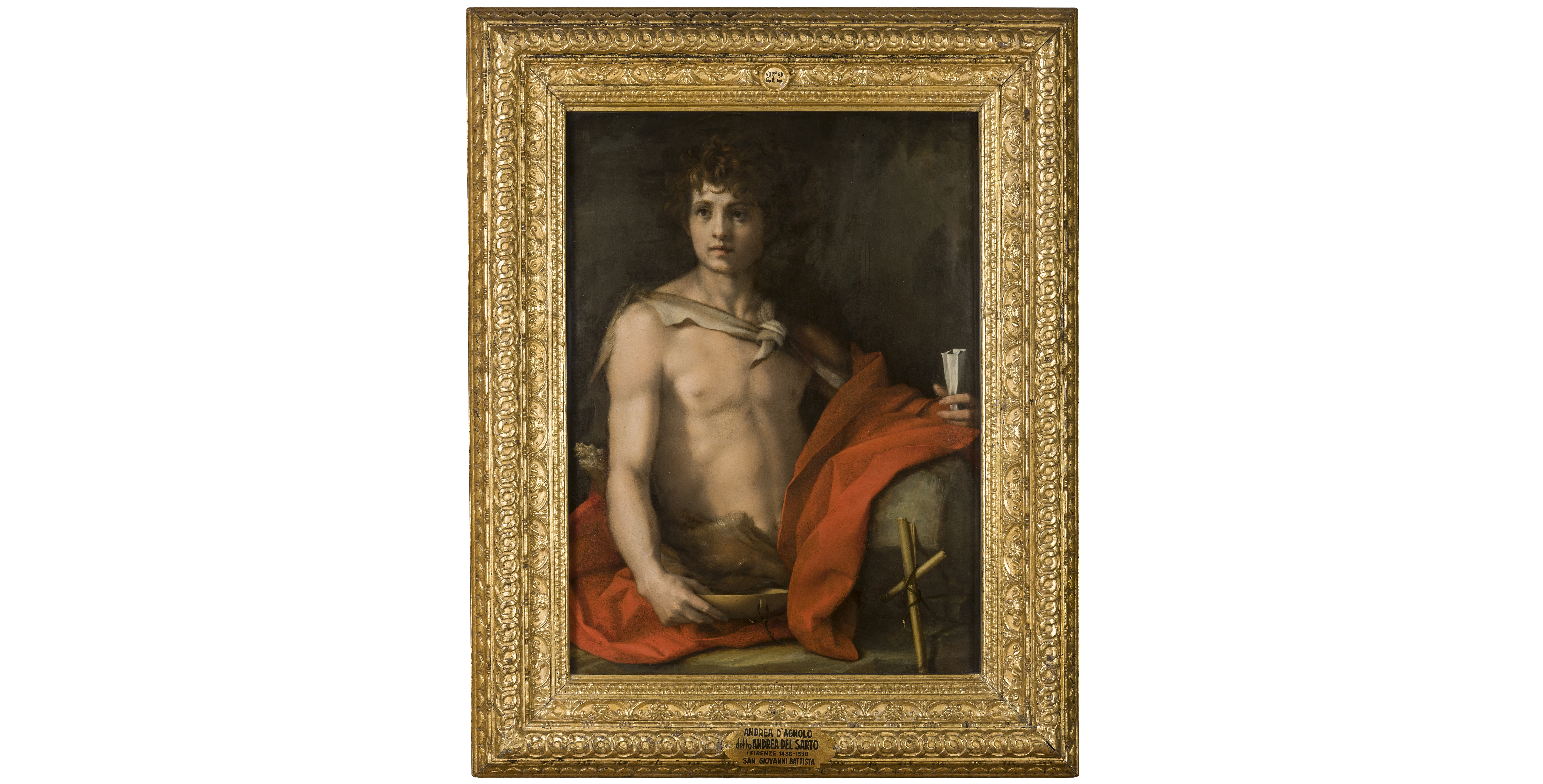 By choosing to depict the sculpted figure of a young Saint John the Baptist standing out against a dark background, enveloped in an intense light, Andrea del Sarto is referring directly to the opening passage from the Gospel of John, which focuses on the Baptist’s role as a forerunner of Christ and a prophet of his coming.