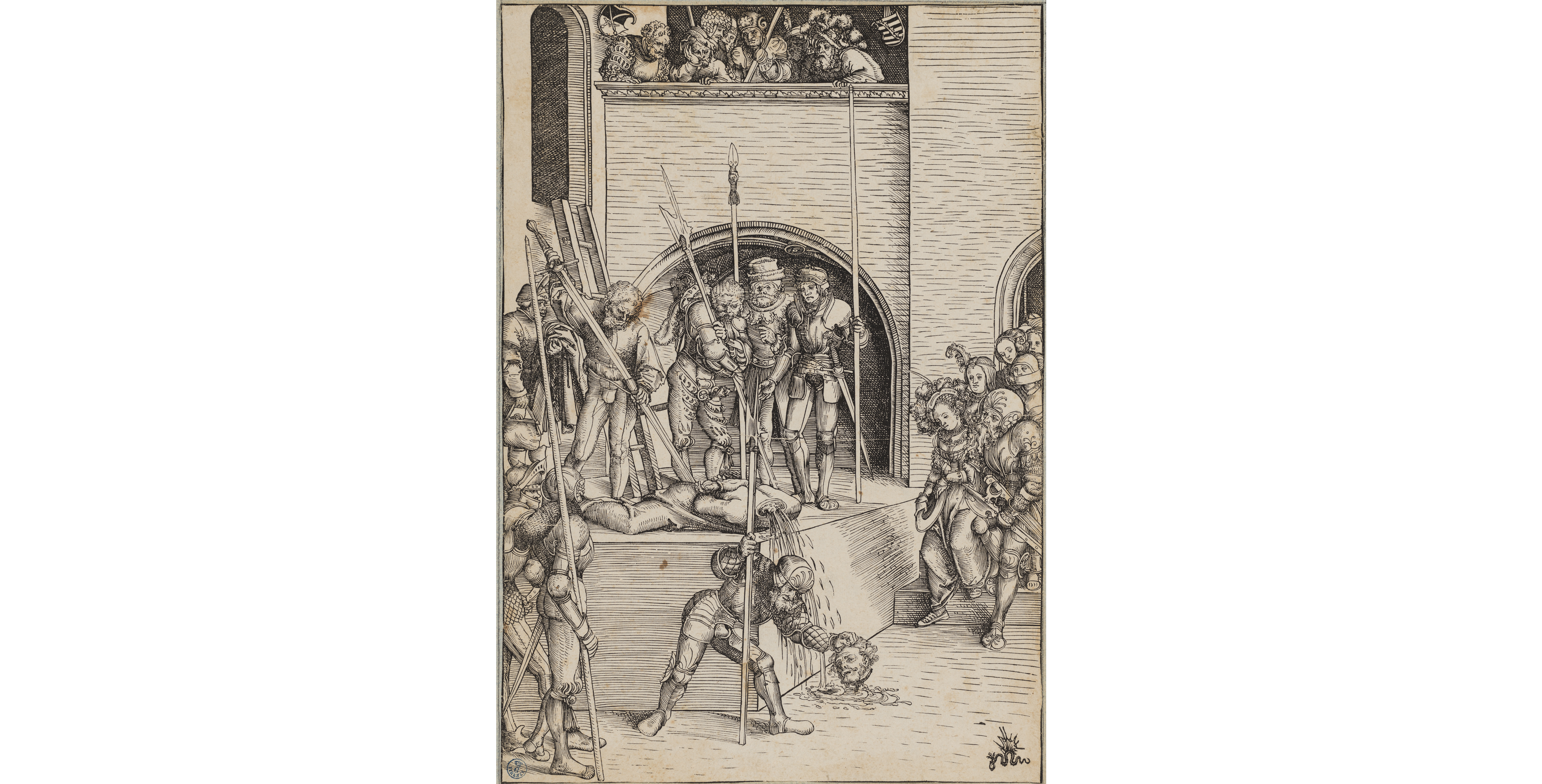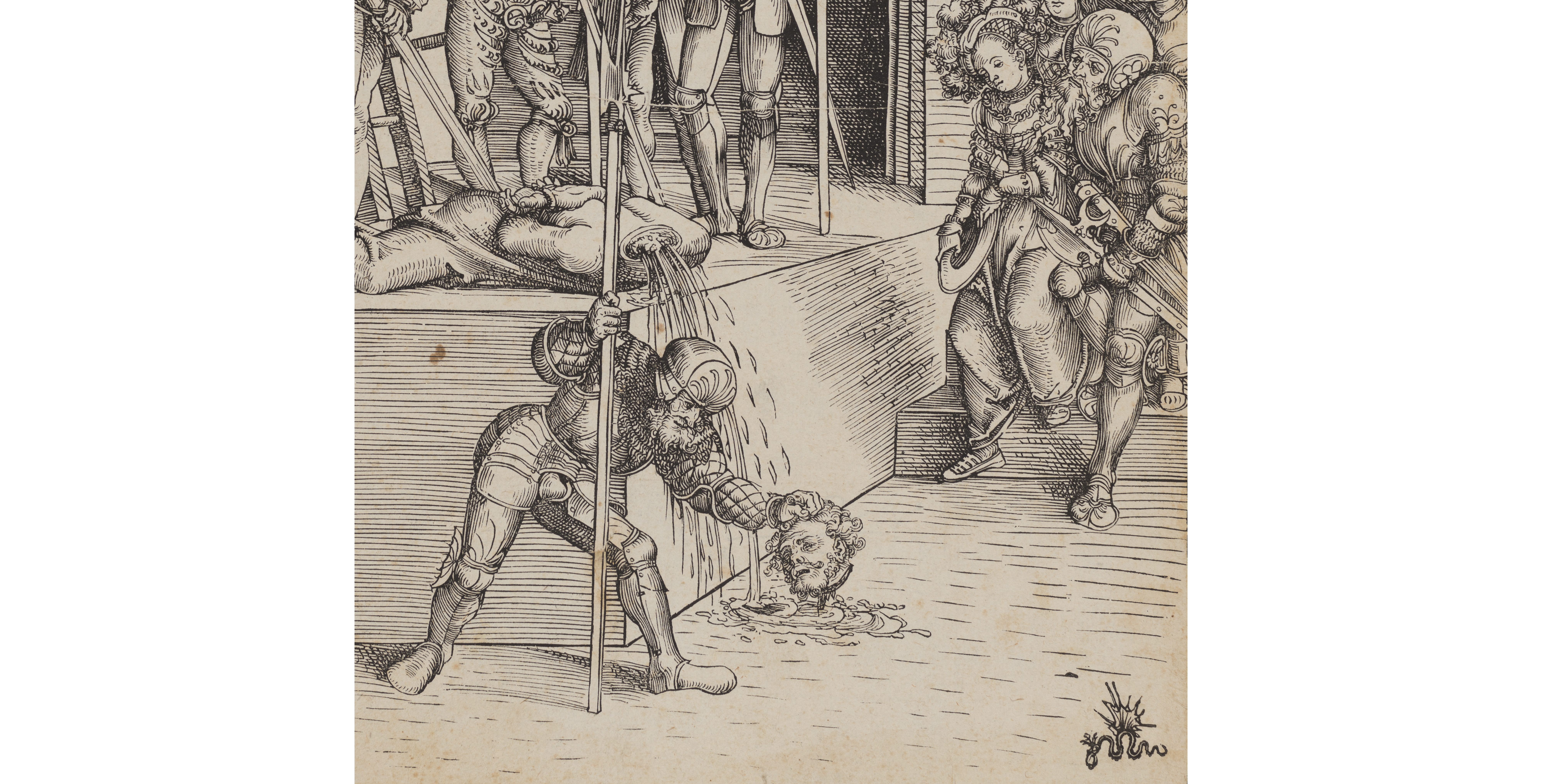 A few years earlier, Cranach chose to focus on the same subject, dwelling on the moment immediately preceding it, when John the Baptist meets Salome’s gaze for the last time before the sword puts an end to his life. The subsequent moment is tackled by the artist in a slightly later painting preserved in Kroměříž Castle (Inv. KE 2367), in which Herodias’ daughter has already collected his head on a platter. The following scene – which sees Salome return to the palace to interrupt her mother’s meal with her second husband – is tackled in various pictorial depictions of Herod’s Banquet (including in the Gemäldegalerie - Kunsthistorisches Museum in Vienna, Inv. 3567 and the Wadsworth Atheneum Museum of Art in Hartford, Inv. 1936.339).