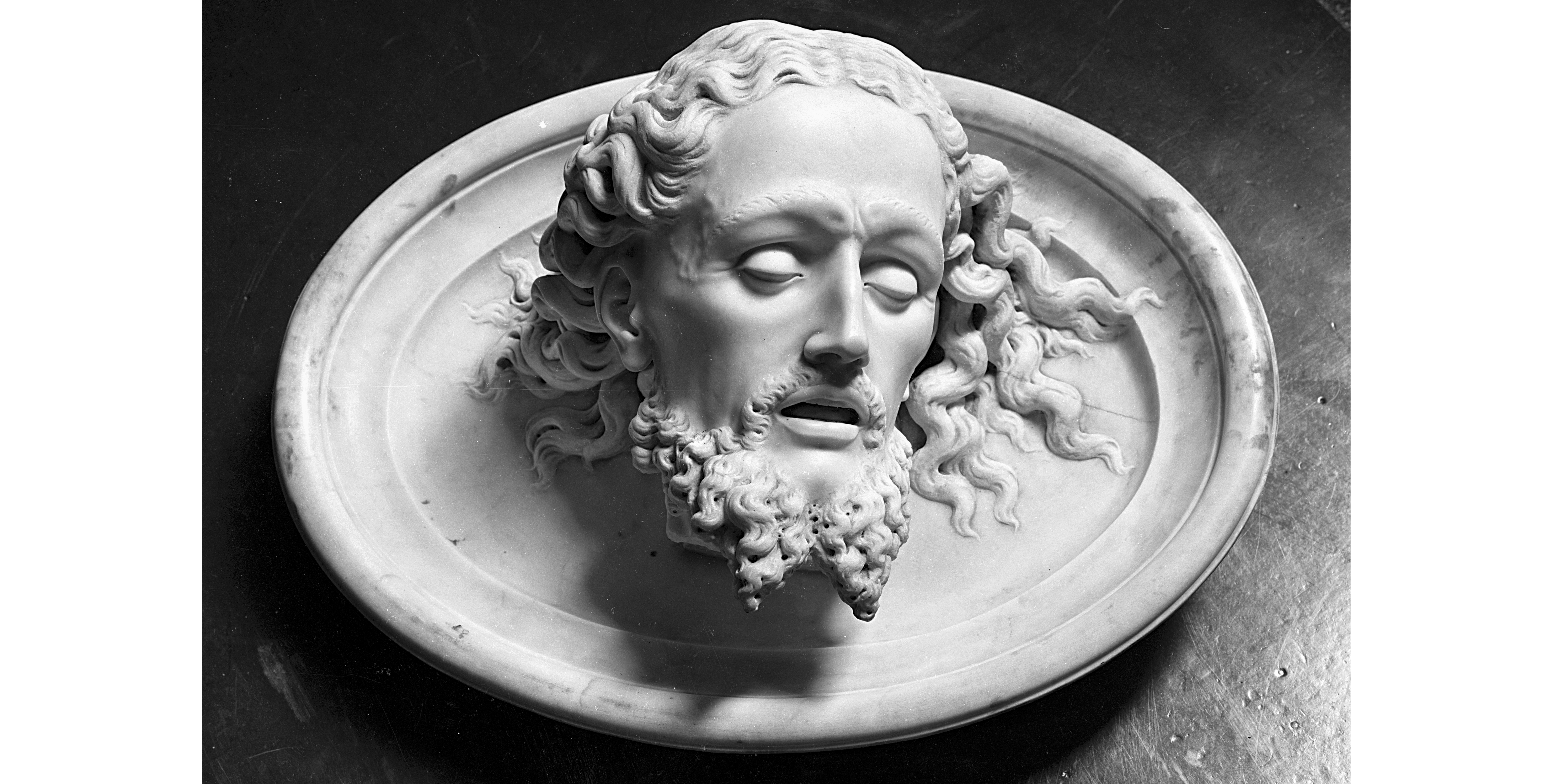 In the features of a lifeless John the Baptist, the young Consani sought to depict beautiful, pure forms, though they were inevitably plagued by his subject’s tragic expression and the terrible violence to which he was subjected. In fact, the sculptor embraced a certain truthfulness, as is evidenced by the intricate work on John’s beard and hair, and the raw rendering of the cut across his neck. The white marble serves to highlight the contrast between the horrifying subject and the form in which it is offered to us.