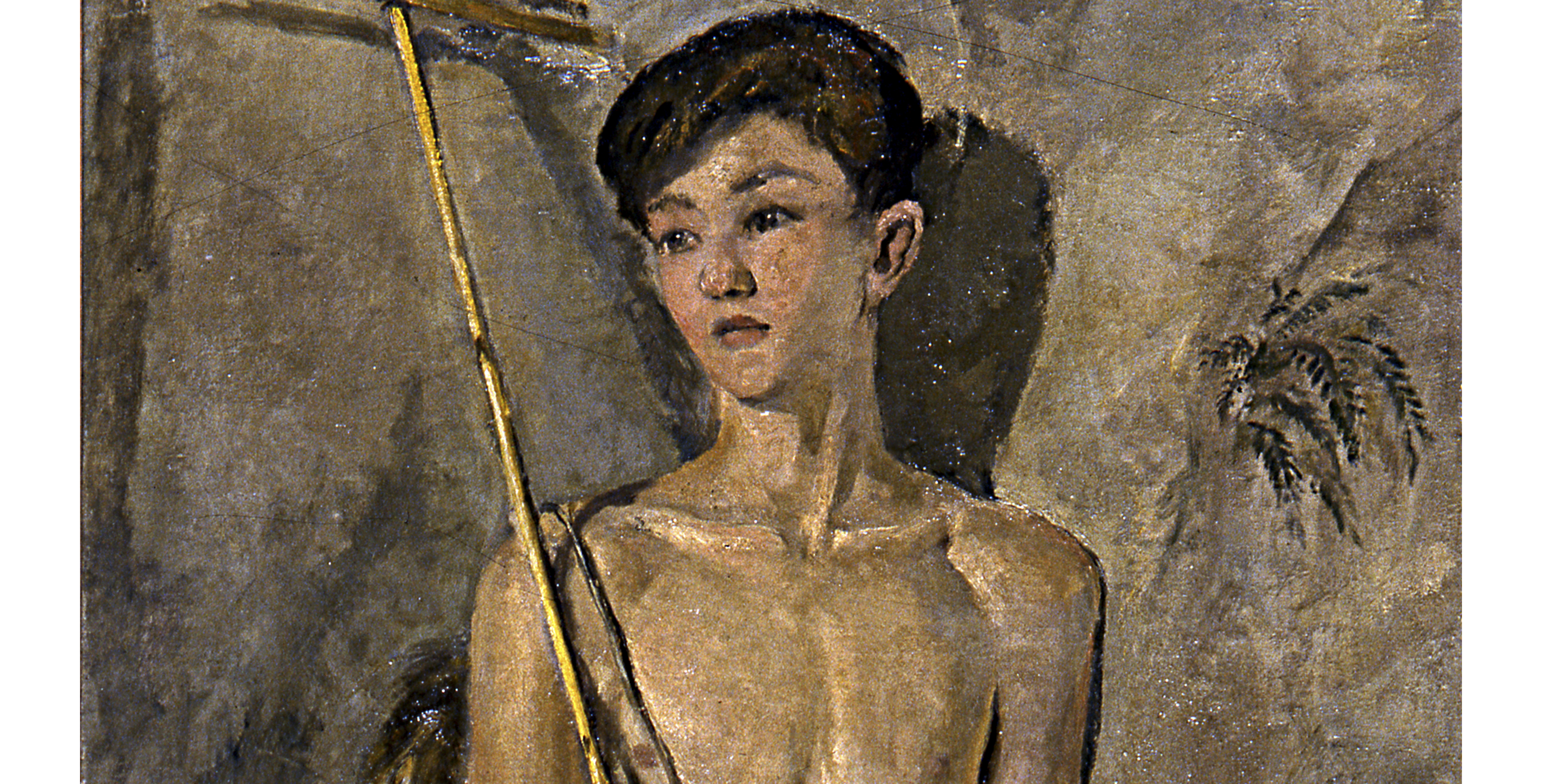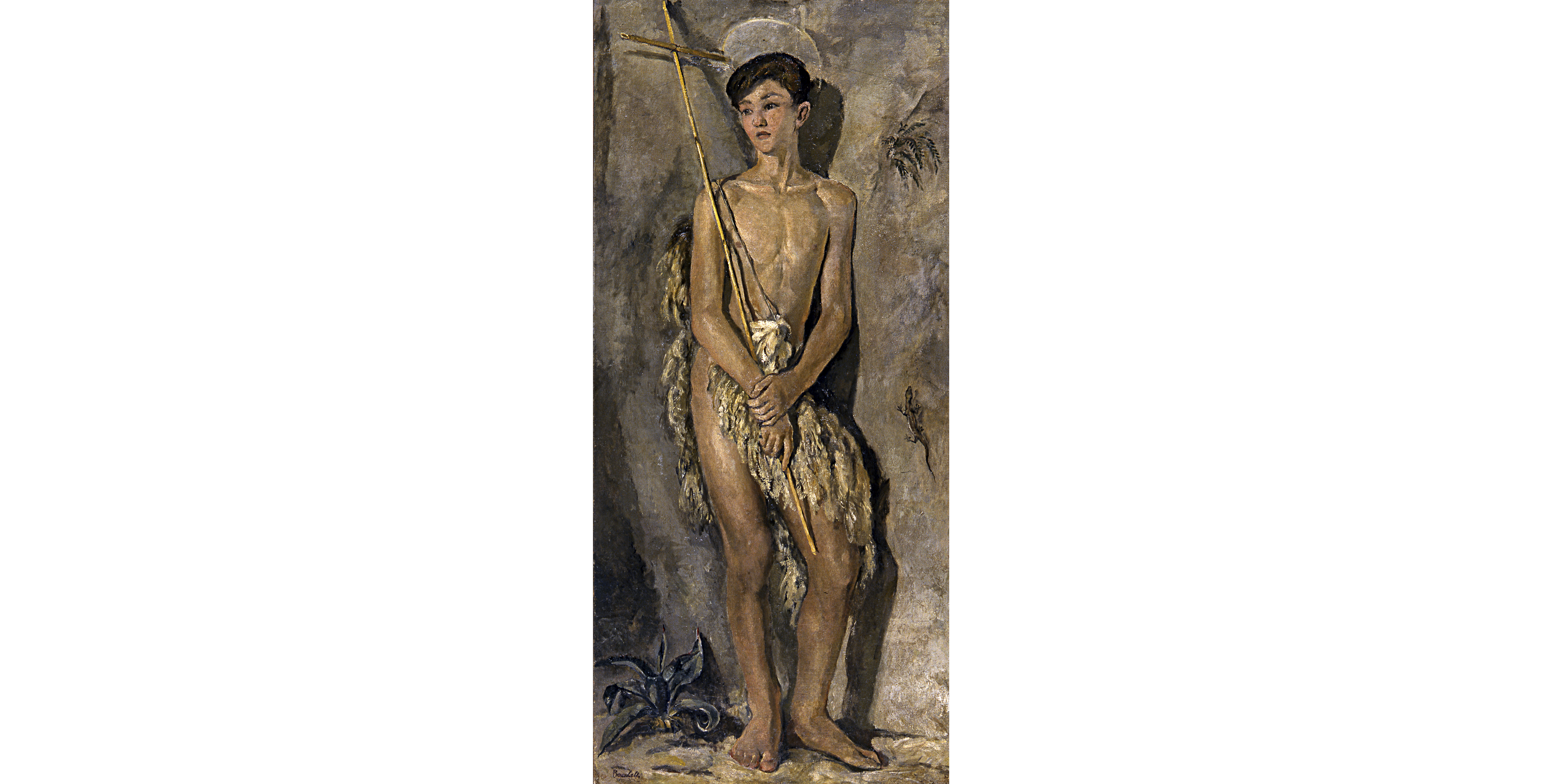 This bright, thick painting is somewhat reminiscent of the rough surface of a fresco. The slender, kind figure of the very young saint is inspired by famous fifteenth-century depictions by the likes of Donatello and Desiderio da Settignano, and the splendid San Giovannino Martelli by Bargello in particular. The tufts of vegetation and the lizard climbing the wall seem to allude to the erupting vitality of the naturalistic details with which Ghiberti framed the circular bezels of the North Doors of Florence’s Baptistery.