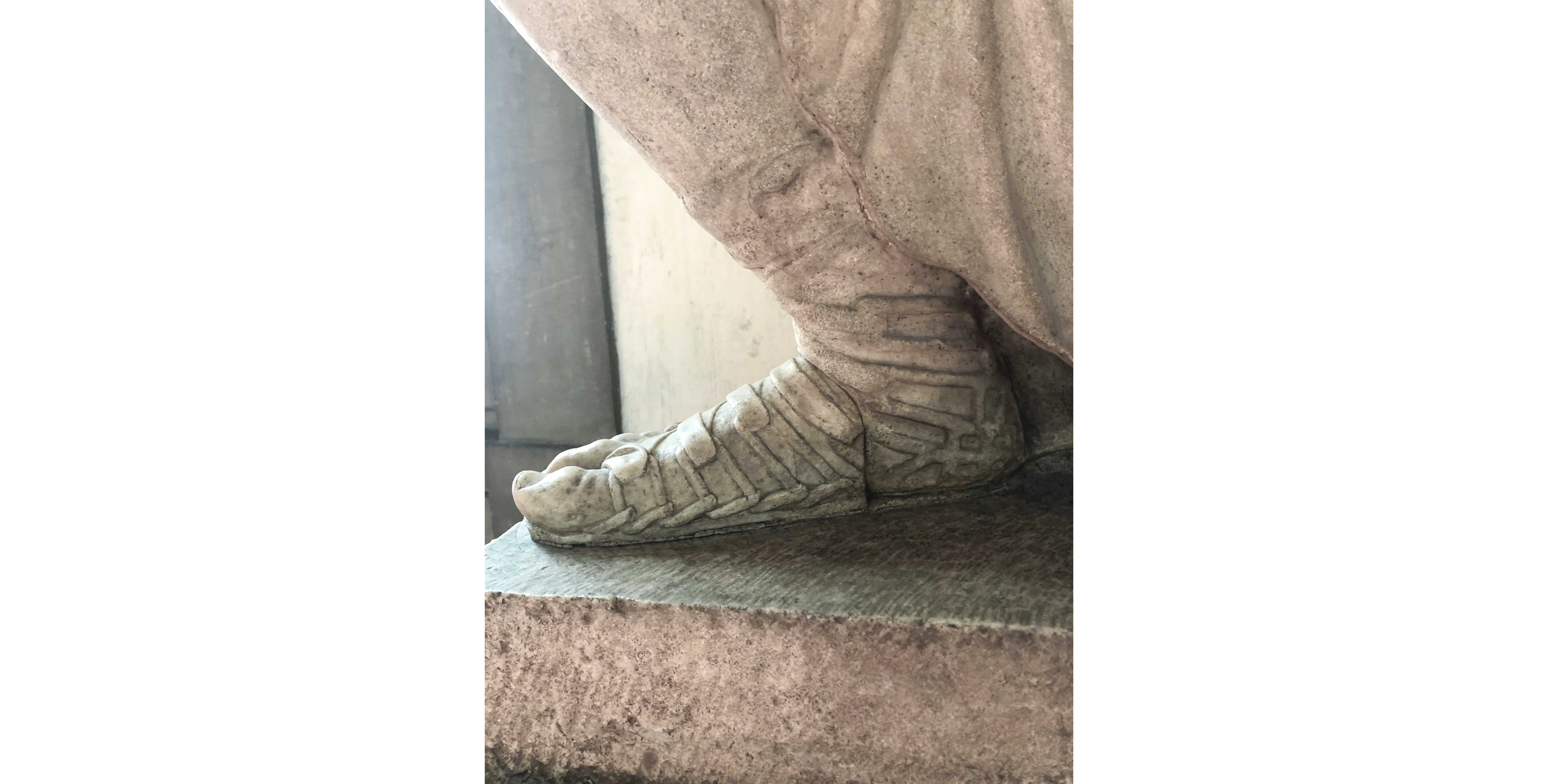 These assumptions are particularly useful when we also use them to obtain a better understanding of classical art. The styles of the footwear worn by Greek and Roman statues reveal details to us that are often missed by even the most careful academics, providing us with important data that enable us to date the work (or its original) with greater precision, or to identify the social, economic, or ethnic status of the owner of those shoes more accurately. It might seem like a paradox, but it is perfectly feasible to affirm that even just a single fragment of a sculpture’s foot, wearing footwear, can provide us with a considerably accurate idea of the subject’s identity, the date of the work and the cultural environment in which it was crafted.