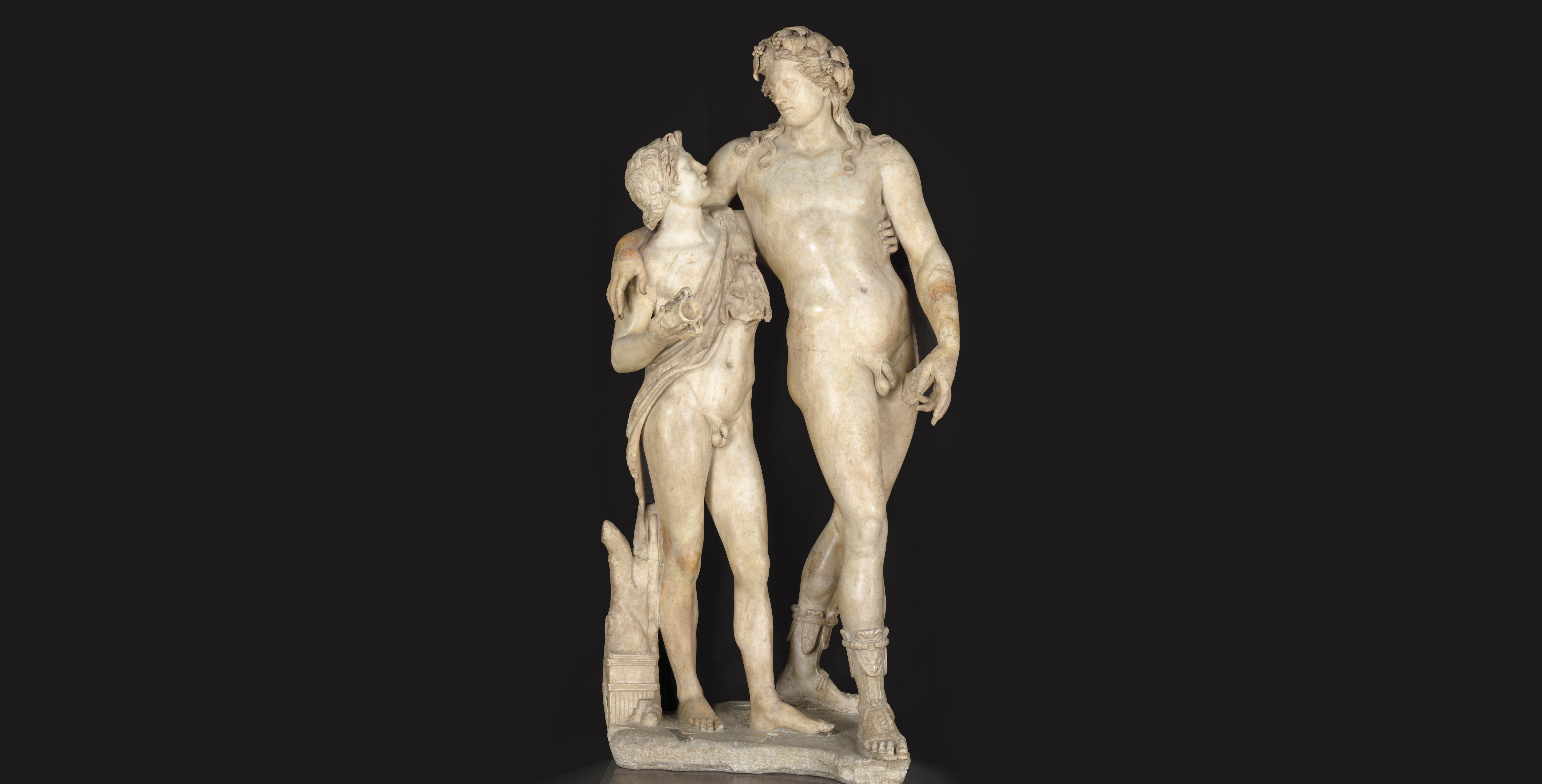 Its incredible state of conservation has meant that it has required few restoration interventions, limited only to the integration of parts of Bacchus’ legs and the satyr’s right arm. Although the technique of execution enables us to date this Roman copy to the first half of the 2nd century A.D., instead the identification of the Greek archetype is debatable. - 14/45Bacchus and Satyr