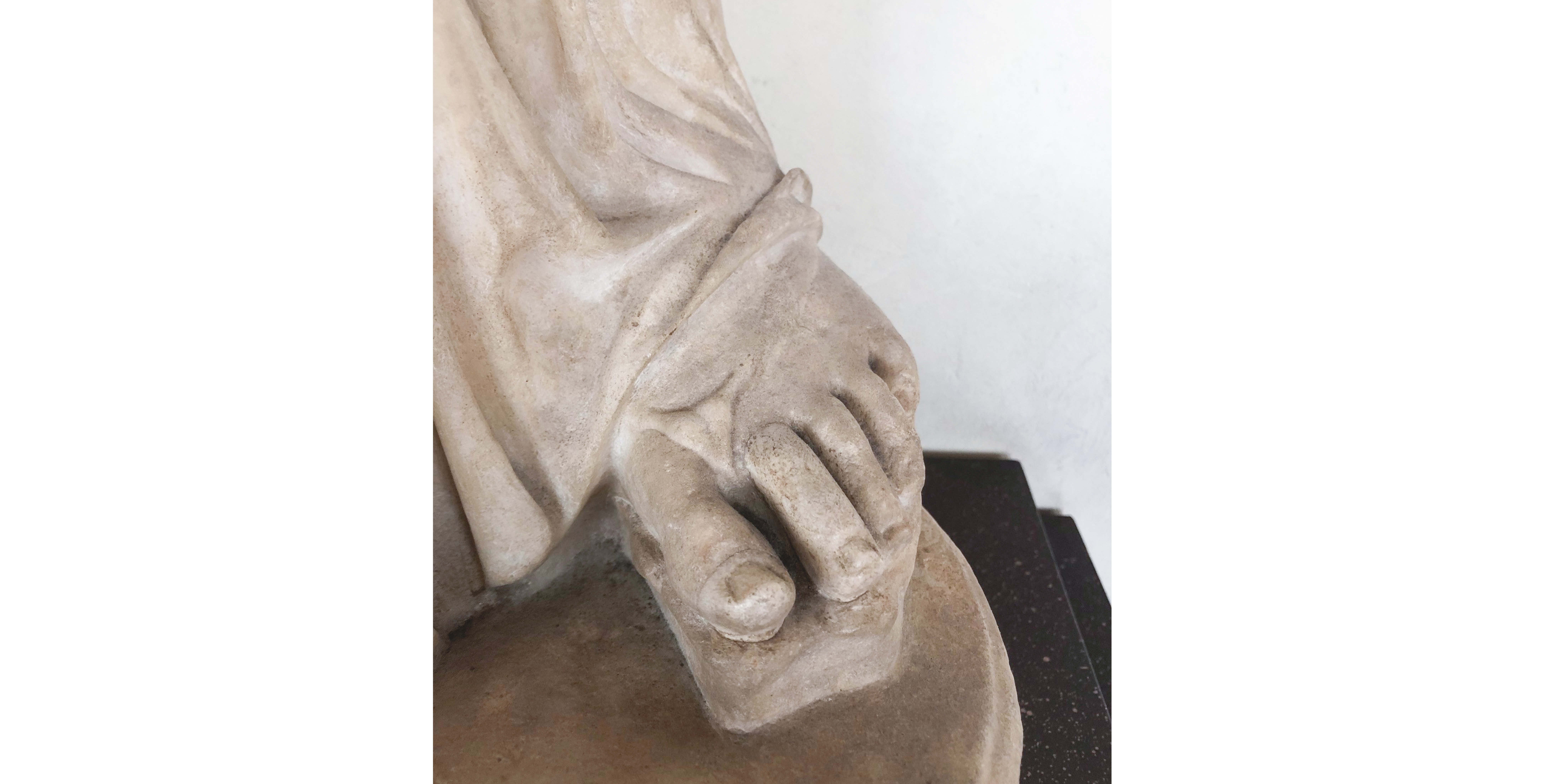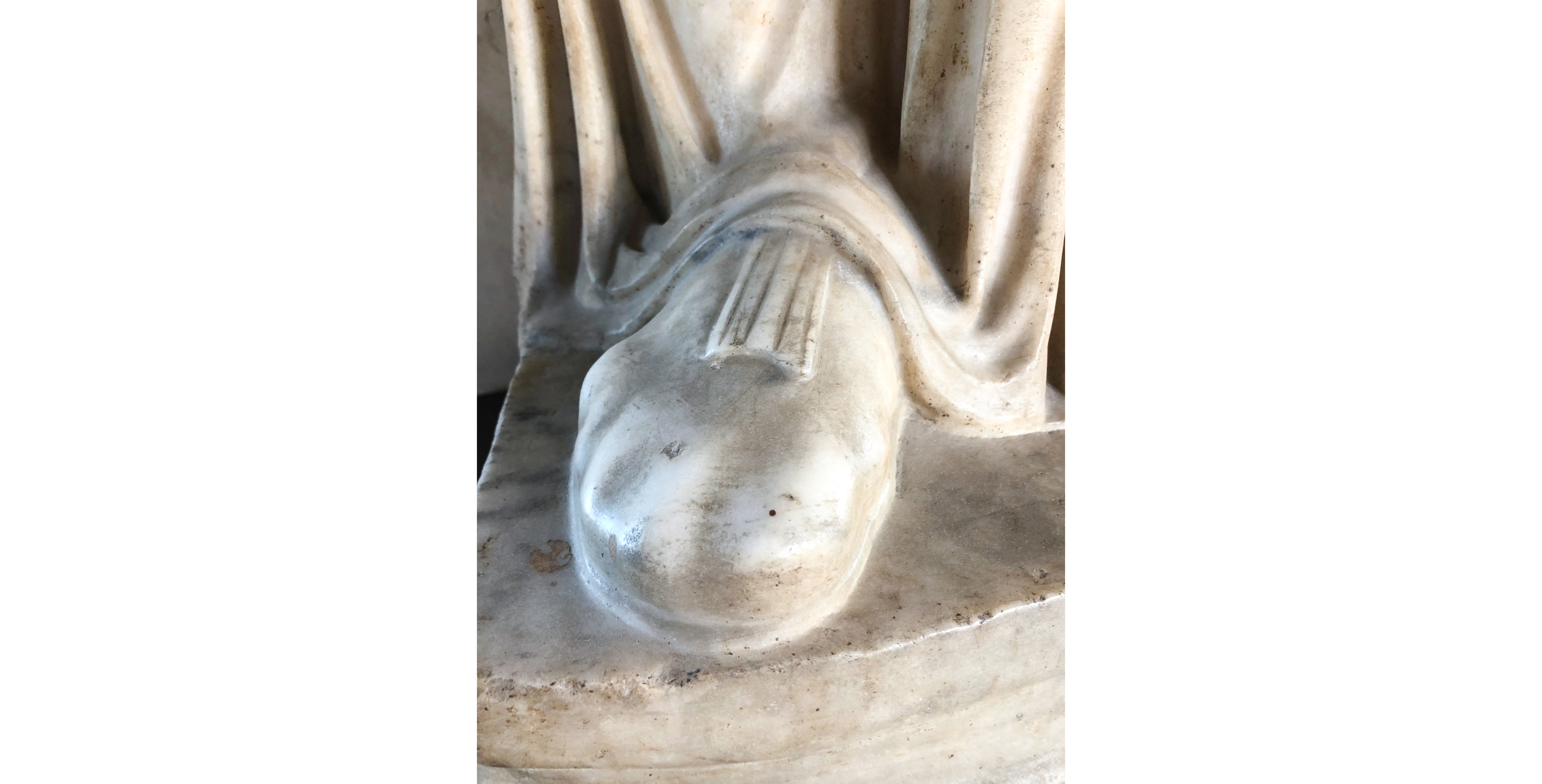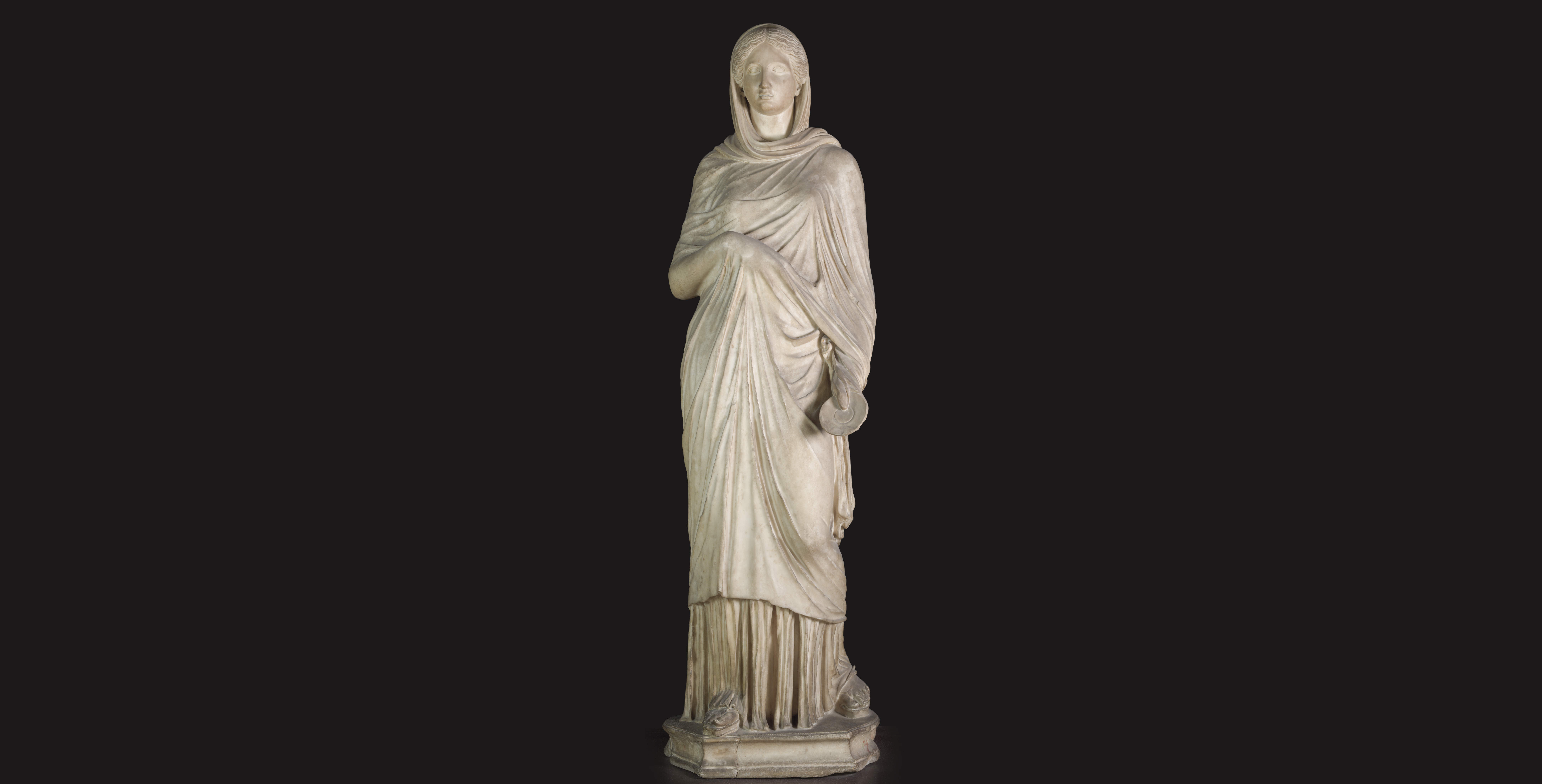 This type of iconography is quite rare and the Florentine work is a copy from the Roman age, dated to the mid-2nd century A.D., the original of which is thought to be an element of the Greek funeral statues of the 4th century B.C. The head and bust covered by the cloak express castitas (chastity) and pudicitia (modesty), the exemplary qualities embodied by Roman matrons as images of moral uprightness and pietas, or holiness.