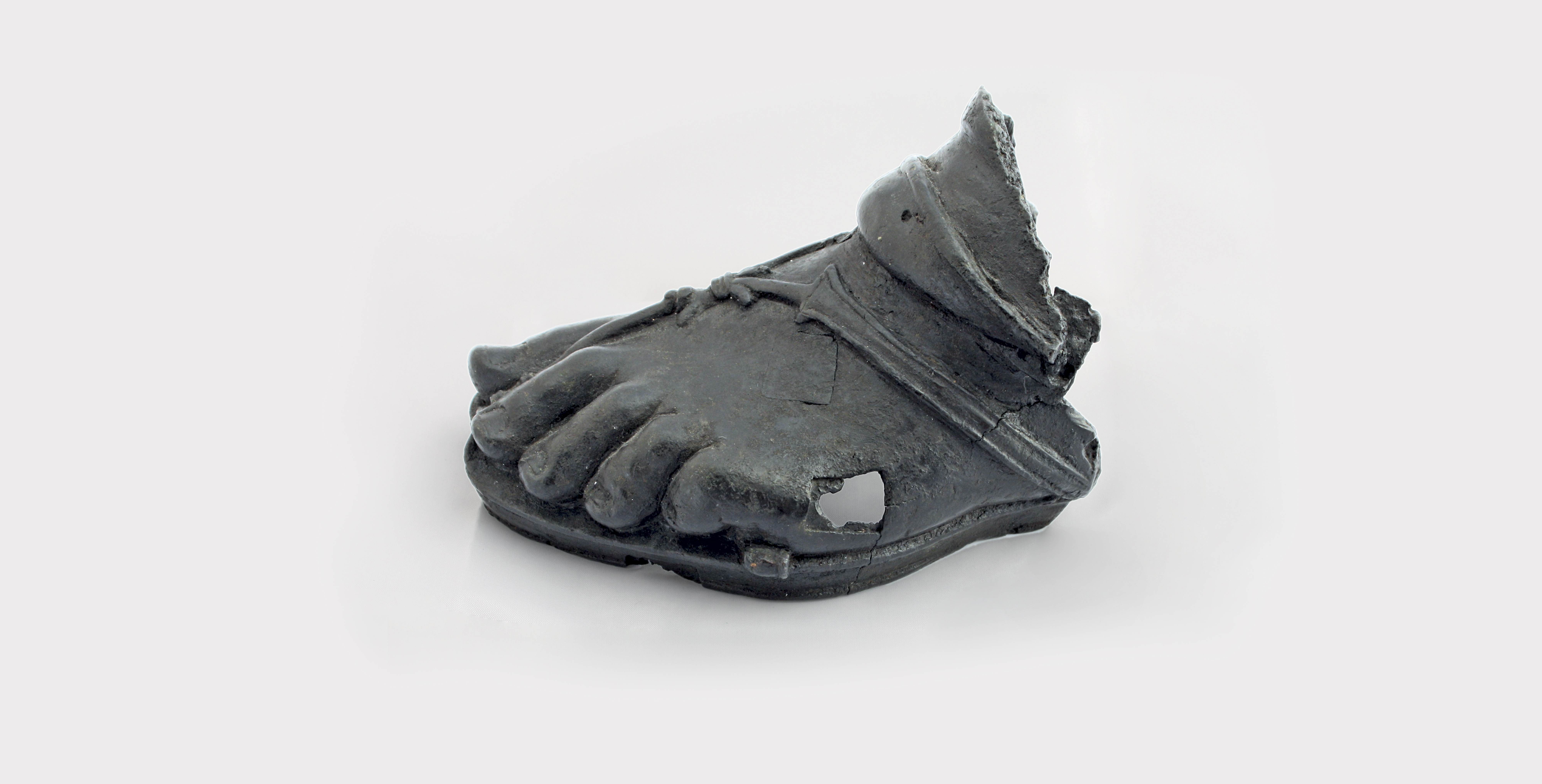 Brindisi, Museo Archeologico Francesco RibezzoThe large opening over the toes and the presence of the lingula on the back make this footwear resemble the crepida on the enormous bronze foot of Brindisi, displayed in the “Worn by the Gods” exhibition.