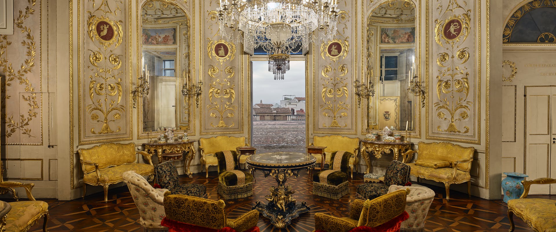 The Royal Apartments occupy the South wing of Pitti Palace on the first floor. At the beginning of the 18th century the private apartments were occupied by Grand Prince of Tuscany Ferdinando de’ Medici; then, between the end of the 18th century and the first half of the 19th century, they were renovated and altered by the Grand Dukes of Habsburg-Lorraine. From 1865 the sovereigns of the Royal House of Savoy (hence the name) lived there during the short period in which Florence was the capital of Italy, leaving the distinctive stamp of their taste on the general appearance of the Royal Apartments, which is still visible today. Sumptuously furnished with pieces from the collections of the Medici, Habsburg-Lorraine and House of Savoy, the 14 rooms bear traces of the changing dynasties. The tables with semi-precious stone inlays, consoles and mirrors, furnishings and silk tapestries on the walls are in a striking mixture of styles, reflecting the daily life and taste of the different periods and inhabitants.