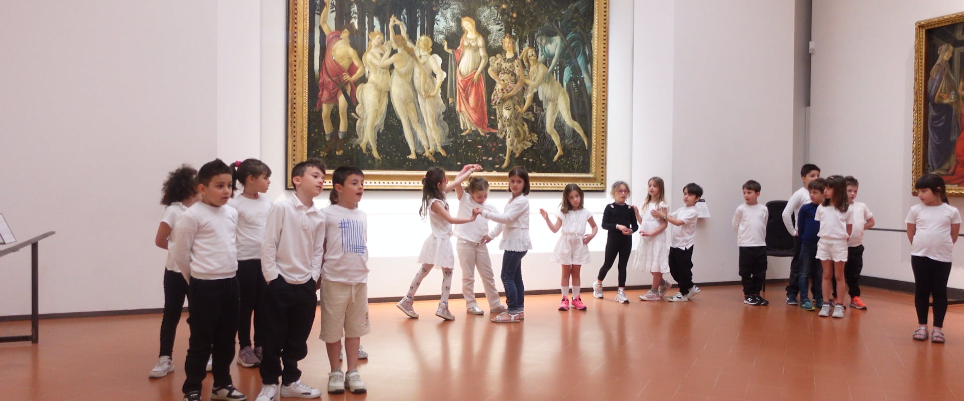 Spettacolo dei bambini della scuola primaria davanti alla Primavera di Botticelli