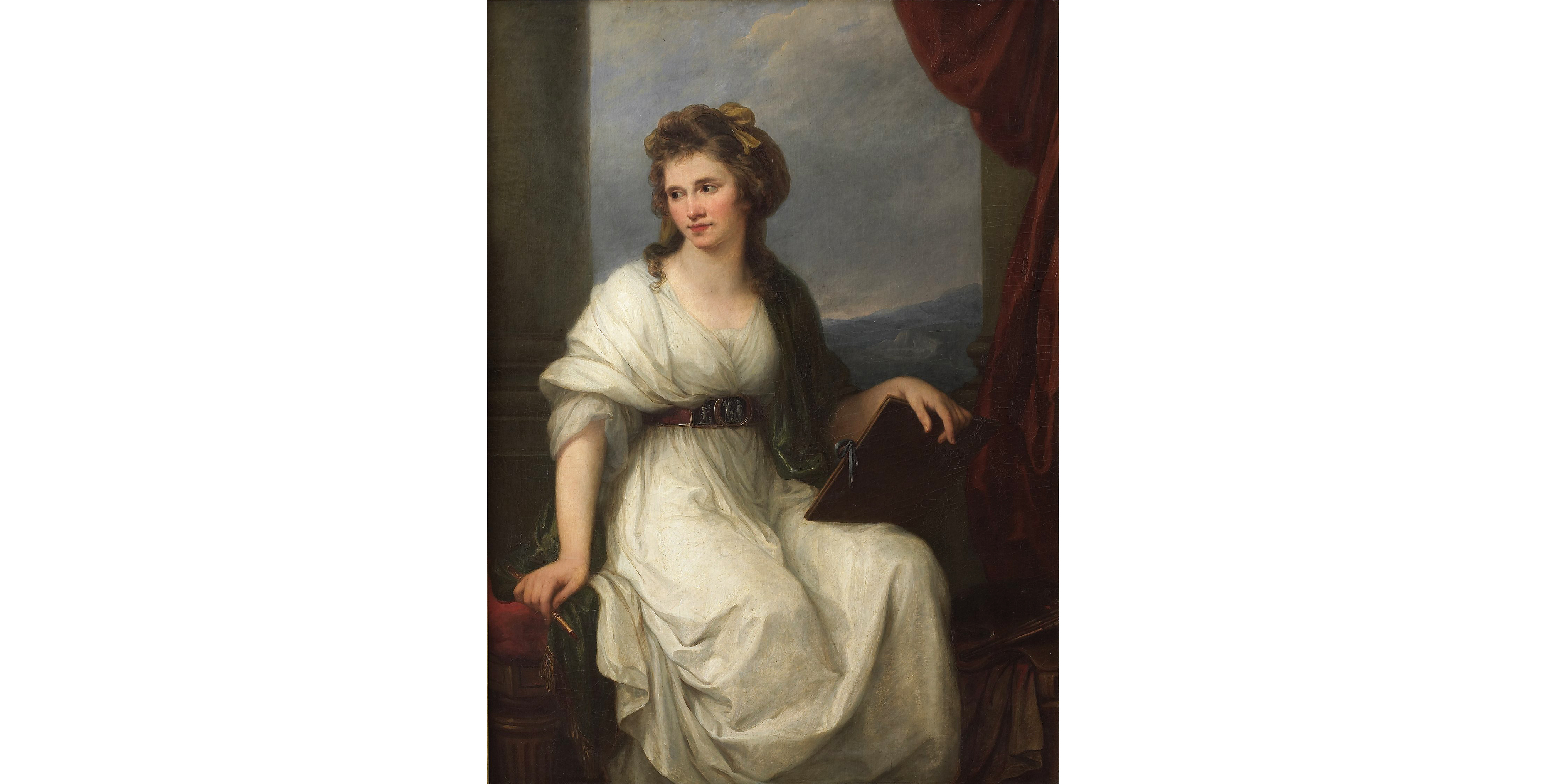 Firmato e datato: Angelica Kauffmann Pinx Romae 1787Formatasi col padre, ritrattista e decoratore di chiese, Angelika Kauffmann ricevette una raffinata educazione letteraria e musicale, alimentata da frequenti viaggi, che perfezionarono il suo talento e la portarono ad affermarsi fin dalla giovane età a livello internazionale. Tanti i riconoscimenti che conquistò: venne eletta nell’Accademia del disegno di Firenze, nell’Accademia Clementina di Bologna, nell’Accademia di San Luca a Roma, e fu tra i fondatori, a Londra, della Royal Academy, prima donna artista assieme a Maria Moser. Fu intima amica di Joshua Reynolds, di Johann Wolfgang Goethe, di Johann Joachim Winckelmann, e a Roma, dove si stabilì a partire dal 1782, fu l’anima di un salotto frequentato da tutti gli intellettuali dell’alta società, assieme al marito, il pittore veneziano Antonio Zucchi.