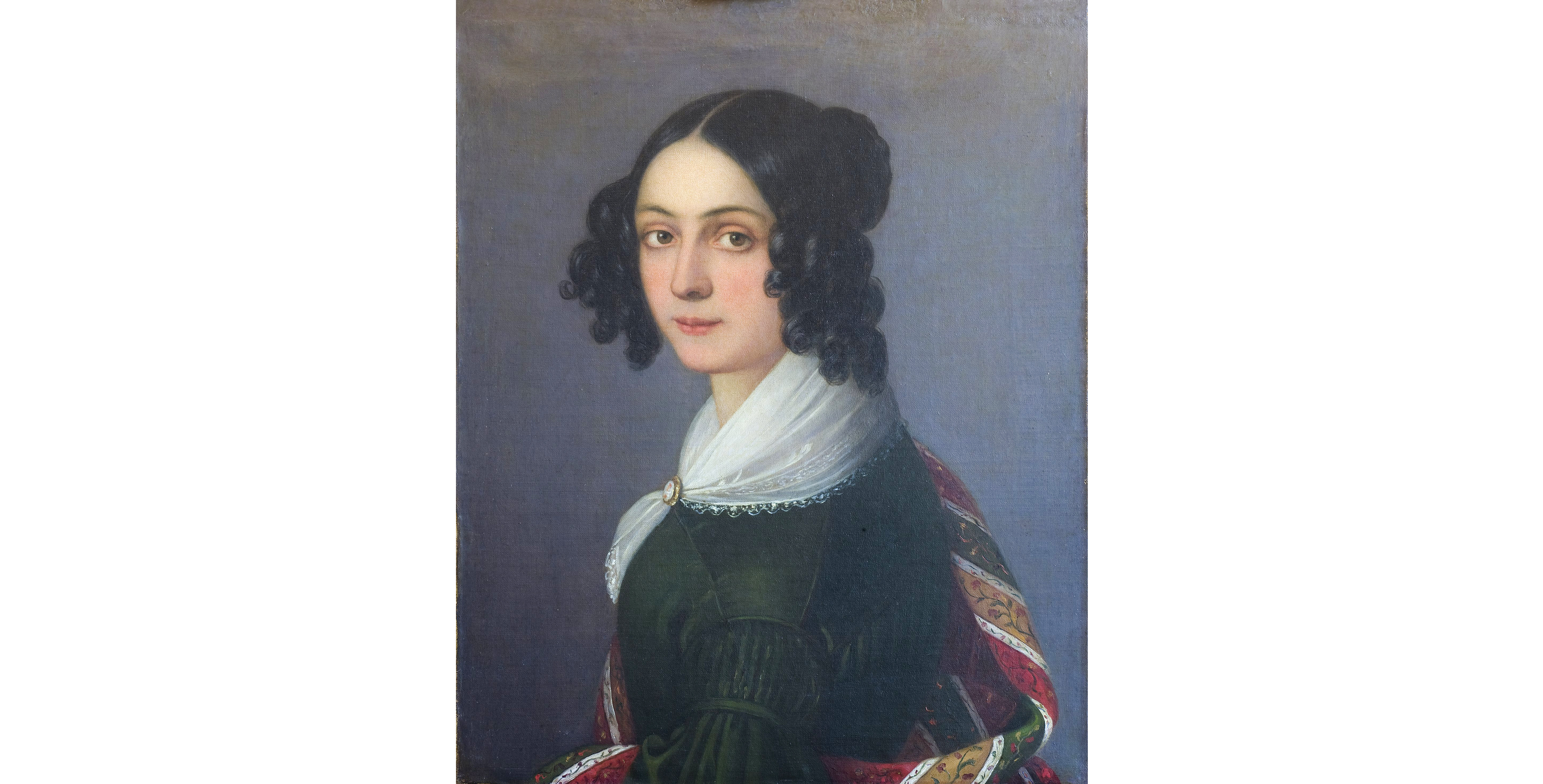Inventario 1890 n. 2096Il volto ovale dall’incarnato di porcellana, incorniciato dalla pettinatura in voga, divisa in due ciocche che ricadono lateralmente in morbidi boccoli: sono queste le caratteristiche che tratteggiano l’immagine della talentuosa pittrice Elisa Counis, figlia del pittore ginevrino Salomon-Guillame Counis.