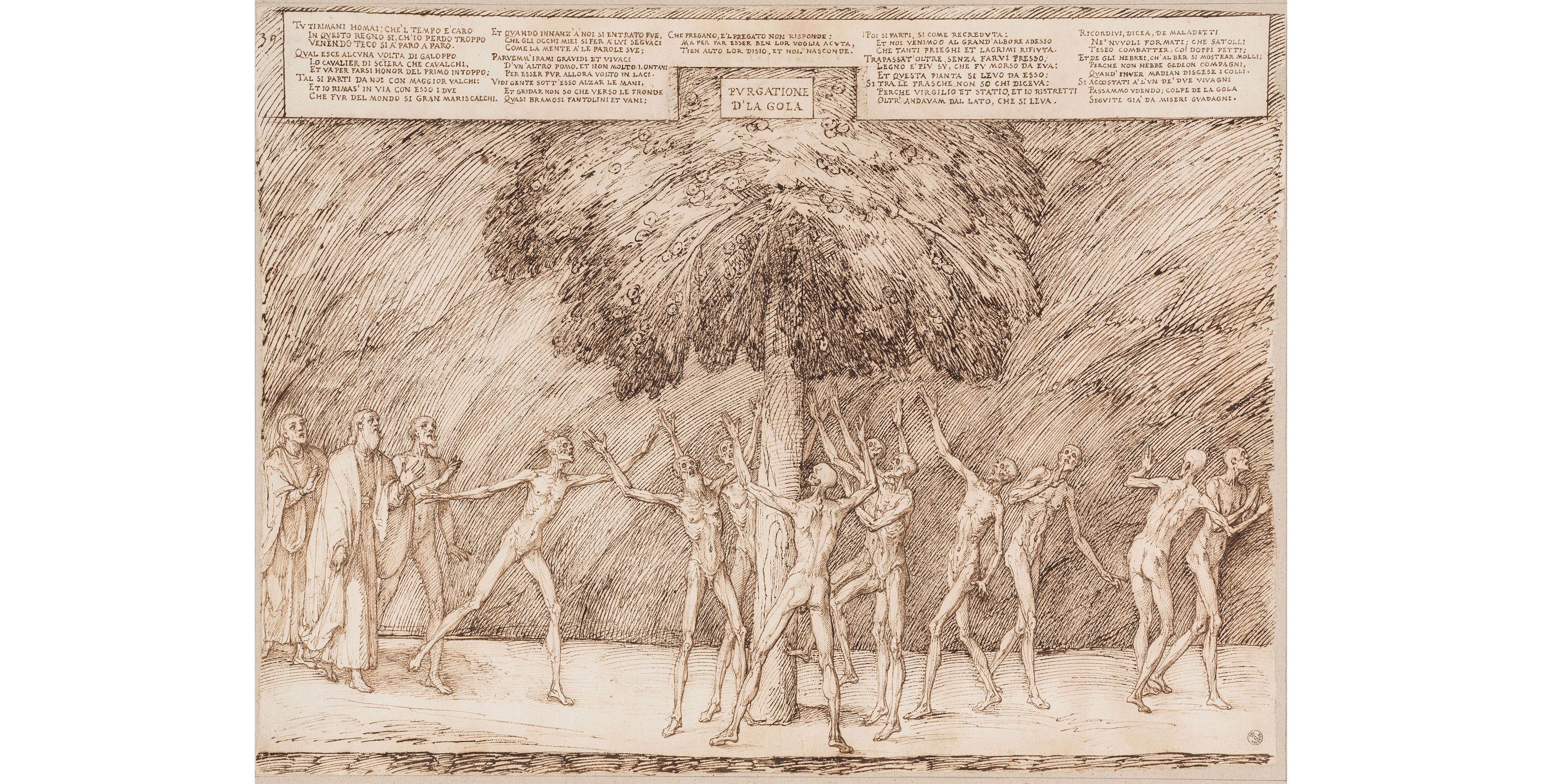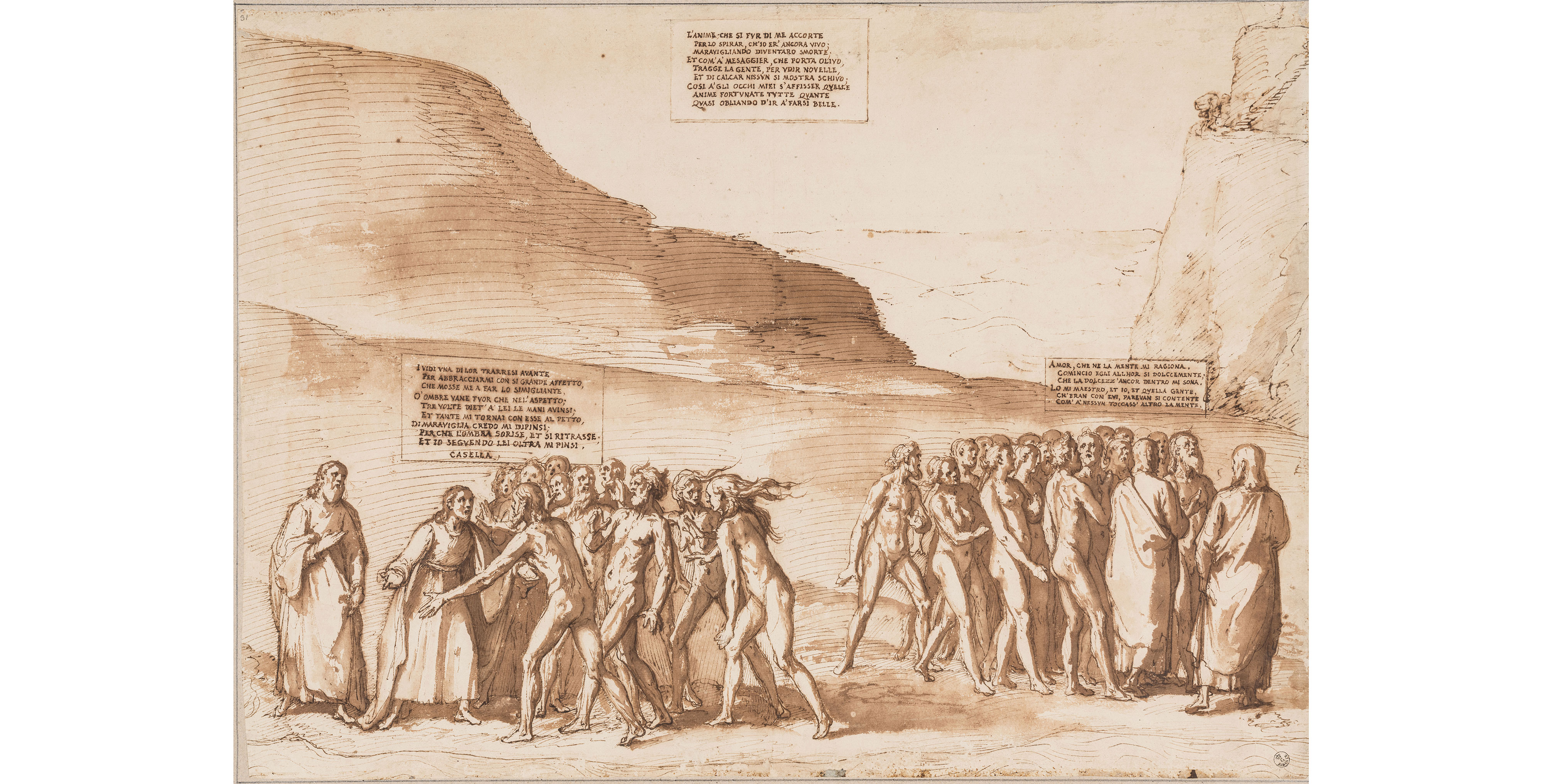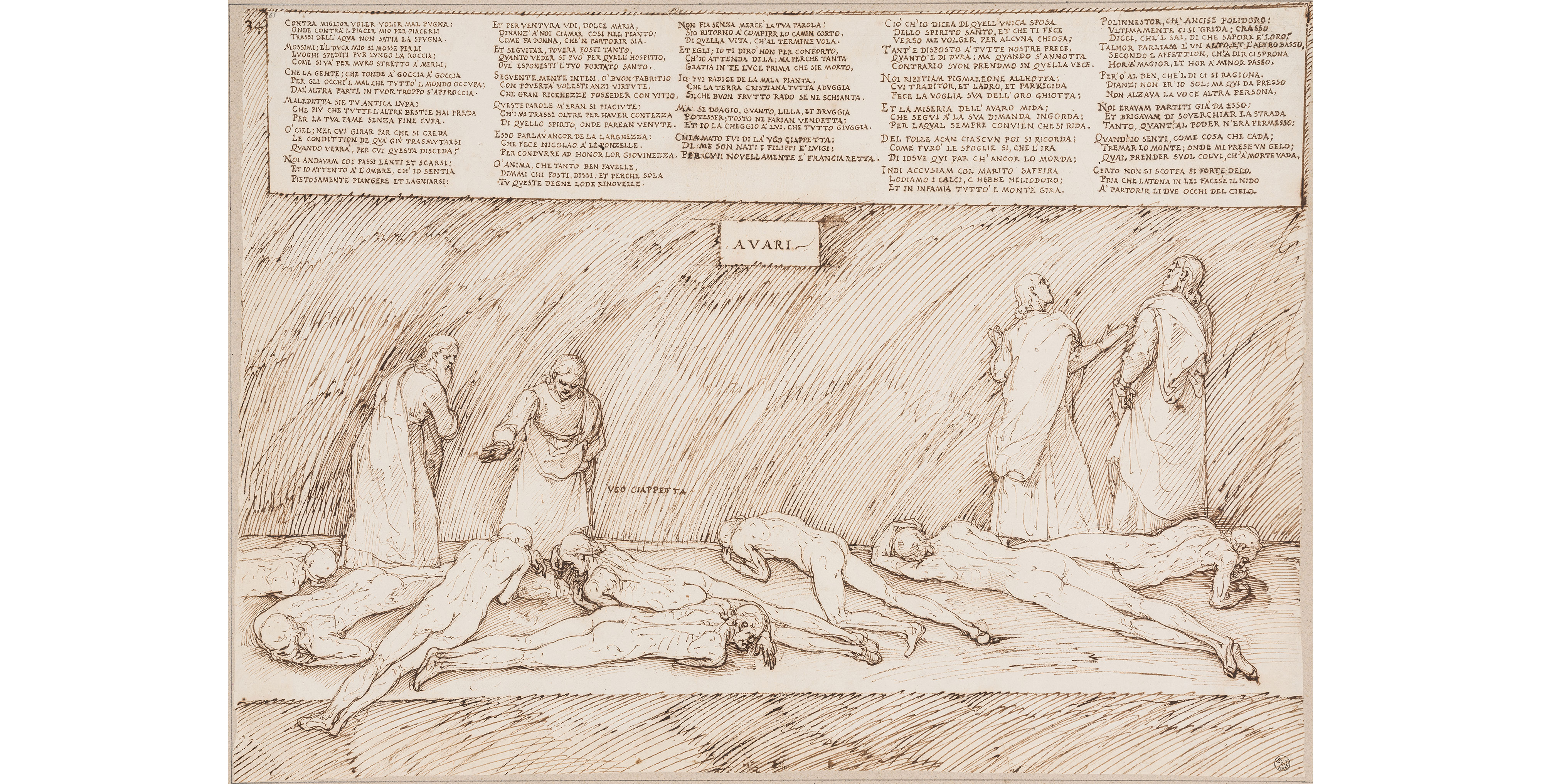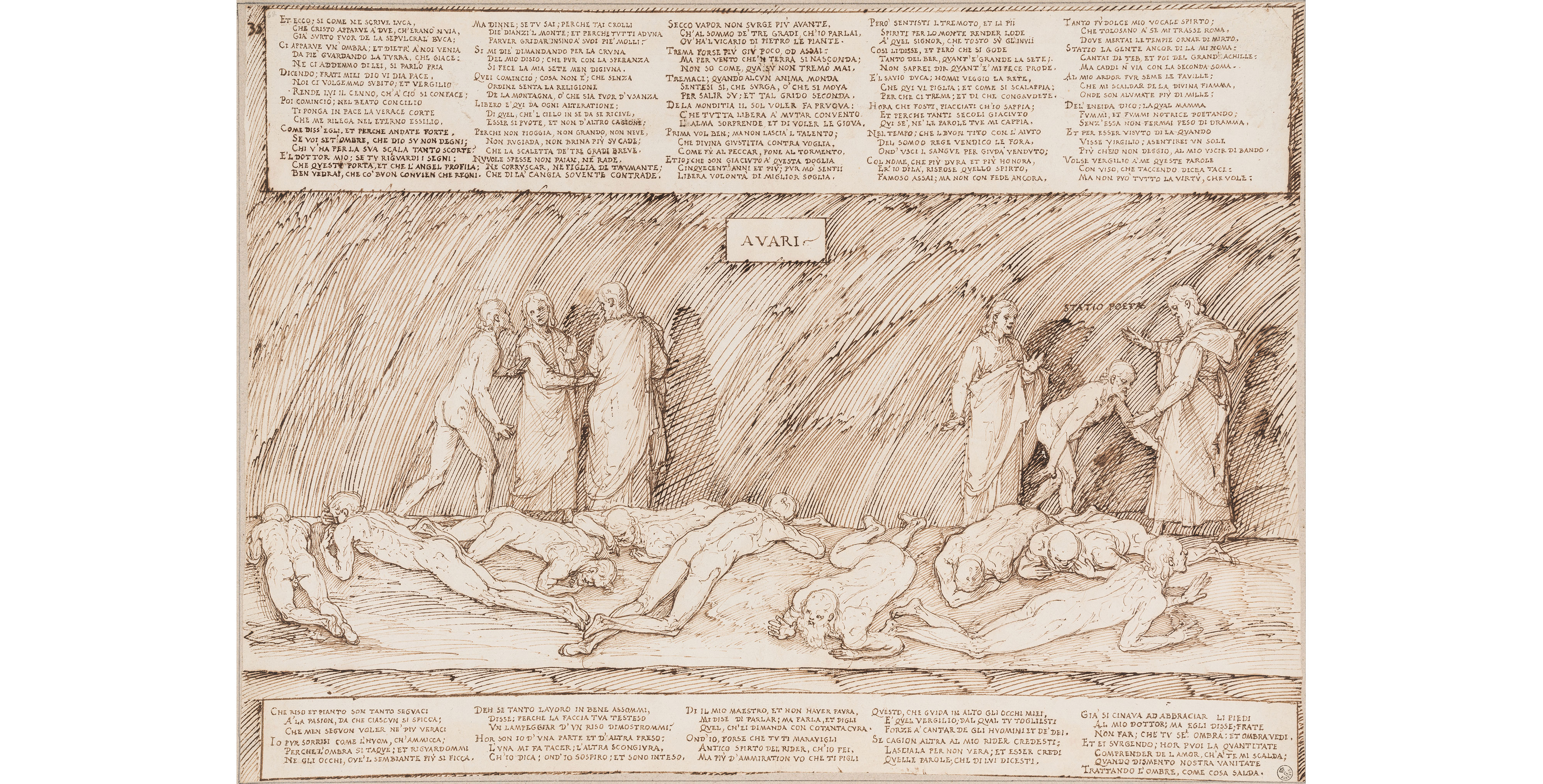 Il Purgatorio è senz’altro la cantica della Commedia su cui Federico Zuccari ha avuto occasione di riflettere più a lungo, come dimostra non solo il considerevole numero di illustrazioni dedicate ai trentaquattro canti corrispondenti, ma anche la quantità di pentimenti e di rifacimenti che hanno interessato in varia misura i disegni.