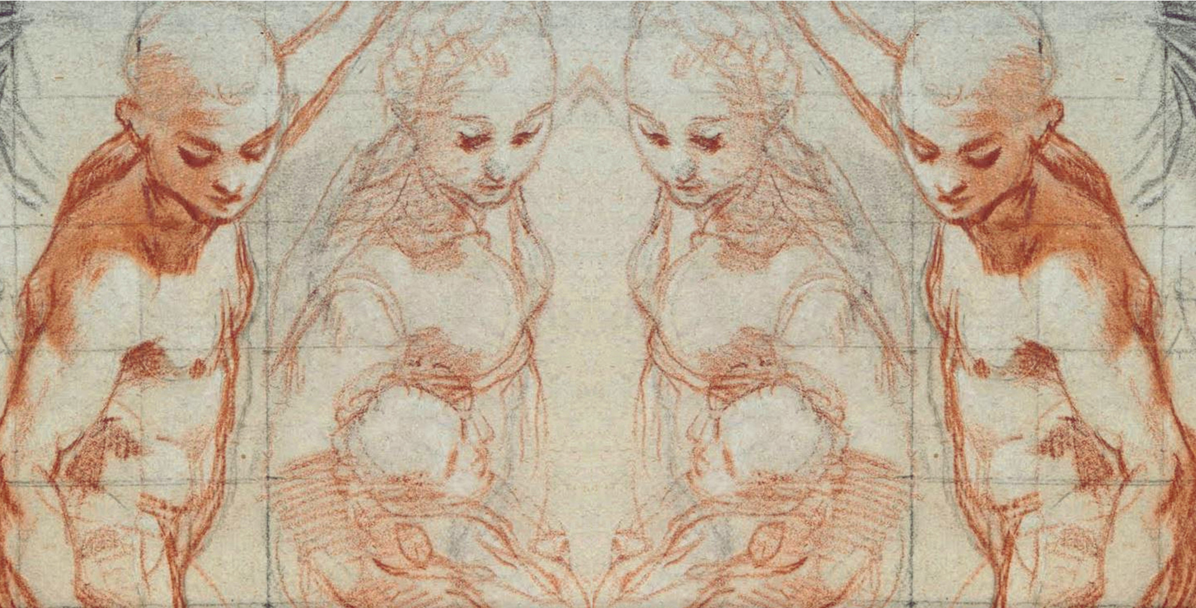 Tale considerazione viene avvalorata dalla mancanza, attorno alla figura muliebre, sia di quadrettatura che di segni di calco, presenti invece nel personaggio di sinistra. Evidentemente, se quest’ultimo risulta essere il modello, quello di destra è da considerarsi come una prova che il pittore realizza velocemente con il solo fine di comprendere possibili sviluppi successivi.
