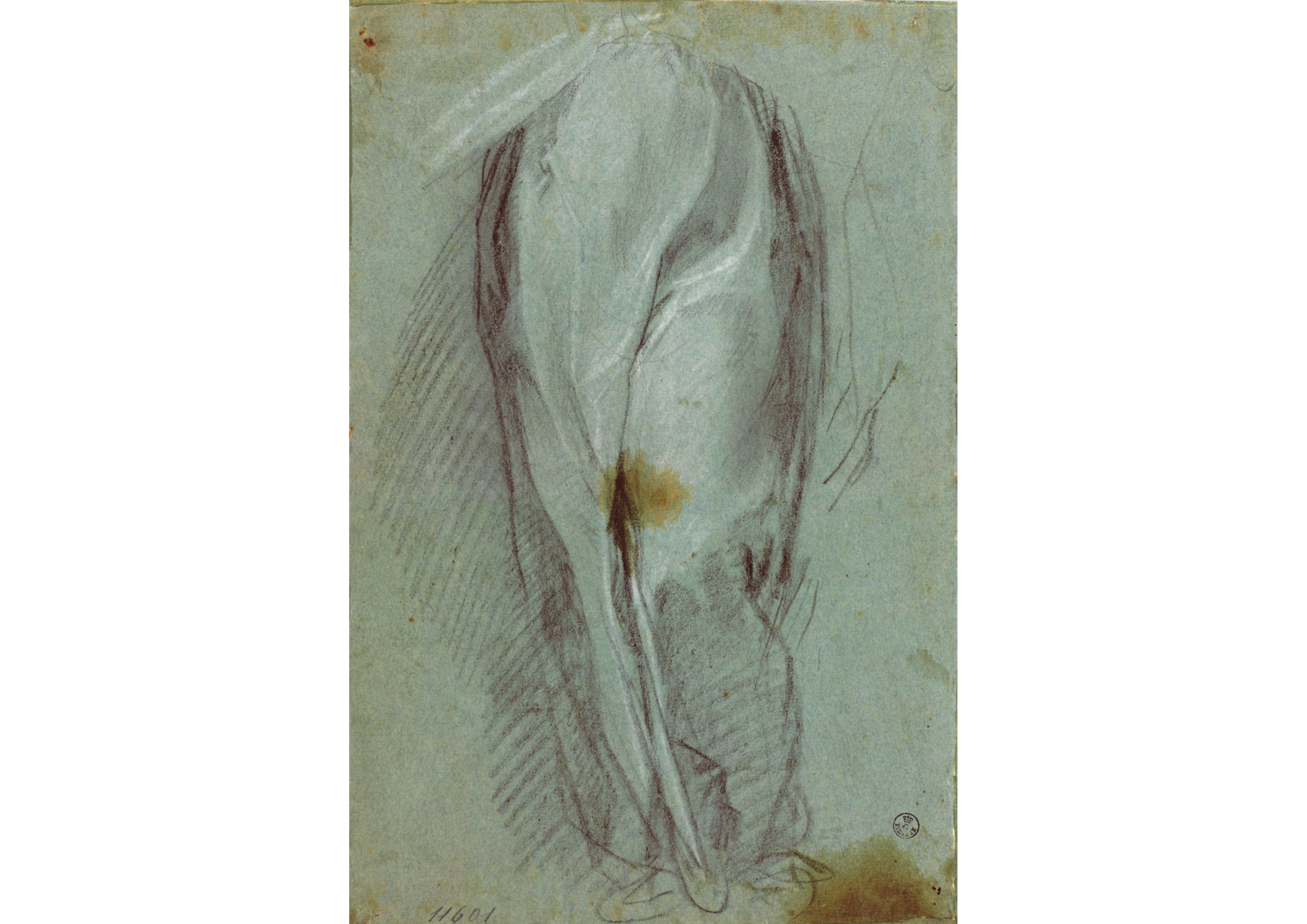 - 17/34Figura maschile ammantata e studi della gamba sinistra; studi di panneggio
