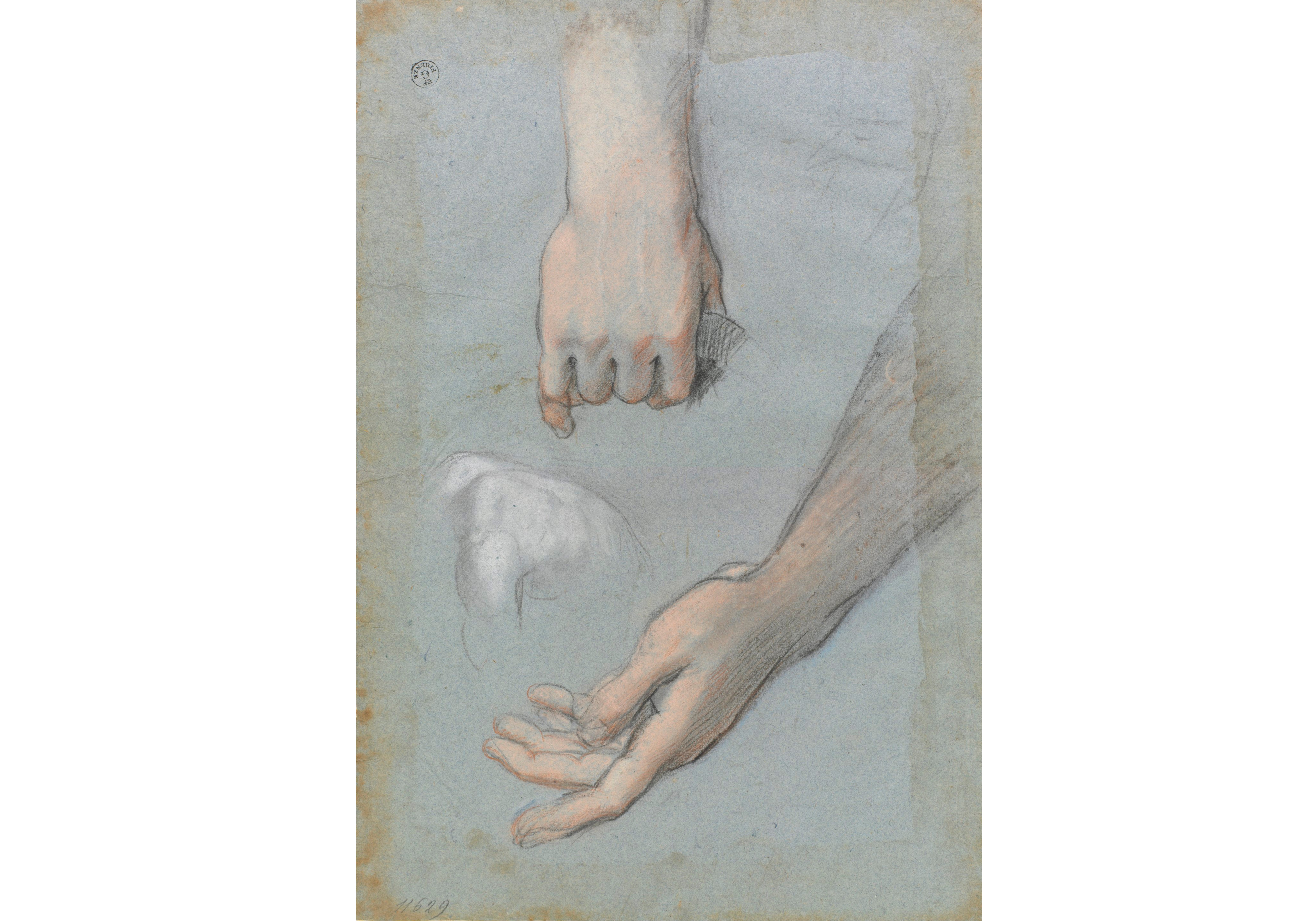Inv. 11629 FAlla restituzione sorprendentemente realistica dell’epidermide della mano concorrono sia l’uso sapiente del pastello, sia la carta cerulea, che svolge la funzione di tono intermedio.