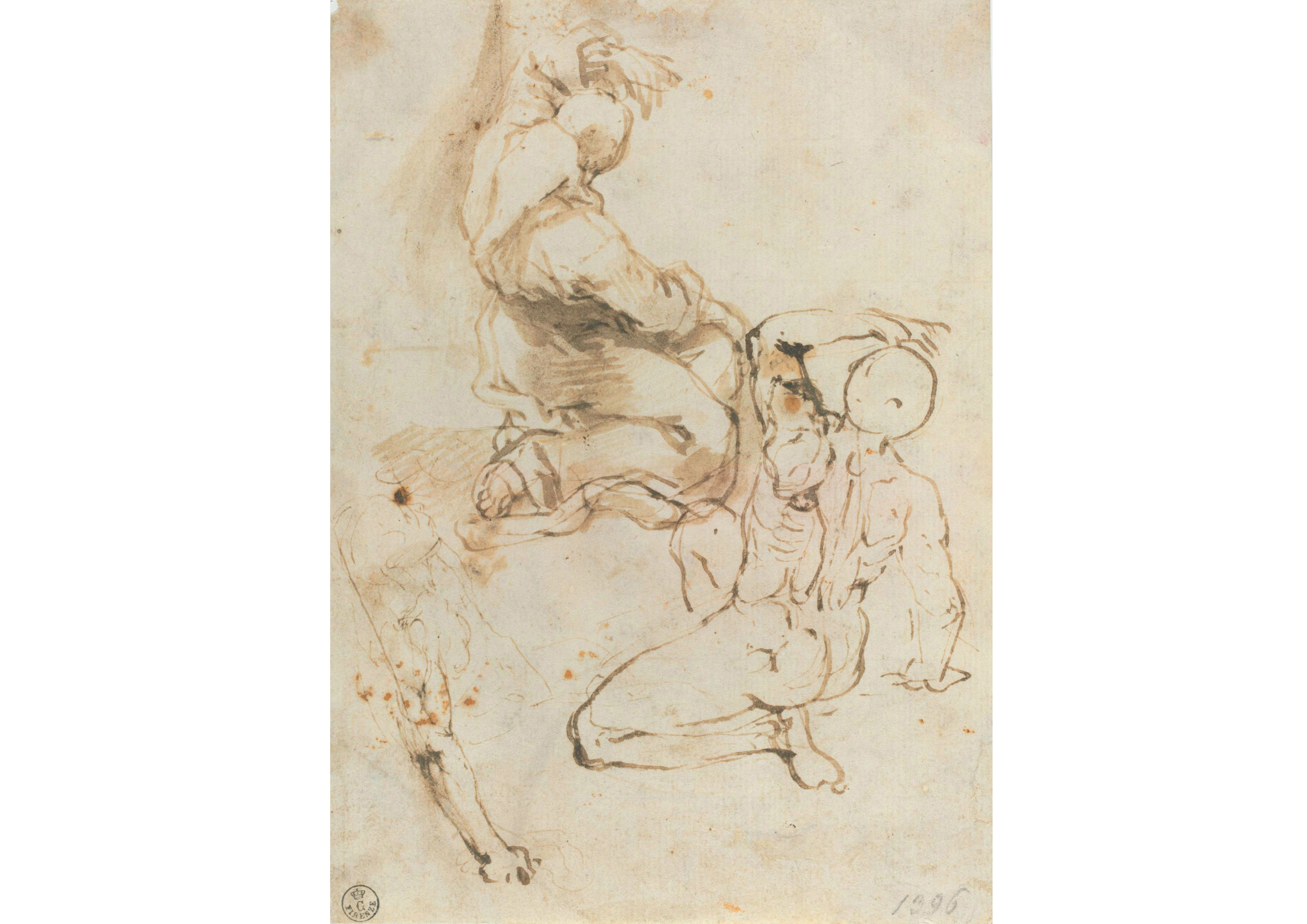 - 22/34Tre studi di figura sorretta da un’altra e schizzo di figura