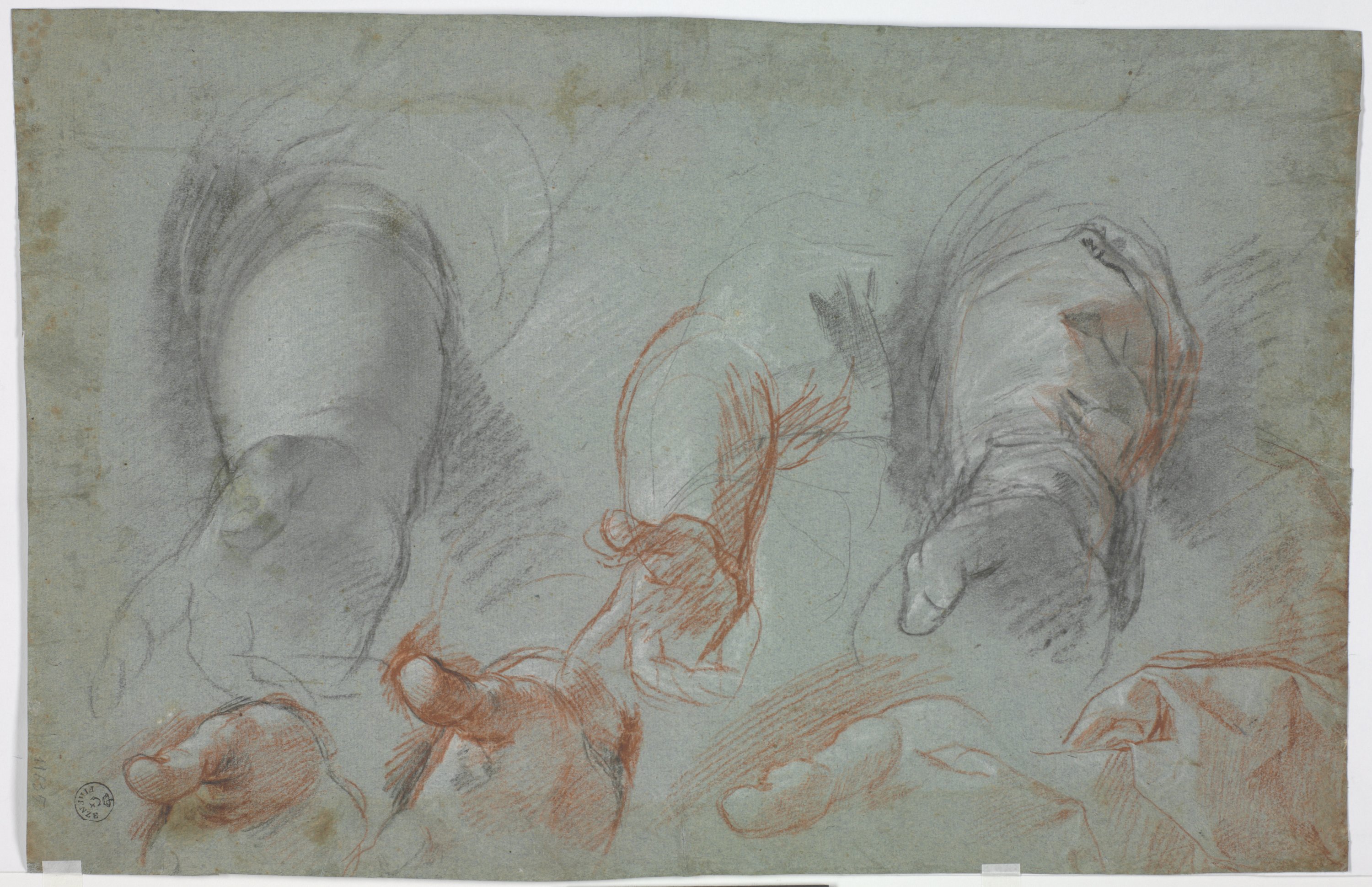 Inv. 11363 F rectoParticolare attenzione viene riservata alla progressiva messa a punto dei panneggi per il personaggio di Cristo, nonché alla resa dettagliata di alcuni particolari, analizzati separatamente, come il braccio e la gamba.