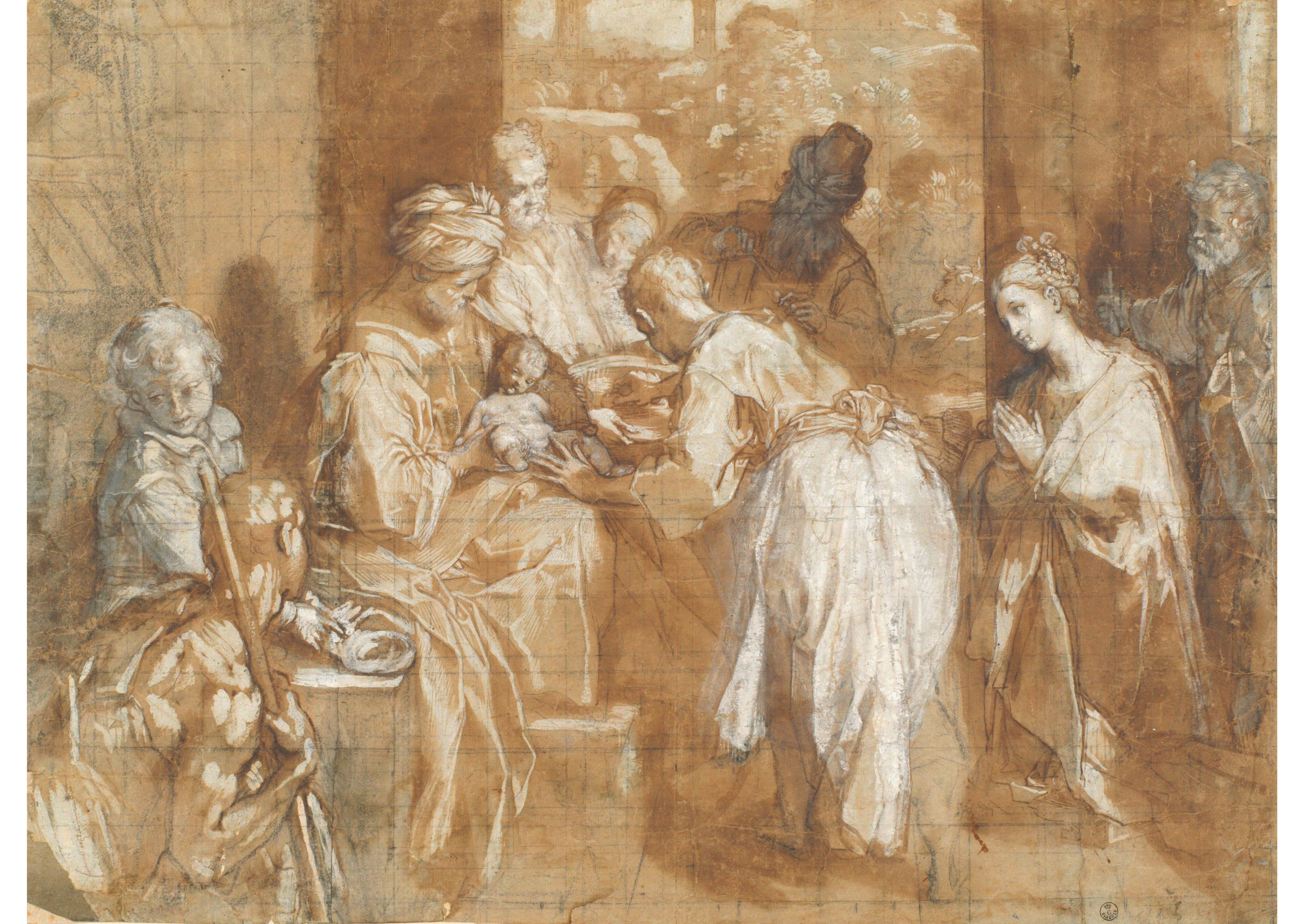 Inv. 818 EI “cartoncini per il chiaroscuro”, tipologia grafica introdotta da Barocci, rispondono all’esigenza di studiare nel dettaglio gli effetti luminisitici. Nello studio per la 'Circoncisione' - dipinto terminato nel 1590 e ora conservato al Musée du Louvre – l'artista mette a punto l'assetto compositivo della scena, soffermandosi sull'esame dei contrasti chiaroscurali.