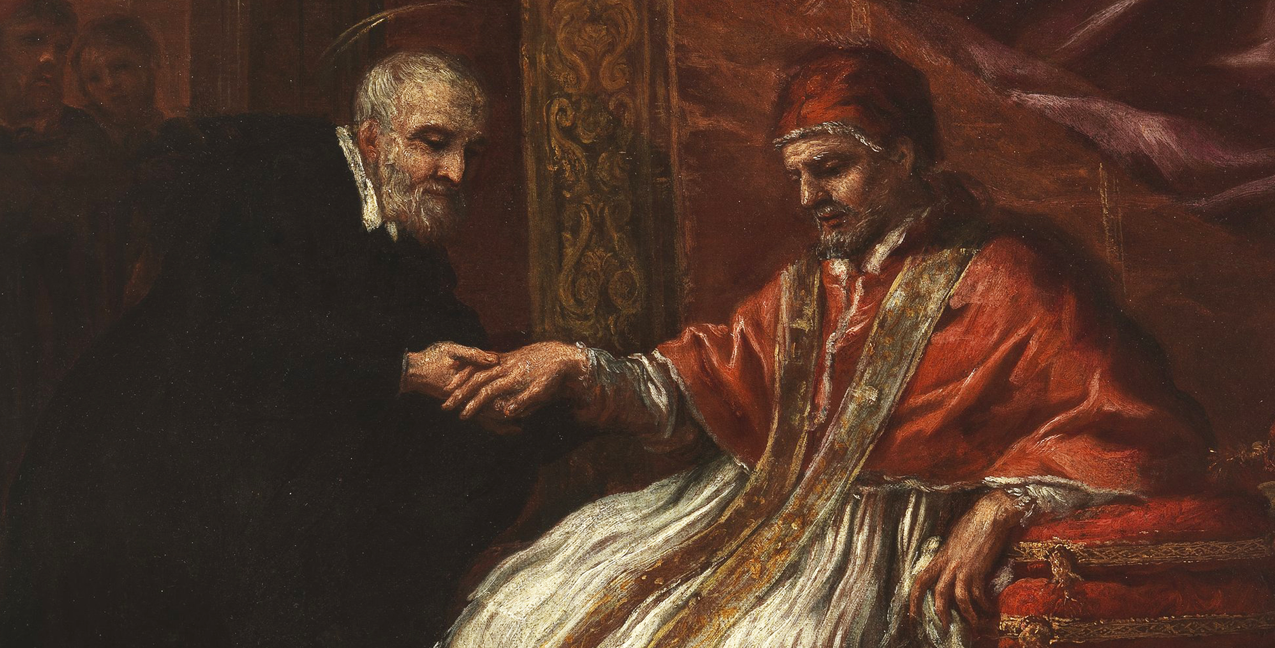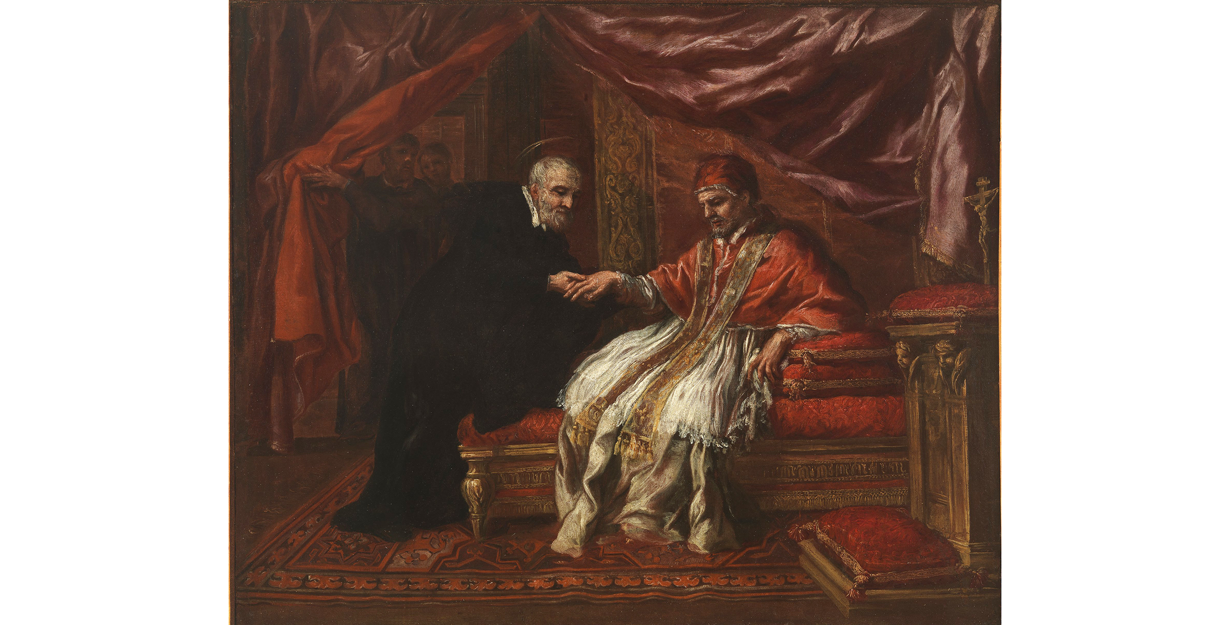 La scena qui rappresentata non si esaurisce tuttavia nel miracolo di San Filippo Neri, peraltro neppure il primo da lui compiuto nel corso della sua missione evangelizzatrice della tribolata Roma cinquecentesca. Pietro da Cortona pone infatti l’accento sull’intimità del momento e sulla fiducia con cui Clemente VIII affida la mano da risanare a “Pippo Buono”, un gesto che racchiude un legame di lunga data, consolidatosi proprio nel triennio 1592-1595, tra l’elezione del pontefice e la morte del Santo, entro il quale si colloca anche l’episodio della guarigione miracolosa dalla gotta. La franchezza d’eloquio tra i due è infatti reale (ai consigli di San Filippo Neri si attribuisce la riconciliazione del papa con Enrico IV di Francia) e l’intensa partecipazione con cui viene restituita dal pittore riflette a sua volta la vicinanza del Berrettini alla Congregazione per la quale lavorò a più riprese, realizzando anche il capolavoro della volta della Chiesa Nuova. Una sensibilità filo-oratoriana tra l’altro condivisa da vari esponenti della famiglia dei Medici, tra i quali Alessandro Ottaviano – seguace diretto del Santo e uomo chiave di Clemente VIII nella politica di sostegno ai Filippini – e il Cardinal Leopoldo, lui stesso frequentatore della Chiesa Nuova. Di provenienza ignota e di datazione incerta (oscillante tra il 1636, in analogia con i primi lavori romani per la Congregazione, e gli anni fiorentini 1640-1642), il dipinto mostra rapporti con la cultura toscana coeva sia per l’accurata descrizione dell’ambiente sia per il senso della narrazione che si estende sullo sfondo al particolare aneddotico dei due confratelli che assistono alla scena scostando la tenda, forse anche in rimando a quel modello di vita comunitario considerato da sempre la maggiore eredità del Santo.