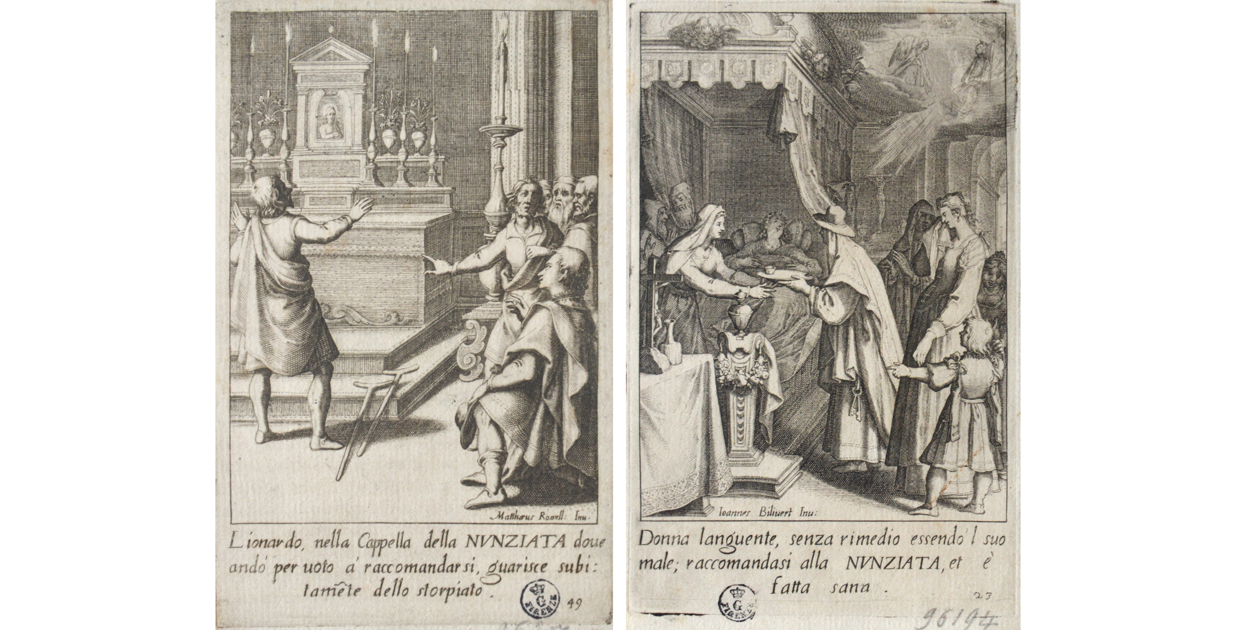 Illustrazioni dal volume di Giovanni Angelo Lottini, Scelta d’alcuni miracoli e grazie della Santissima Nunziata di Firenze