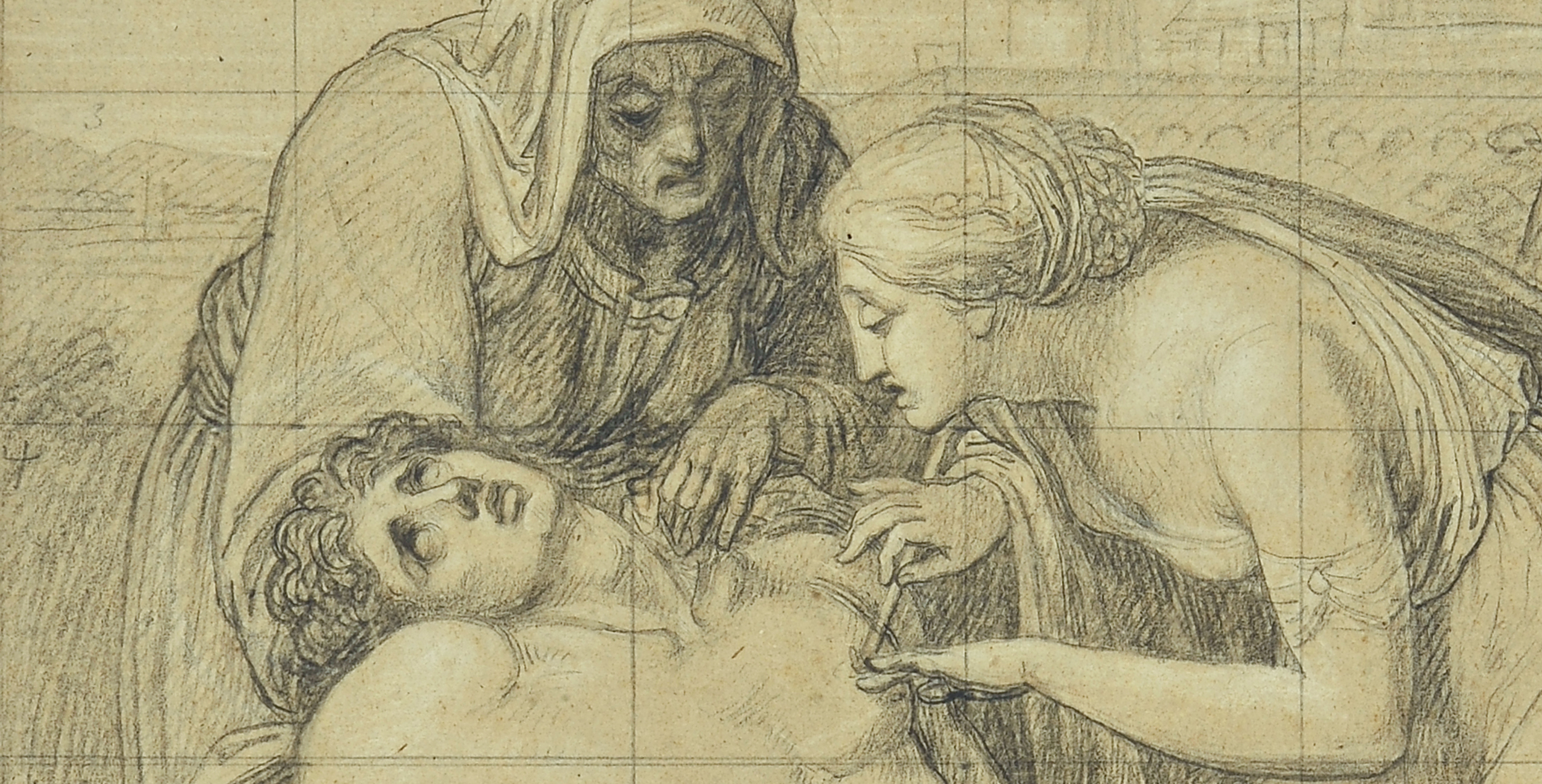 François-Xavier Fabre, autore del disegno, fu il migliore allievo di David a Parigi e visse a Firenze per oltre trent’anni (1793-1824). Qui incontrò i due personaggi più famosi della città: il celebre poeta tragico Vittorio Alfieri e la sua compagna Louise di Stolberg, contessa di Albany, "regina" di un brillante salotto letterario e artistico che permise a Fabre di inserirsi rapidamente negli ambienti degli stranieri a Firenze fino a diventarne il pittore preferito. Pittore di storia, paesaggista e prezioso ritrattista della società cosmopolita europea (suoi i popolari ritratti di Alfieri e Foscolo), Fabre si cimentò anche nei soggetti sacri.