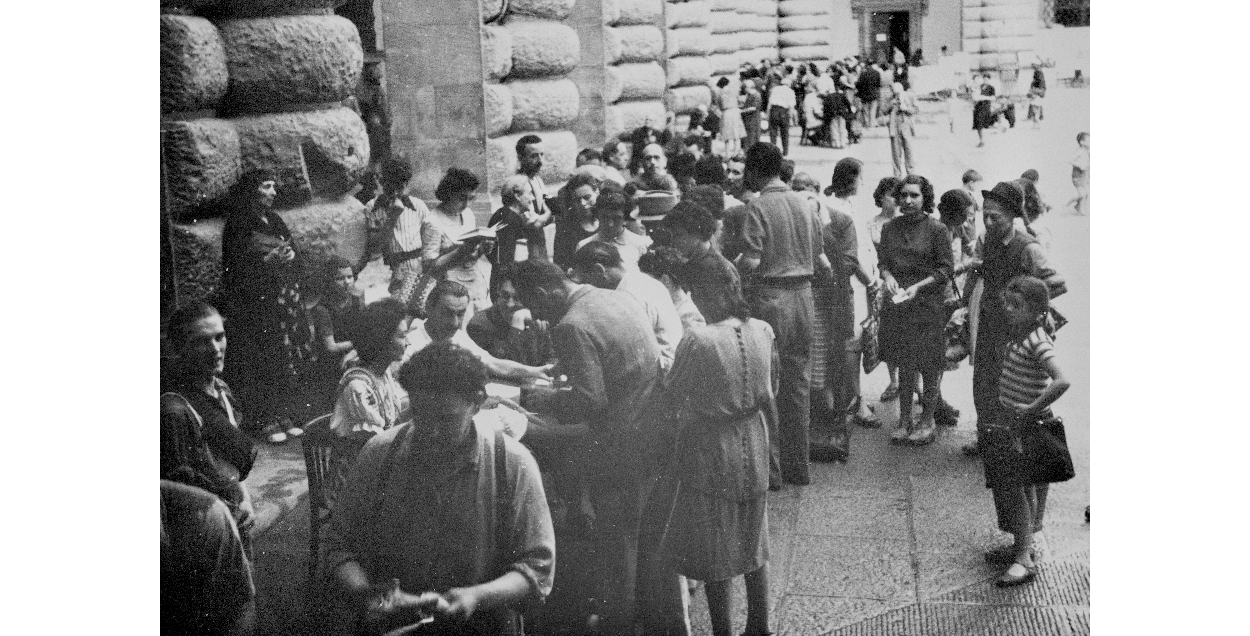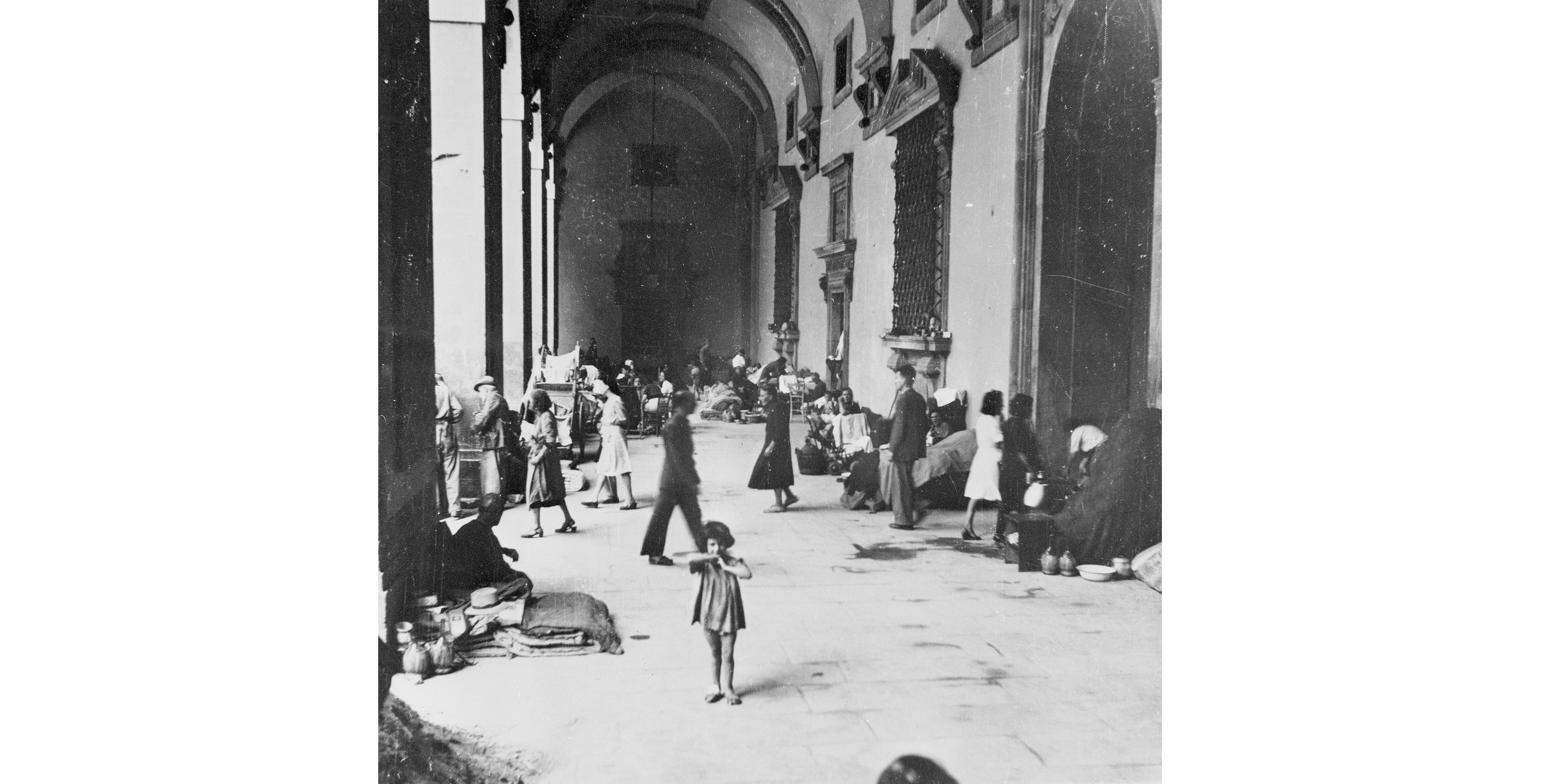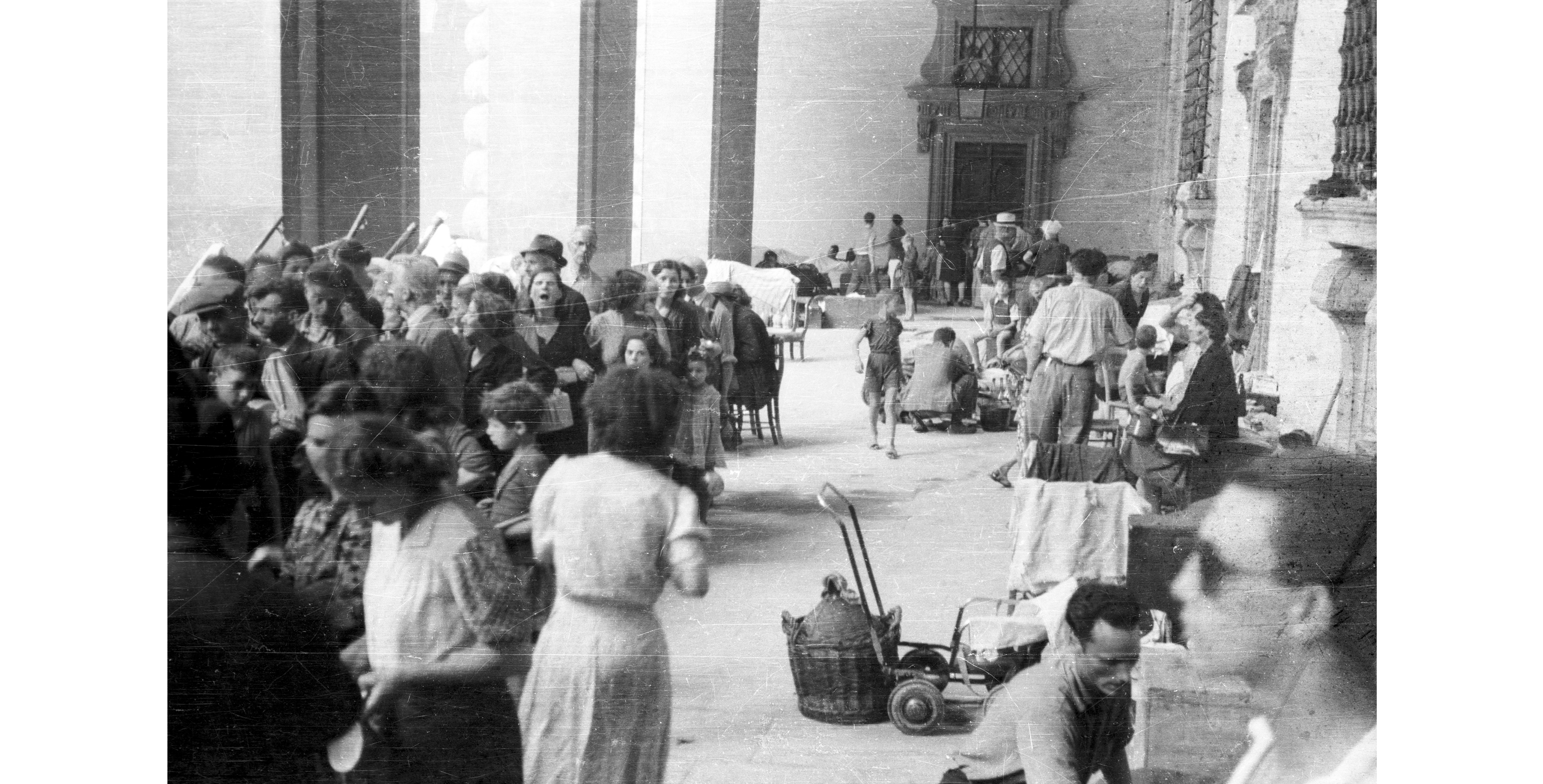 Il soprintendente manda a chiamare alcuni rifugiati, fra le persone che già conosce. Ci riuniamo così nel suo ufficio in una decina, tutti amici o conoscenti; la maggioranza siamo architetti. Decidiamo subito di organizzare qualche cosa. La situazione appare grave; non si sa ancora quanti siamo qui ma all’incirca potremmo essere più di tremila, in maggioranza poveri, senza provviste, smarriti come pecore.
