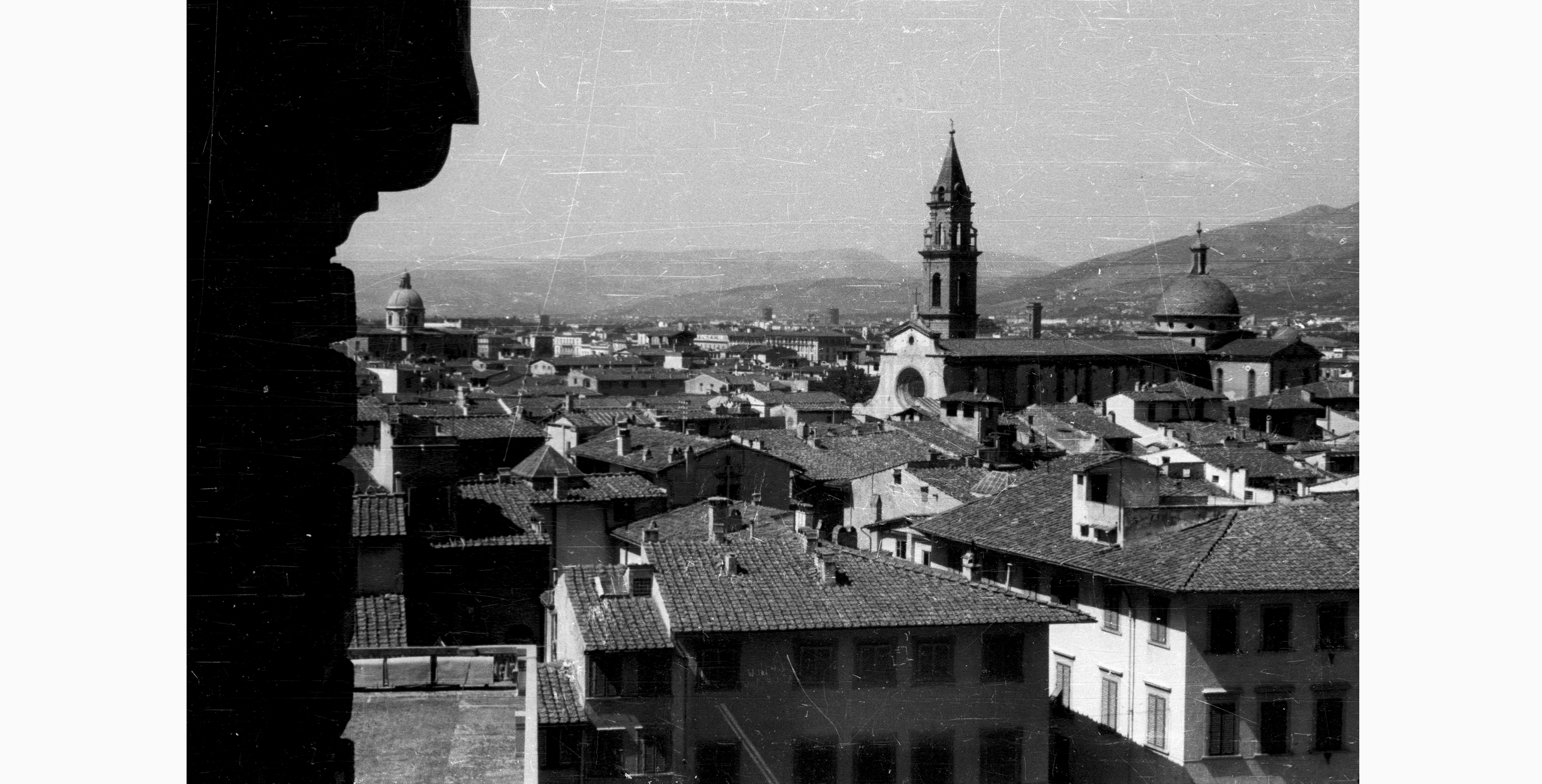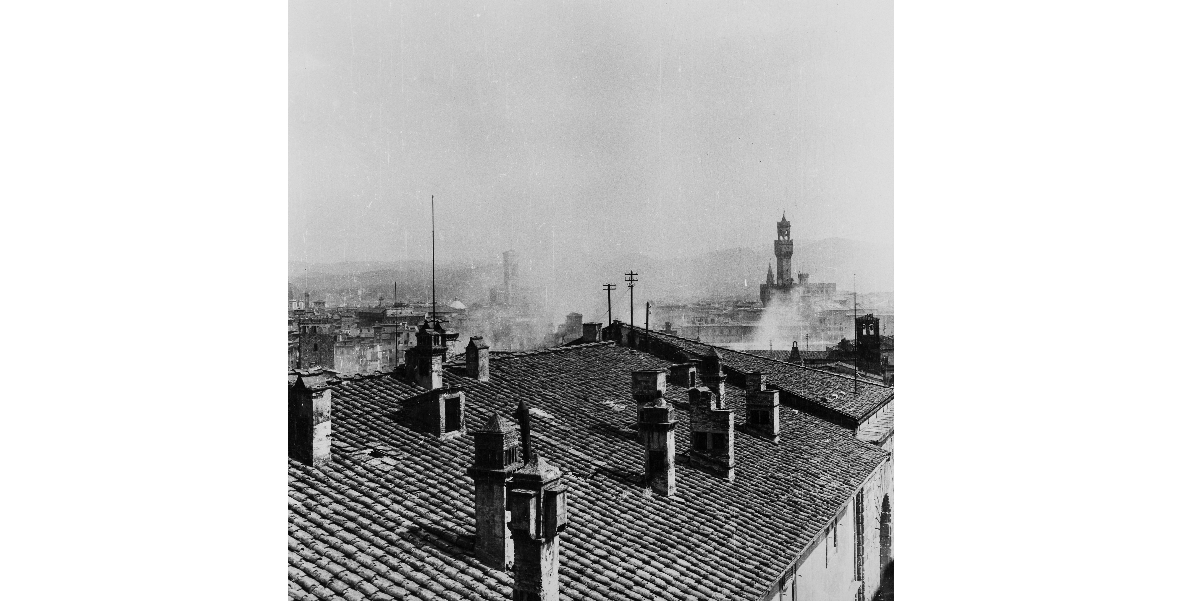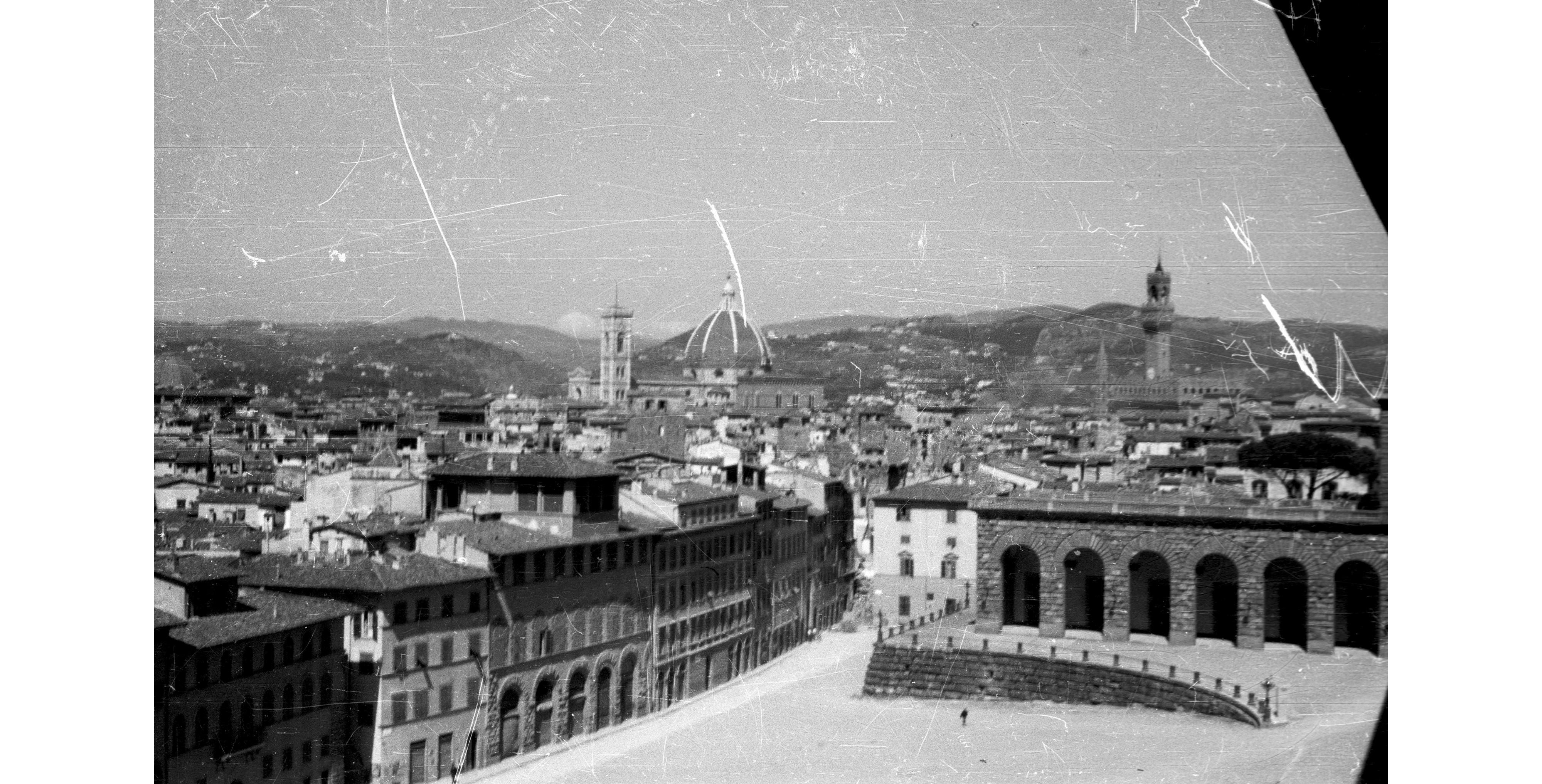 Fotografia: Nello Baroni, Veduta su Firenze dal tetto di Palazzo Pitti, Archivio di Stato di Firenze, Nello Baroni, Negativi, Negativi di fotografie di guerra, 5. Firenze (Palazzo Pitti), agosto 1944, n. 11.