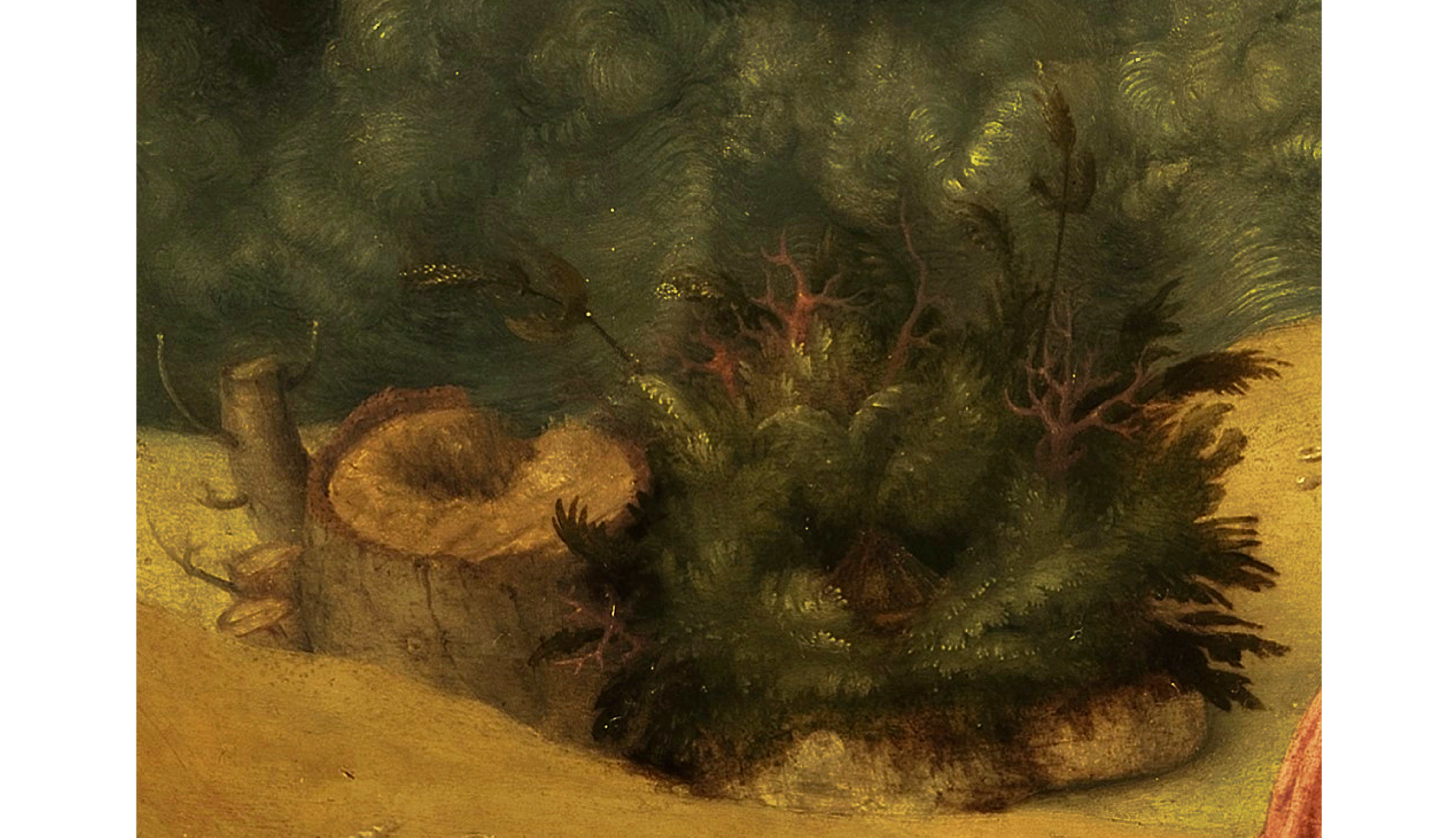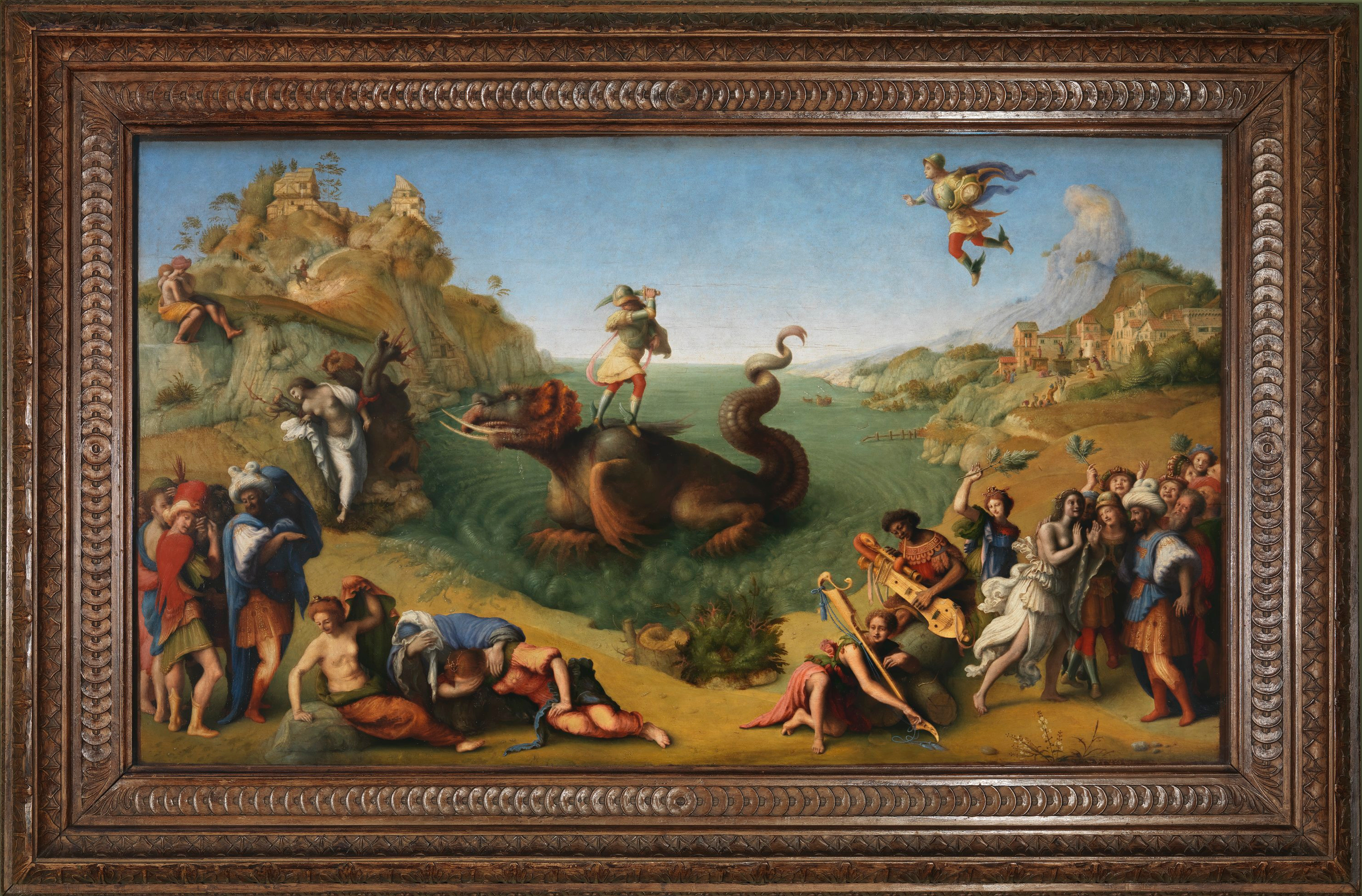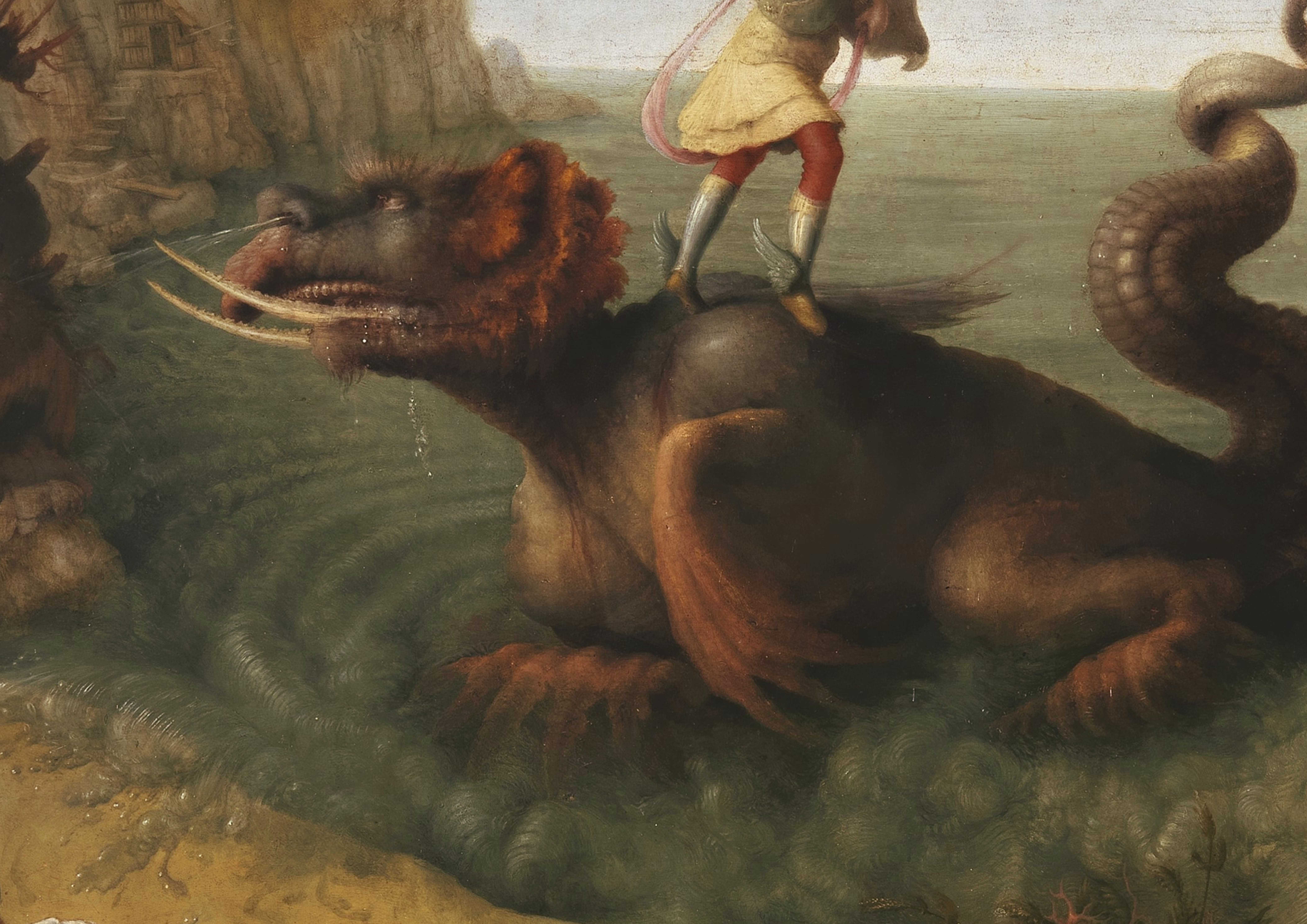 Questo splendido dipinto di Piero di Cosimo (Firenze, 1462 - 1522) fu realizzato tra il 1510 e il 1515 circa. Pur nelle sue ridotte dimensioni (1230x700 mm) dimostra una sorprendente attenzione lenticolare alla resa del dettaglio che vale la pena indagare da vicino con i moderni ausili della tecnologia digitale: una visione privilegiata che sicuramente meraviglierà l'osservatore per l'accuratezza dei raffinatissimi particolari, quasi impercettibili ad occhio nudo.