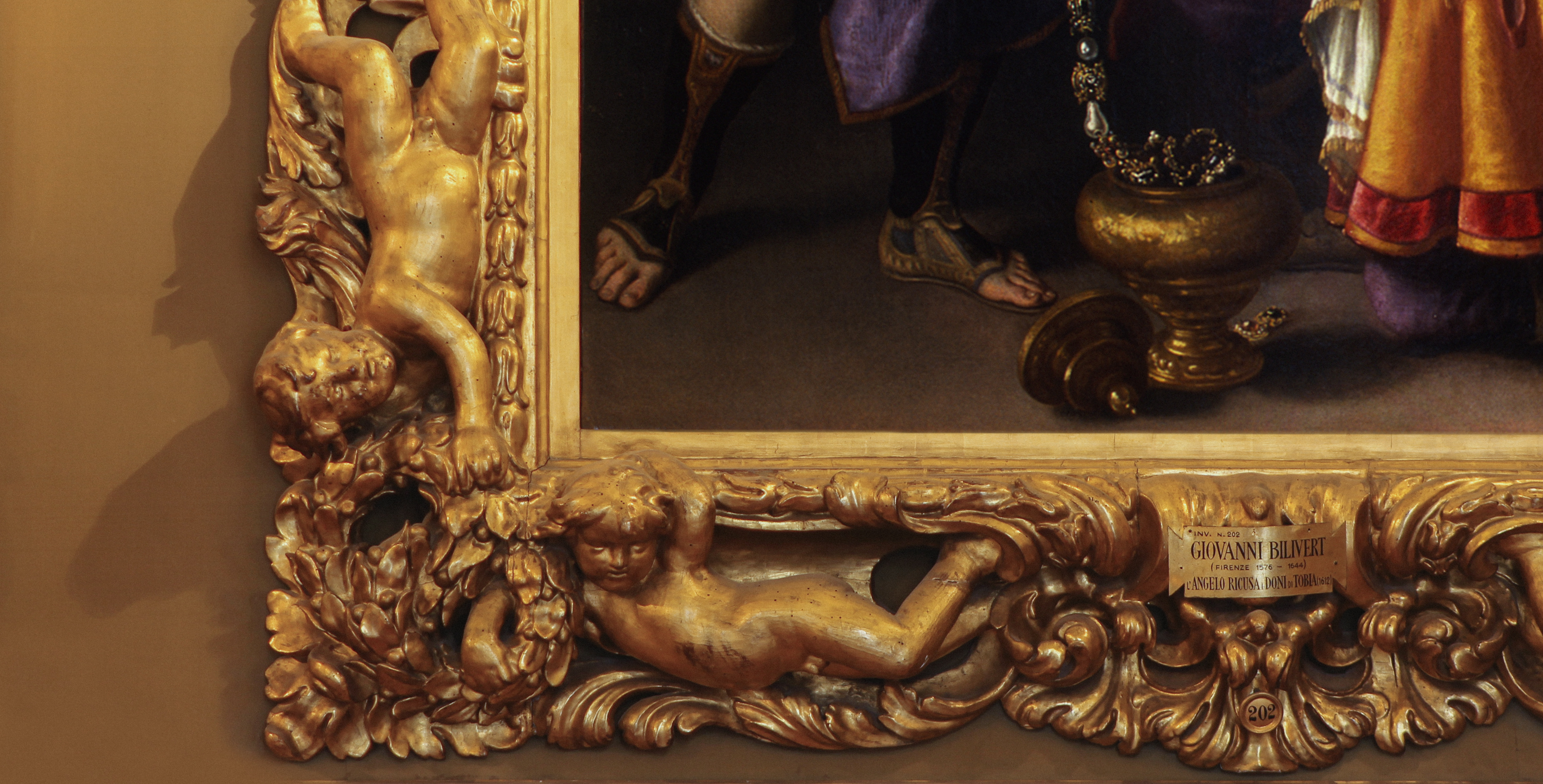 Anche nella fastosa cornice barocca del dipinto sono raffigurati degli angeli. Nel corso del Seicento infatti conobbero una significativa diffusione in ambito mediceo cornici definite “a soggetto”, caratterizzate dalla presenza di elementi iconografici che rimandano chiaramente a quanto rappresentato nel dipinto da loro ospitato.