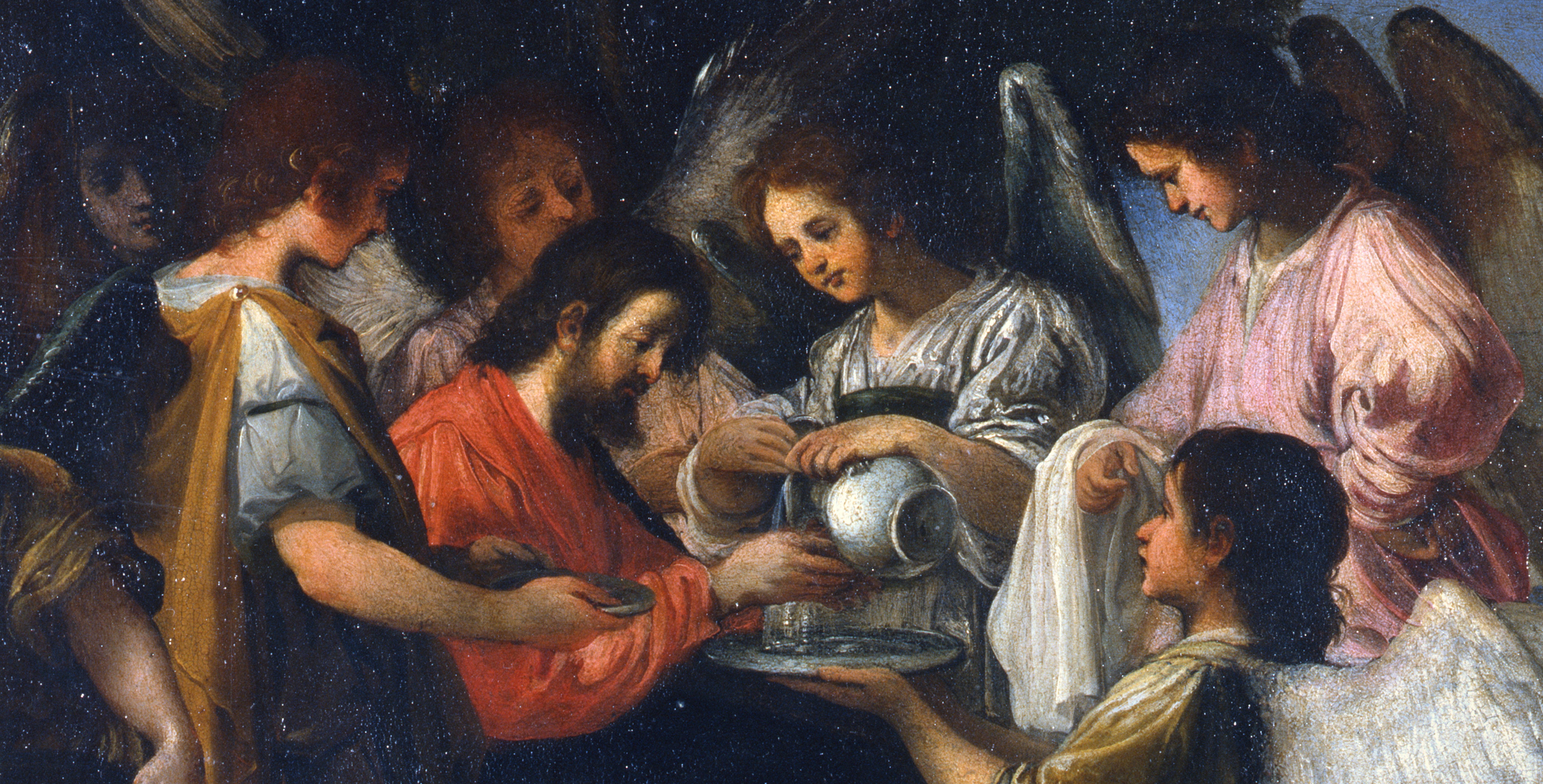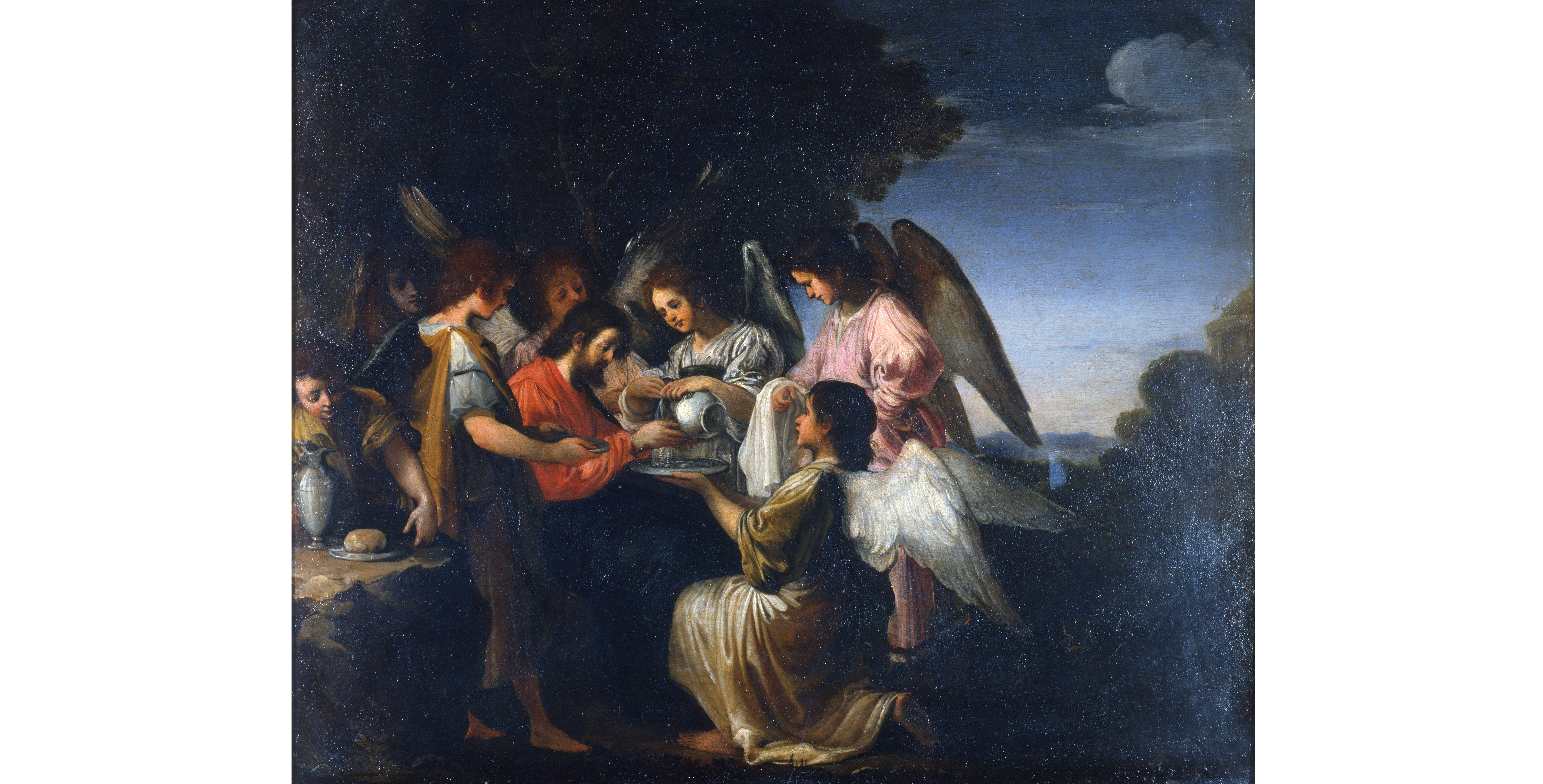 L'episodio è tratto dai Vangeli di Matteo (4,11) e Marco (1, 13): Gesù, uscito vittorioso dallo scontro con le tentazioni sataniche affrontato nel deserto, riceve il conforto affettuoso di una schiera di angeli.
