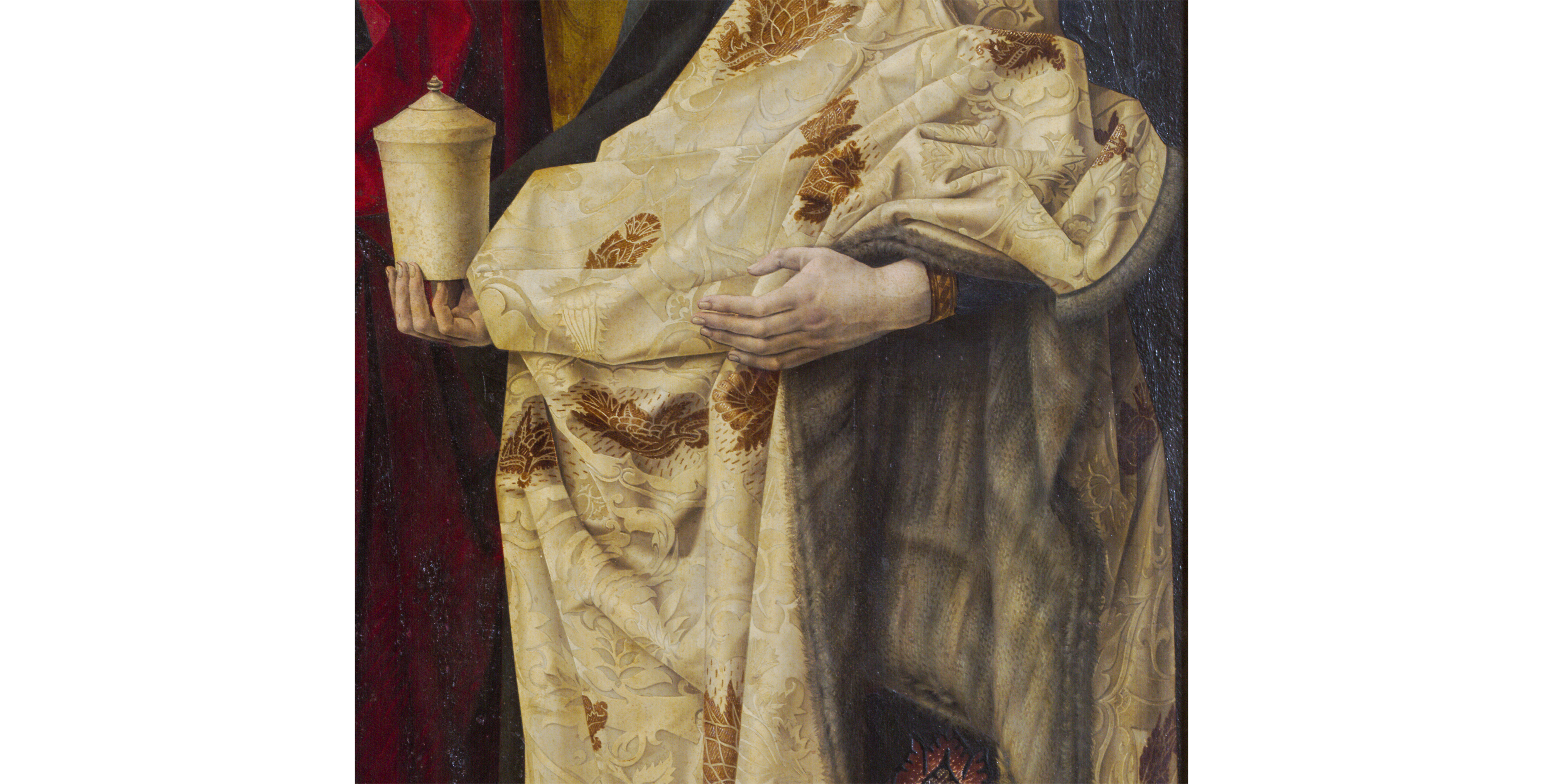 Nell’opera di questo importante pittore fiammingo la lucida e puntuale restituzione dei tessuti e delle fogge delle vesti offre una importante chiave di lettura che chiama in causa, in primo luogo, la committenza e il ruolo svolto da Tommaso Portinari nell’ambito della corte borgognona.